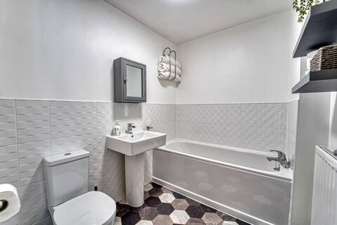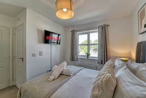 This beautiful property is situated in the residential area of Whittington, Worcester, offering a great location with easy access to the motorway, making it convenient for visiting nearby areas such as Malvern, The Cotswolds, and Birmingham. The property features a driveway that leads to the front door, where you’ll find a lockbox (code provided 24 hours before your stay). There’s space for two cars on the driveway, providing ample parking for your convenience. The fully equipped kitchen has everything needed for a self-catered stay, including a washing machine, dishwasher, and cooker. Tea, coffee, sugar, and milk are provided as complimentary essentials. Should you have any questions about what is provided, don’t hesitate to ask! The cosy living room is perfect for a relaxed evening with family or friends, offering space for games or watching TV after a day of exploring Worcester. The property boasts three bedrooms, all located on the first floor. The master bedroom includes an en-suite and a dressing table, making it easy to prepare for your day. The other two bedrooms feature double beds and ample space for hanging or folding clothes. In addition to the master bedroom en-suite, there is a main bathroom on the first floor and a convenient downstairs WC. Towels, toilet roll, and fresh linen are all provided to make your stay as comfortable as possible.