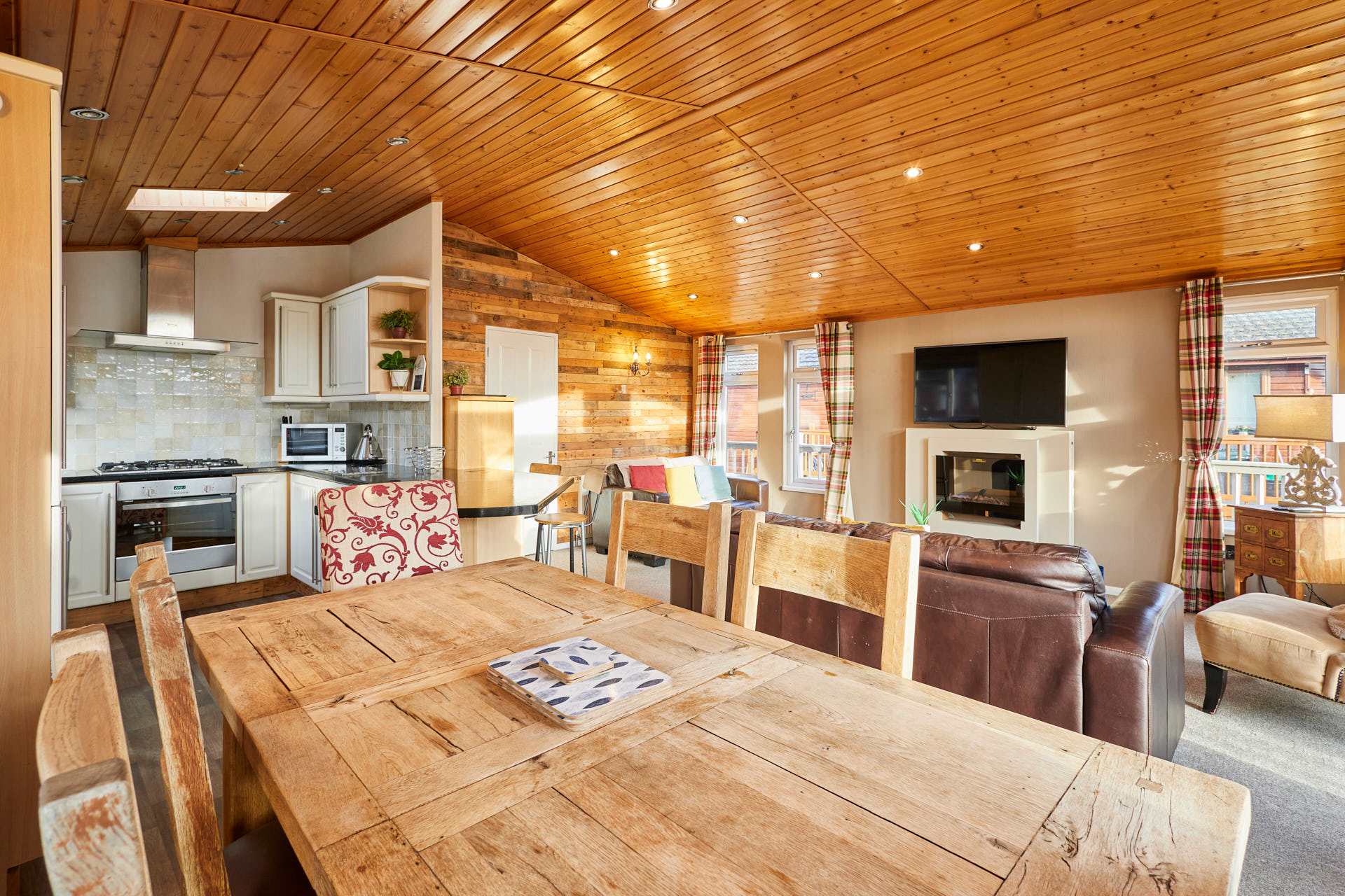 Crystal Lodge is a beautifully presented two-bedroom, two-bathroom lodge. Perfect for couples, families, or friends, this modern countryside retreat offers a comfortable and relaxing base for enjoying the stunning North Yorkshire countryside. Surrounded by scenic views of the lake and rolling fields, the lodge combines tranquillity with convenience, with the market town of Malton and local attractions only a short drive away. Step inside to a bright and airy open-plan living and dining space, designed to make you feel right at home. The living area features a cosy sofa, ideal for curling up with a book or watching your favourite shows, while the dining area provides a comfortable spot for meals together. Large windows fill the space with natural light and frame views of the surrounding countryside, creating a warm and inviting atmosphere. The fully equipped kitchen makes self-catering a breeze, with modern appliances, ample workspace, and all the essentials you need to prepare everything from a quick breakfast to a relaxed evening meal. Both bedrooms are stylishly furnished for comfort, with soft linens, cosy bedding, and thoughtful touches to ensure a restful night’s sleep. Two well-appointed bathrooms provide convenience and modern facilities, including showers, baths, and fresh towels. Outside, the lodge offers a private terrace or patio where guests can enjoy the serene setting with a morning coffee or evening drink, taking in the peaceful lake and countryside views. On-site parking ensures ease and convenience, while the quiet location provides the perfect escape from the busyness of everyday life. Lodge offers everything you need for a memorable stay. Combining modern comfort, scenic surroundings, and a calm, rural atmosphere, this lodge is the perfect setting to unwind, recharge, and enjoy the very best of North Yorkshire.