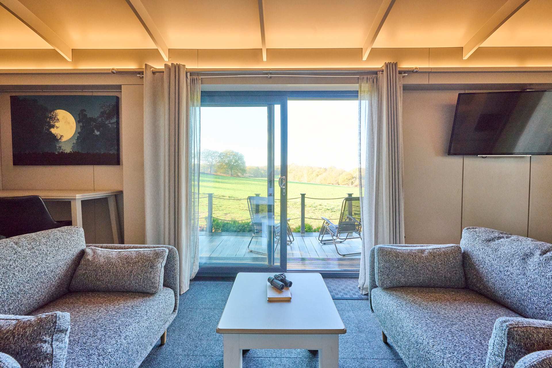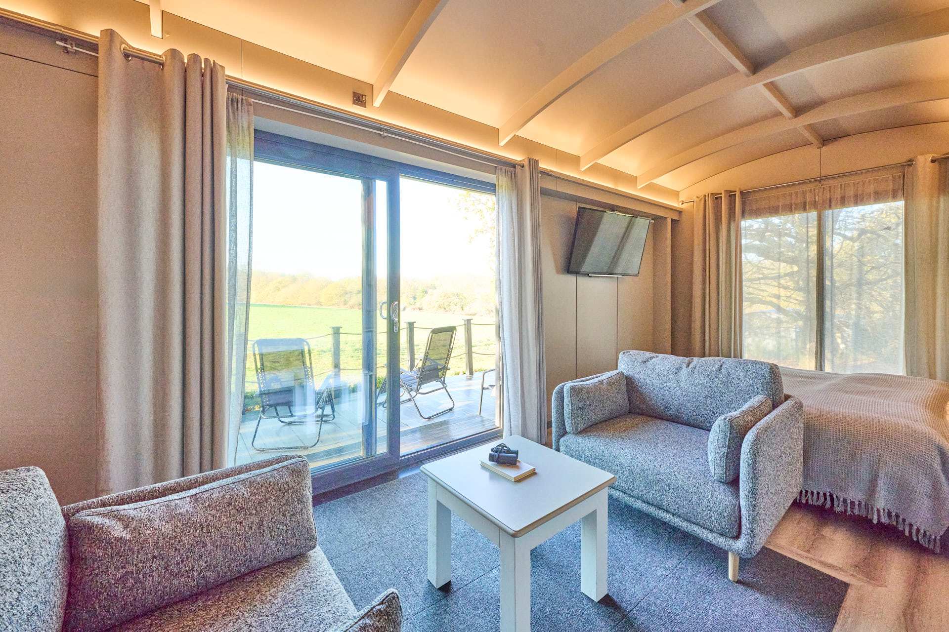 A peaceful countryside retreat with open field views, stunning sunsets, and a cosy modern interior. Enjoy a bright living space with underfloor heating, a well-equipped kitchen, a comfortable bedroom, and a modern bathroom. A private patio overlooks grasslands and woodland, offering a quiet place to unwind. Perfect for relaxing escapes and exploring the Norfolk countryside.