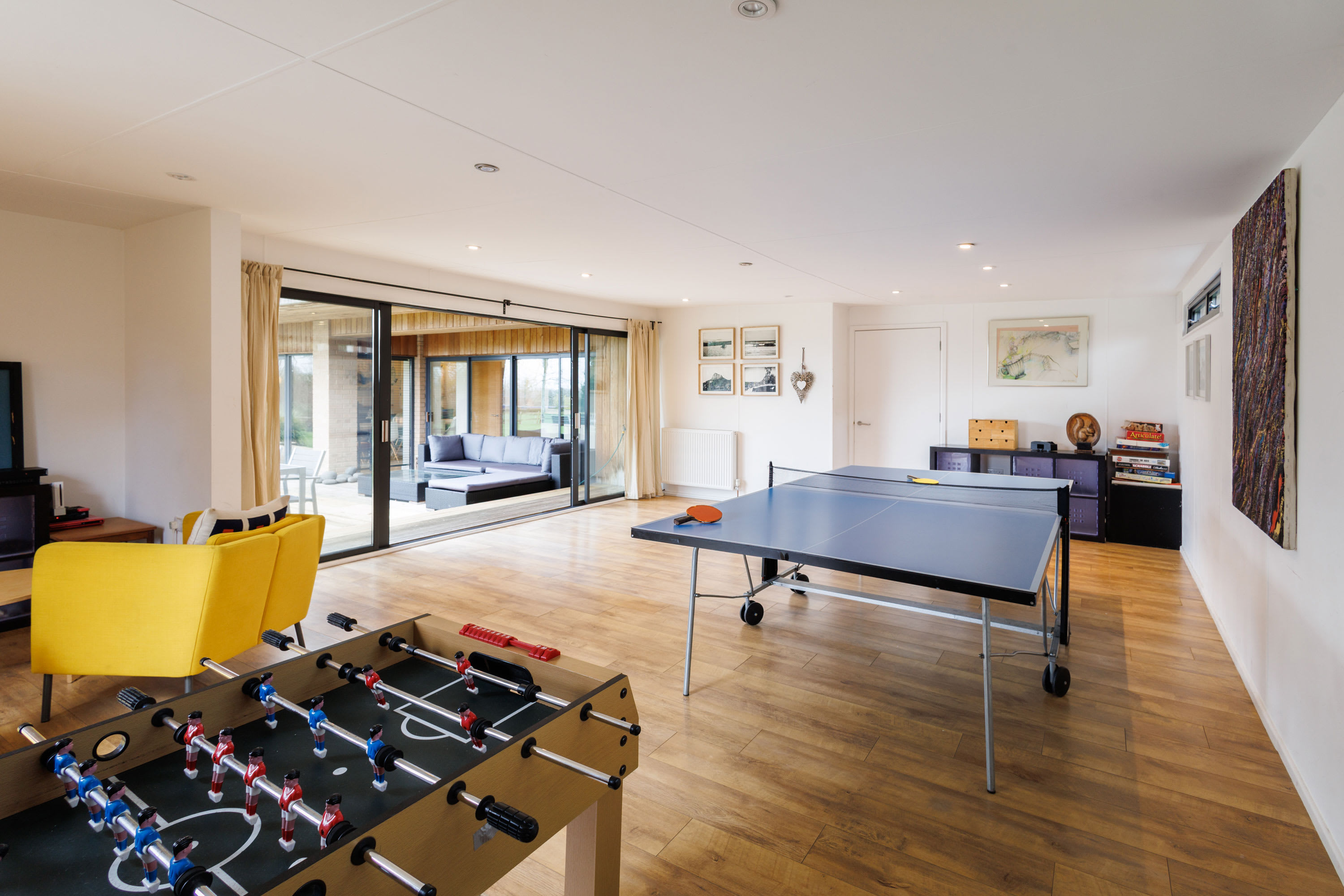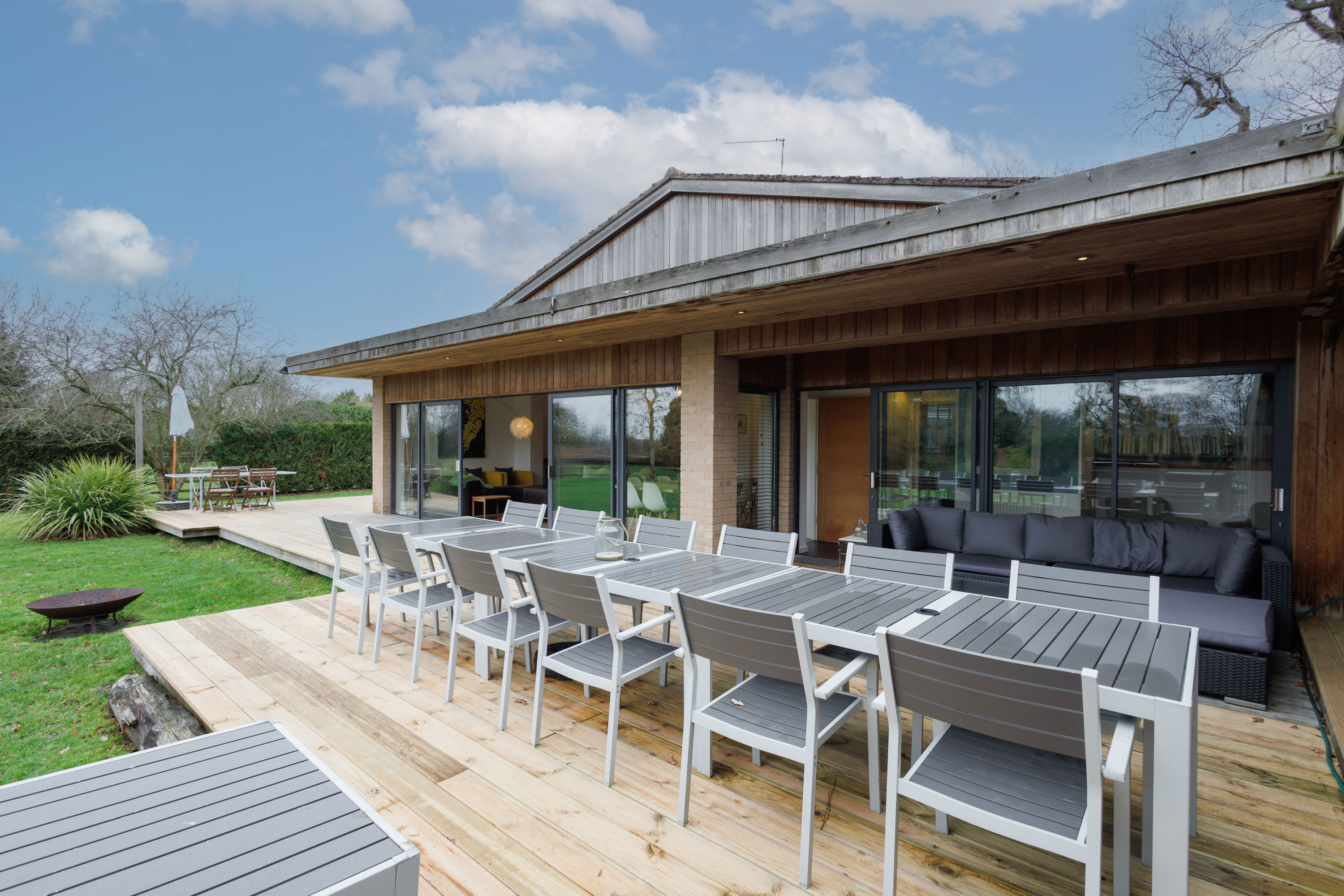 Living Spaces The house provides generous shared and private spaces for everyone to relax, work, or play, whatever their age or mobility. A wraparound deck offers alfresco dining and panoramic views over the surrounding fields. Inside, the combination of light-filled rooms, cosy corners, and a wood burner creates a welcoming atmosphere for all seasons. Kitchen & Dining The kitchen is professionally stocked with everything you need for cooking and entertaining, including full crockery, cutlery, glassware, and utensils. Cooking is a pleasure with a 5-ring induction hob, range cooker with two ovens, grill, and warming drawer, an American-style fridge freezer with ice maker and water filter, wine cooler, butcher’s block, hand blender, Kenwood mixer, kettle, Nespresso machine (bring your own pods), milk frother, cafetières, toaster, and microwave. Practical appliances include a dishwasher, washing machine with hanging airer, and ironing facilities. A starter pack of dishwasher tablets, washing-up liquid, kitchen paper, and tea towels are provided, and local supermarkets deliver groceries directly to the house. Bedrooms & Household Amenities Bedding, linen, and towels are supplied, with two rolls of toilet paper per bathroom. Families will appreciate two travel cots and two high chairs. Safety and comfort features include smoke detectors, a carbon monoxide detector, hairdryers in all bedrooms, grab bars, and a shower stool. The home is wheelchair accessible, and all rooms have individual radiator thermostats. Parking for up to five cars is available. Entertainment Guests of all ages will find plenty to do. Indoor entertainment includes a Freesat TV in the games room, a DVD player with a selection of films, a Wii console with games, ping pong and table football, board games, and a chess set. The garden room houses a library, while the TV room features a smart TV with HDMI connection for laptops. Outdoor Spaces The outdoor spaces are designed for fun and relaxation. The wraparound deck features dining for 12, undercover sofas, reclining deck chairs, and umbrellas, as well as a purpose-built charcoal BBQ. The spacious, enclosed garden is pet-friendly and includes a wheelchair-accessible ramp, a heated swimming pool (May–September, weather-dependent), a sauna, and a firepit for evening gatherings. Pool towels are not supplied. Location & Experience Birlingham is a quiet rural village, offering peace and tranquillity. Guests are asked to respect the home and neighbours, as Parsons Pleck is not a party house. Whether you’re looking for a serene retreat, a family holiday, or a team-building getaway, Parsons Pleck combines comfort, style, and versatility to create an unforgettable stay.