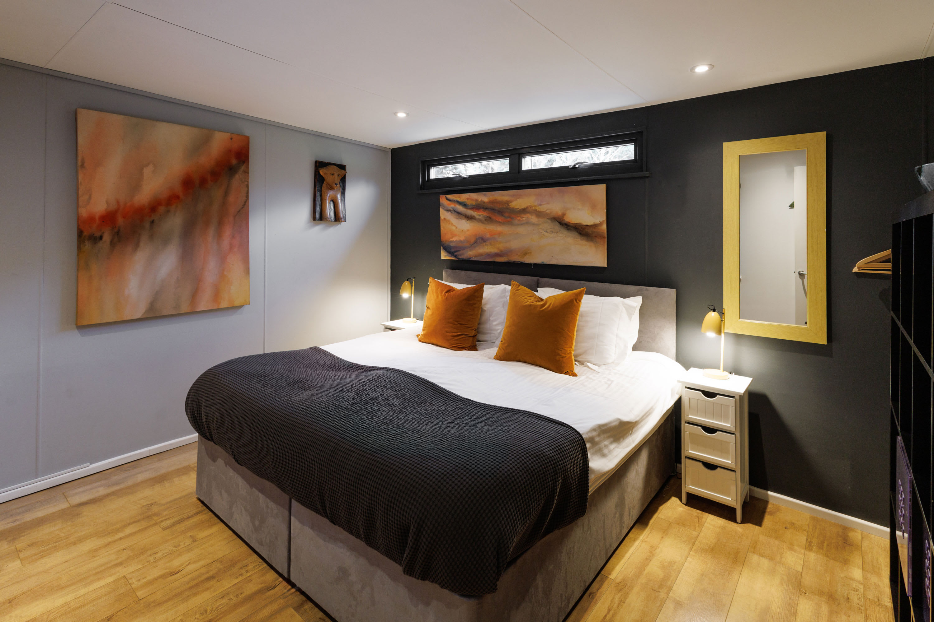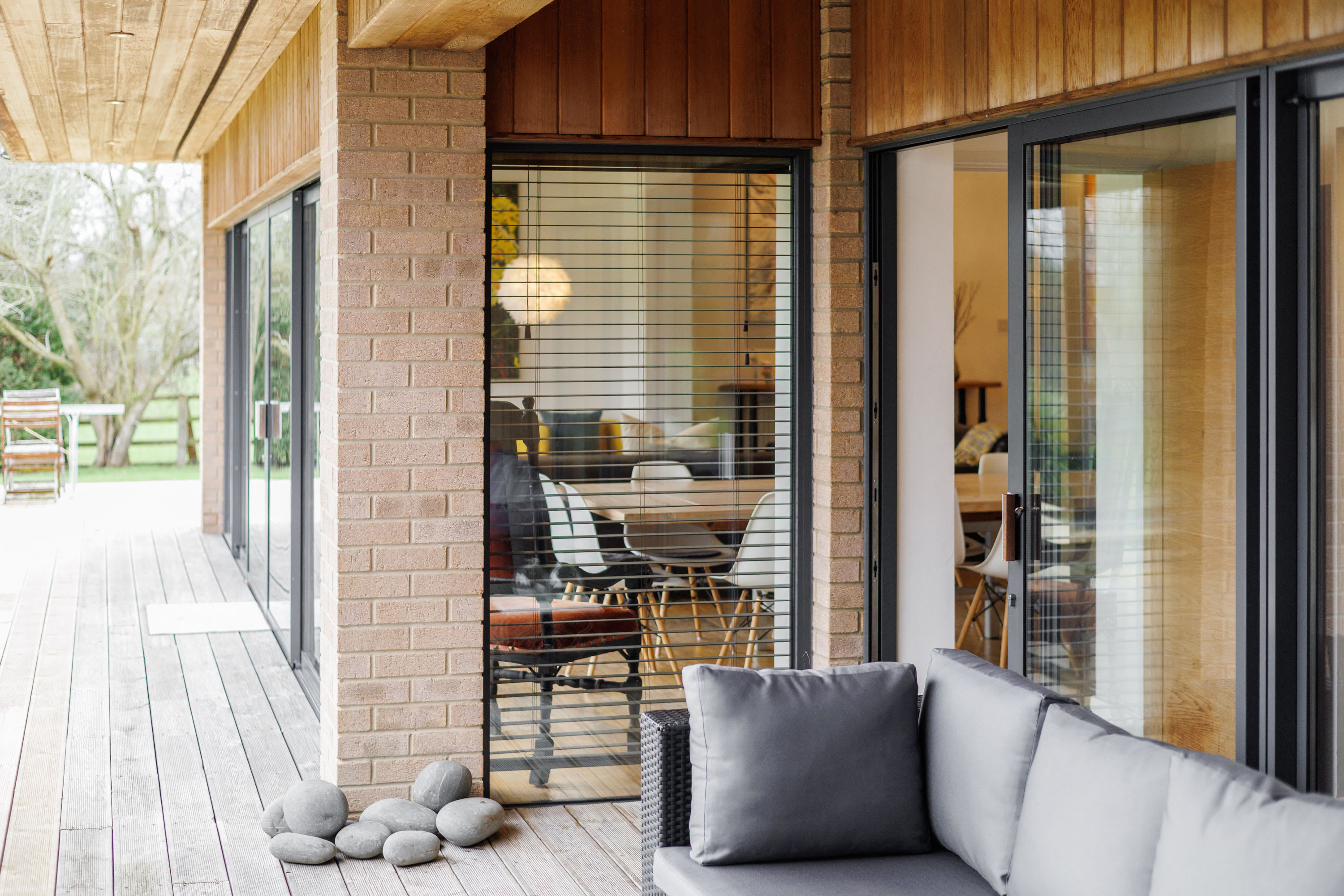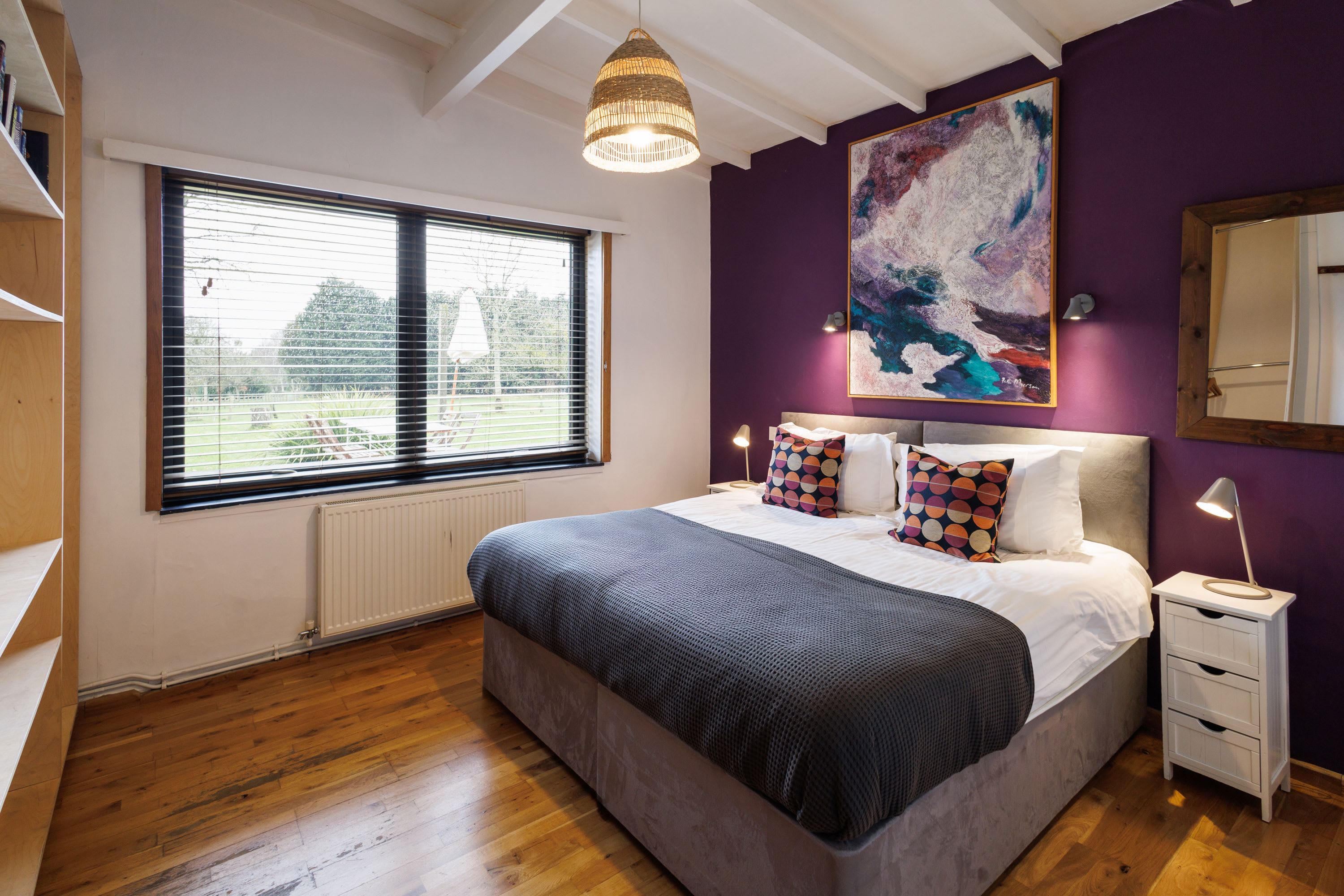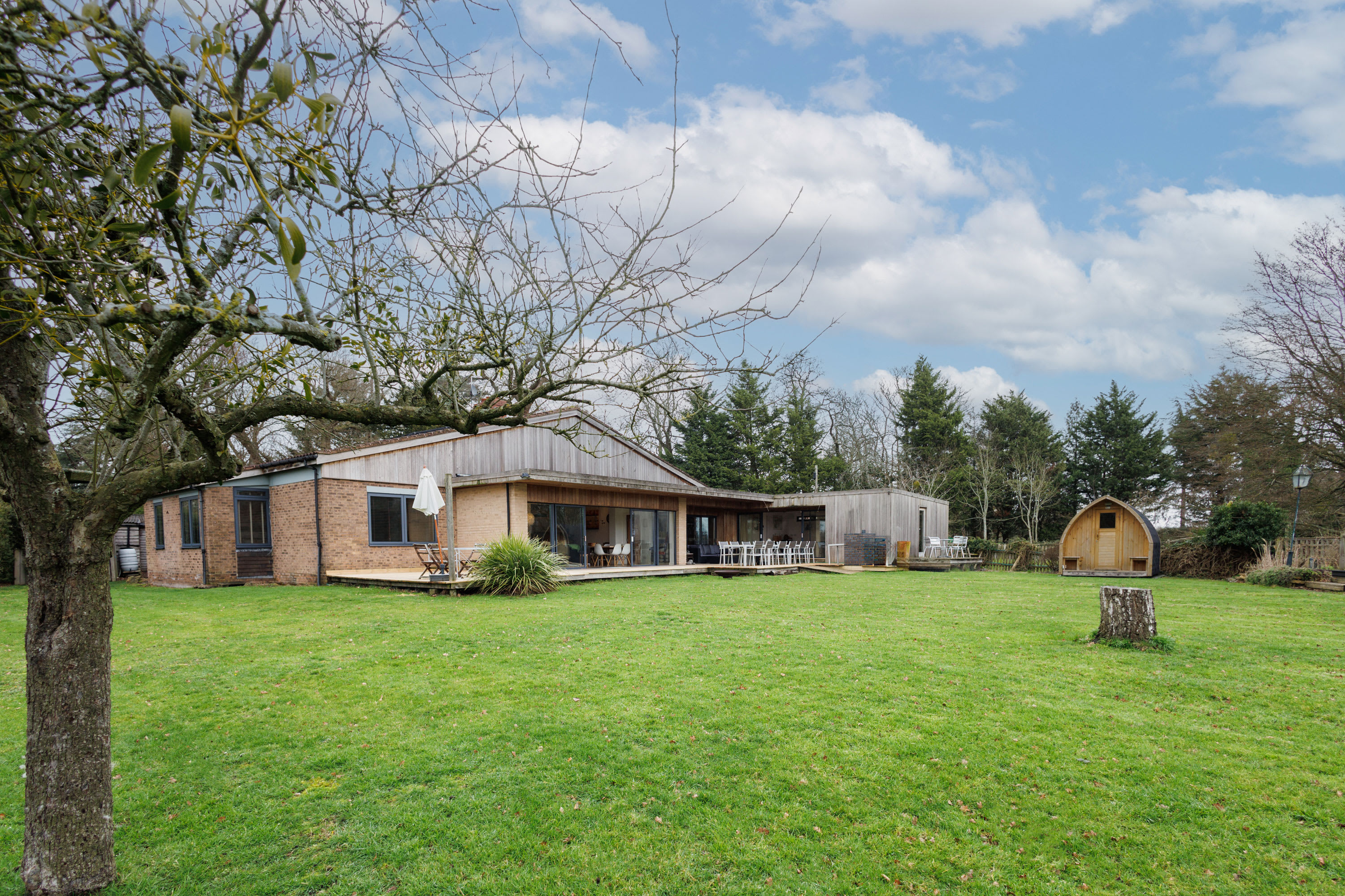 Parsons Pleck is a mid-century modern, single-storey home that sleeps up to 12 guests and is fully accessible. Thoughtfully designed and filled with original art, it’s ideal for family gatherings, wellness retreats, and team away days. The house offers generous shared and private spaces, a peaceful rural setting, and a wraparound deck perfect for alfresco dining while enjoying wide countryside views.