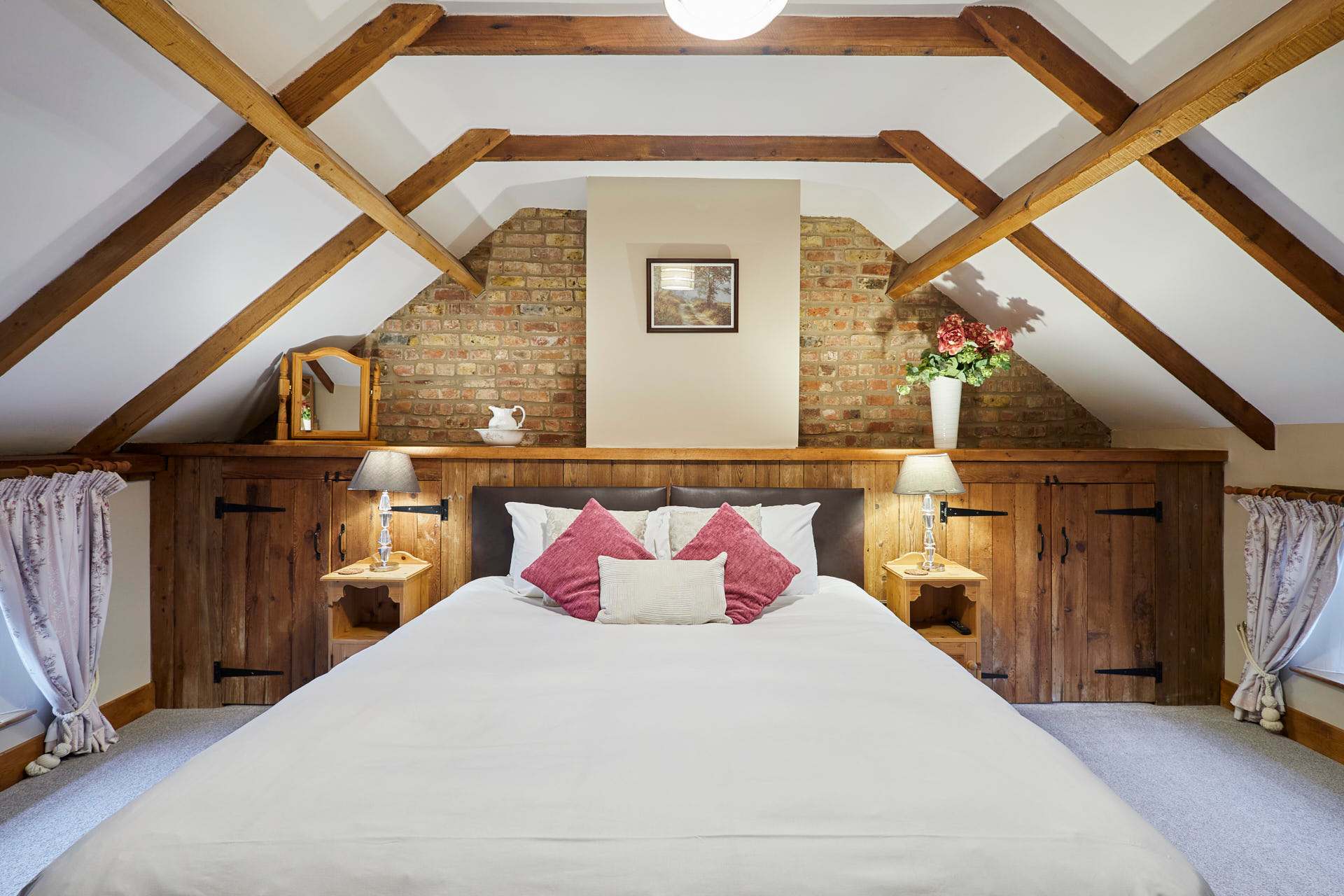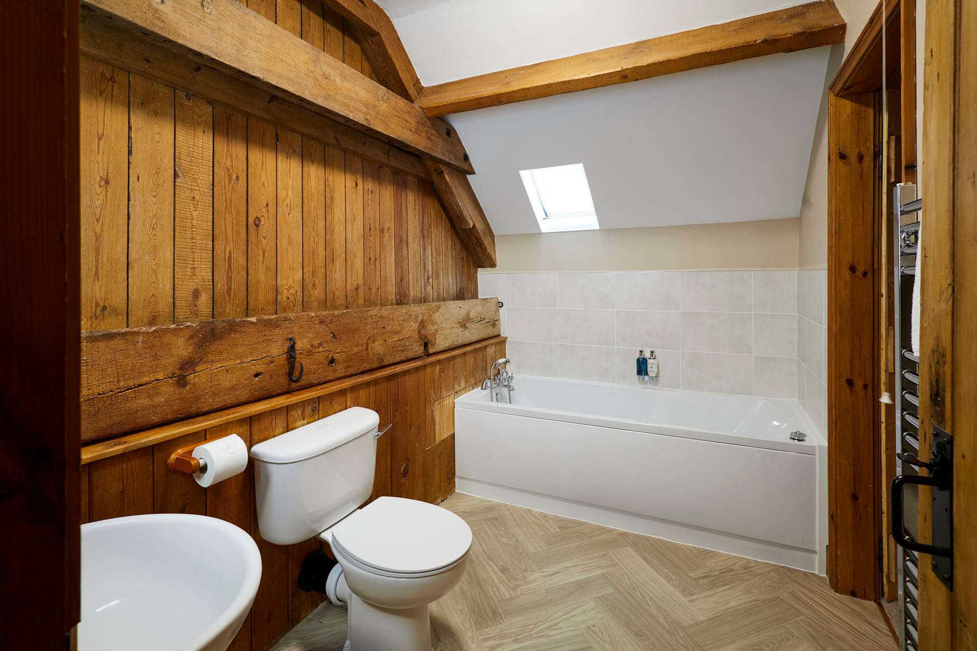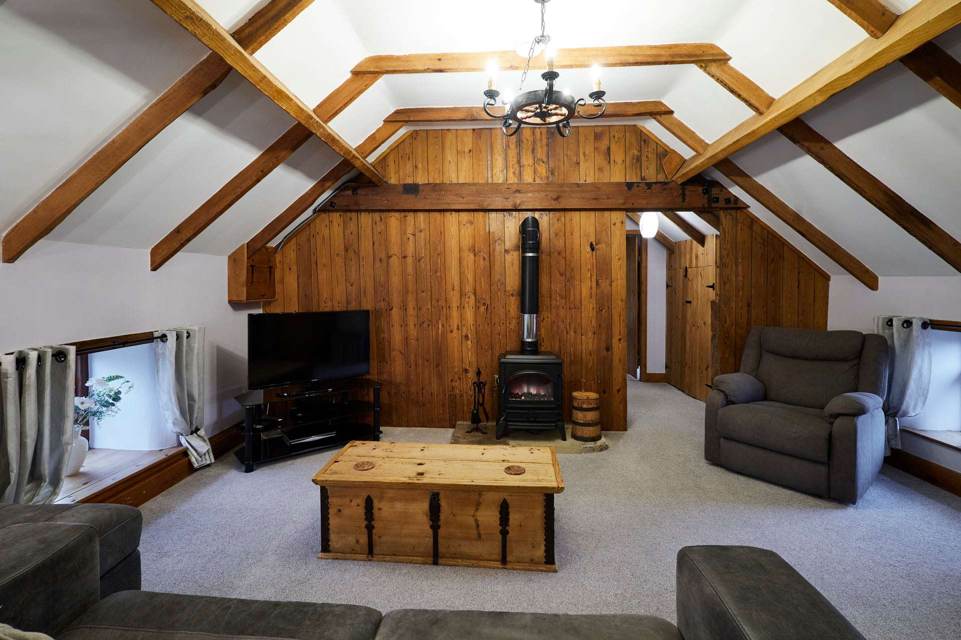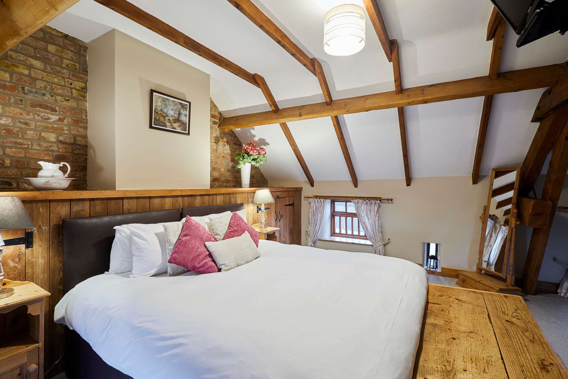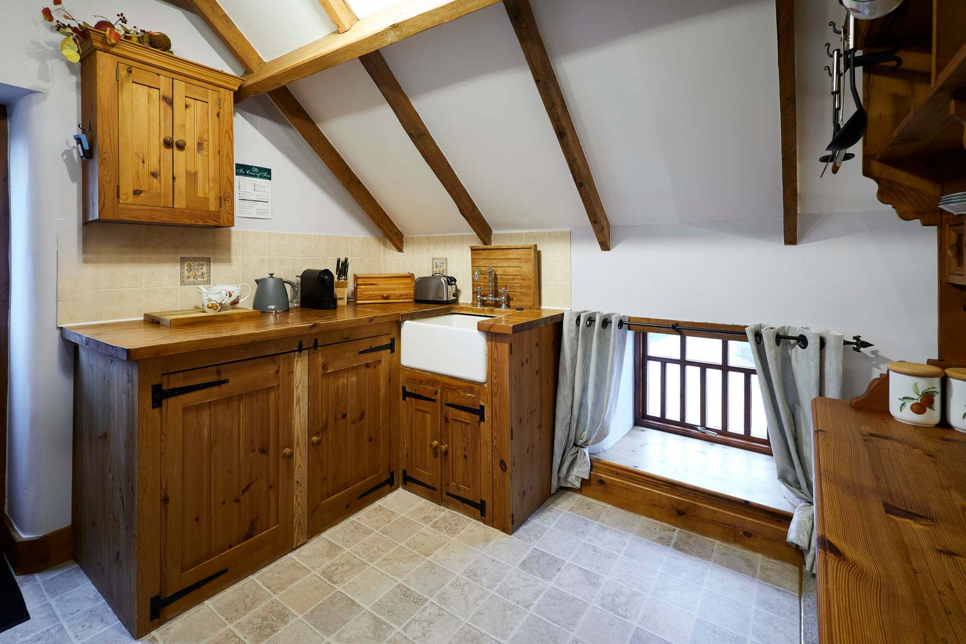 The Grainary is perfect for couples and is a charming first-floor apartment accessed via the original external granary steps. Inside, you’ll find a spacious open-plan living area featuring an electric wood-burning stove, dining space, and a beautifully hand-crafted farmhouse-style kitchen. The bedroom offers a super king-size bed and an en-suite bathroom, with a shower over a spa bath - complete with whirlpool jets. Characterful beamed, sloping ceilings run throughout the property. At the foot of the steps, guests can enjoy a paved, enclosed seating area just outside The Grainary.