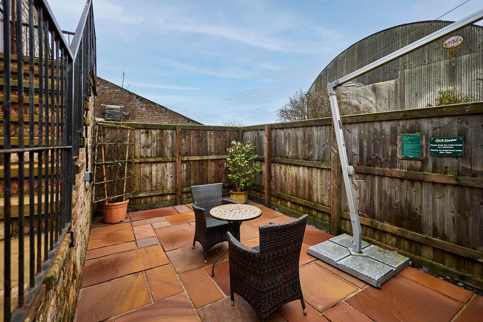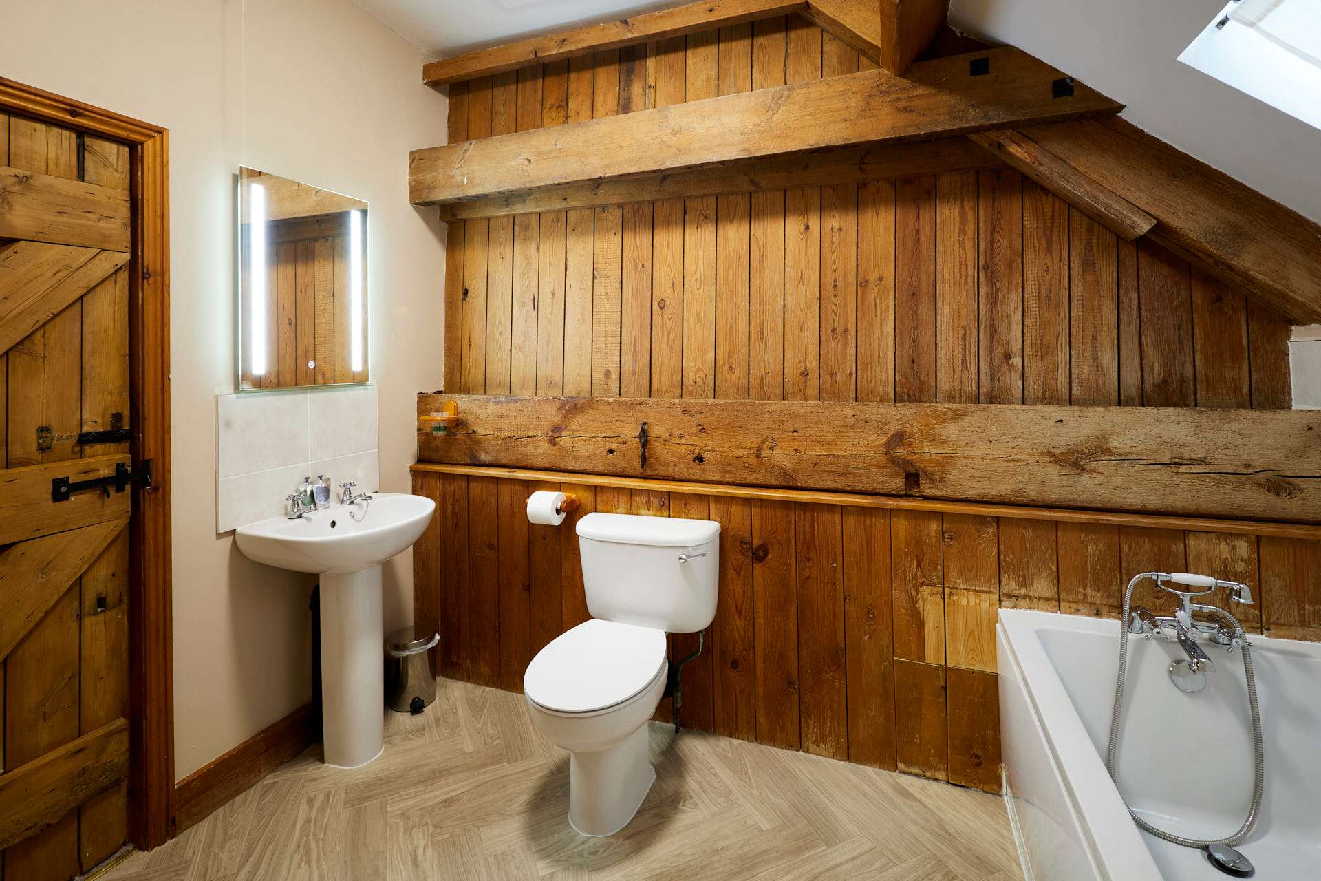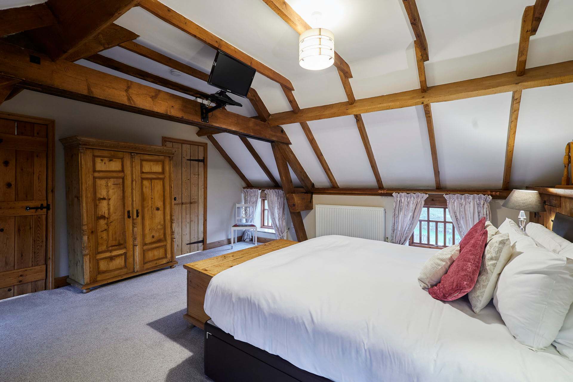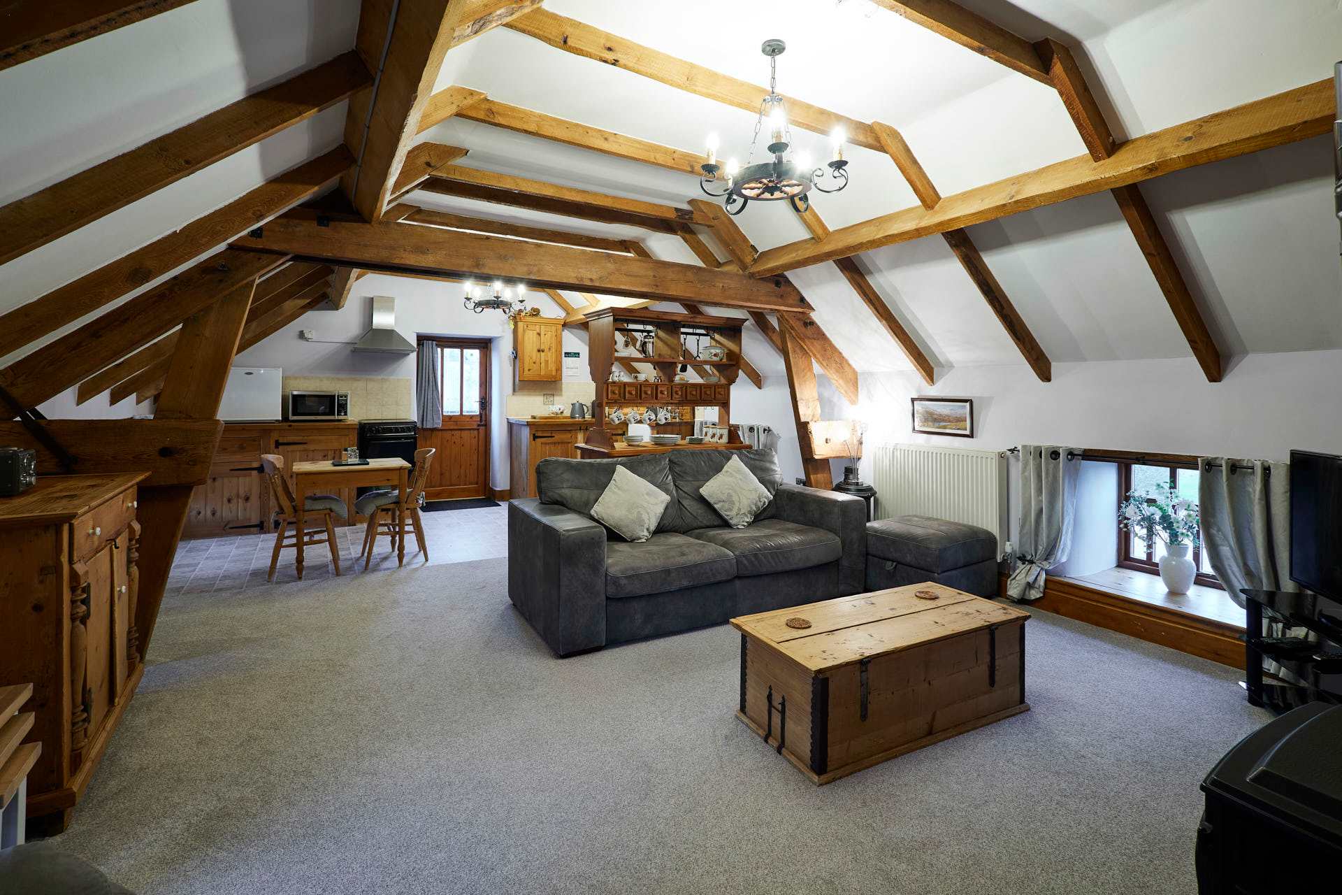 The Grainary is perfect for couples and is a charming first-floor apartment accessed via the original external granary steps. Inside, you’ll find a spacious open-plan living area featuring an electric wood-burning stove, dining space, and a beautifully hand-crafted farmhouse-style kitchen. The bedroom offers a super king-size bed and an en-suite bathroom, with a shower over a spa bath - complete with whirlpool jets. Characterful beamed, sloping ceilings run throughout the property. At the foot of the steps, guests can enjoy a paved, enclosed seating area just outside The Grainary.
