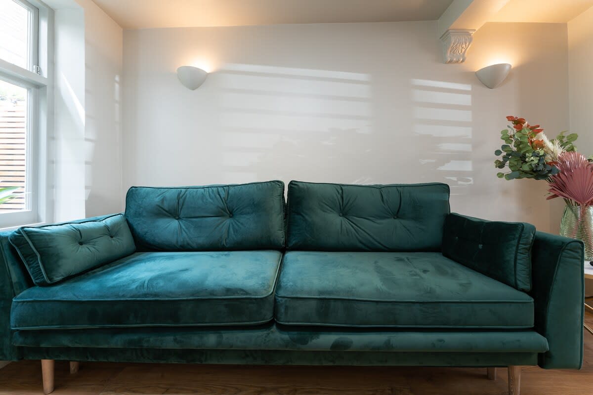 Fashionable house located only a stones throw away from the beach! Stunning features, this modern 3 bedroom home has a private terrace. Recently remodelled to create a stylish yet cosy environment, with a luxurious velvet sofa and snug love seat. The three bedrooms have a super king bed (which can be split into two single beds), a king bed, and two single beds which are custom-made cabin beds. The modern and stylish dining room is next to the fully equipped modern kitchen. Fantastic location!