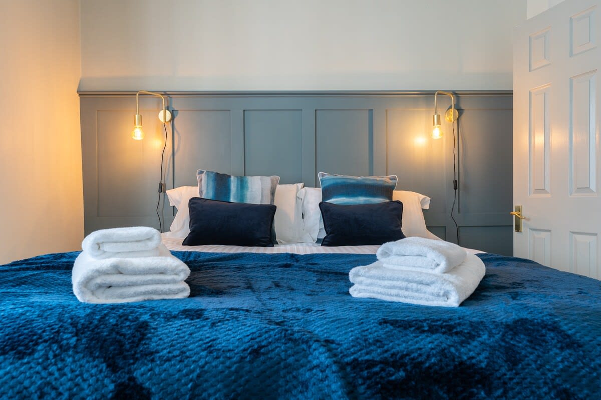 This magnificent three-bedroom house has a contemporary design throughout, a private terrace and is just a few steps from the beach! There are a number of local restaurants and cafes within walking distance. An easy one-minute stroll takes you to the beach from this stunning property. The Kemptown area of Brighton is just a few minutes' stroll away, and the city centre is just a few minutes' walk away for more shopping and cultural attractions. The city's best attractions are all within walking distance of this beautiful home. The house has just undergone a complete makeover, from top to bottom, including new flooring, paint, and furniture. The attention to detail throughout the house is fantastic and creates a luxurious feel, from the navy blue kitchen with gold handles and contemporary tiles to the marble effect floor in the dining room. Featuring a full range of cookware, dishes, cutlery and glassware, the kitchen has everything you'll need to whip up a tasty meal for friends or family. Additionally, there is a microwave, dishwasher, and washer/dryer in the home. Eight people can be seated at the dining table and chairs in the contemporary dining room. This open-concept living room has a large velvet sofa (which can be converted into a sofa bed) and a lovely velvet love seat. Alternatively, you can enjoy a cup of coffee on the private terrace while watching the Smart TV. An ultra-modern bathroom with a walk-in shower, twin sinks, and a WC can be found on the second floor. Another toilet is located right next to this one. In the master bedroom you will find a King-sized bed, dressing table; and wardrobe. Relax and enjoy a good night's sleep in this room thanks to the reading lights, wall panelling, and shutters on the window. Using clever cabin beds, the second bedroom can accommodate two single beds. If you're looking for somewhere to stay that's both cosy and unique, then this is the room for you. Finally, there's a room with a king-sized bed that can be divided into two twins (please request this in advance of your stay). In terms of storage, there's plenty of room thanks to the prominent clothes rail and the shelf above it. The polished cement steps and the combination of wooden and tiled floors give it a contemporary look. All of Brighton's best attractions are within easy walking distance from the Brighton Dome and i360 aparthotel. This is a fantastic location for both business travellers and tourists alike.