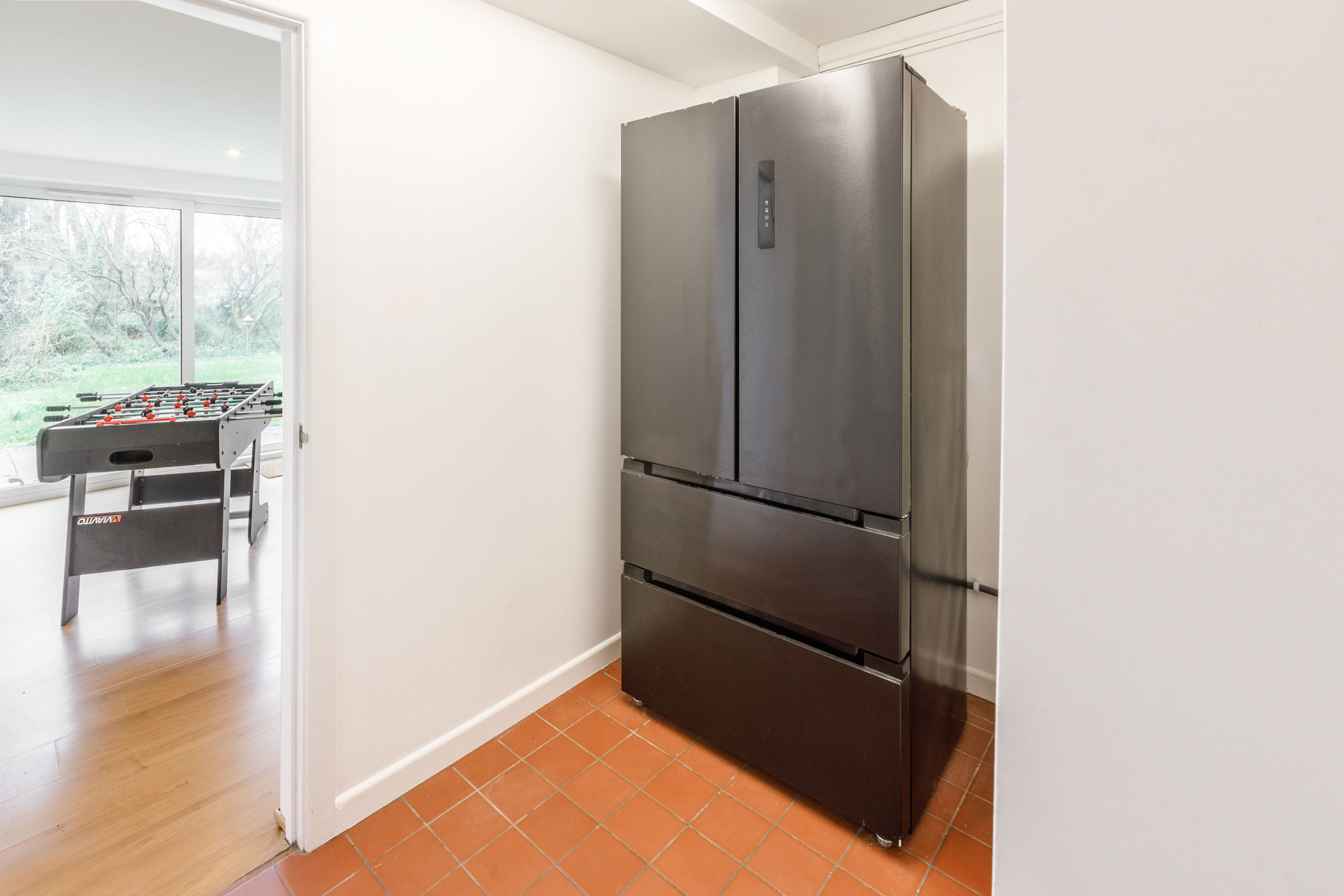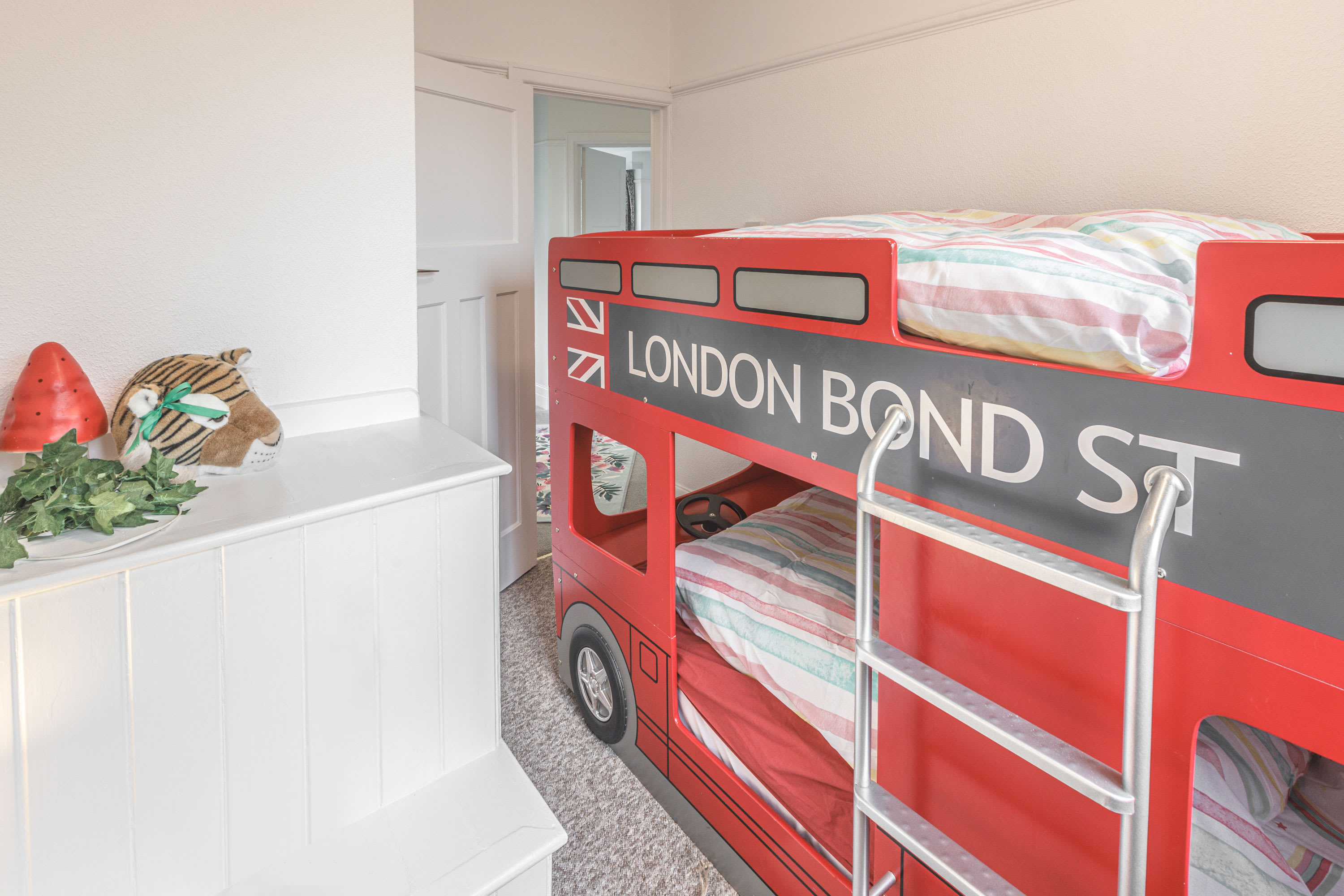 Bright, open, and wonderfully spacious, Combpyne is a charming retreat that truly feels like a home away from home. Nestled in a lovely neighbourhood, it offers the perfect setting for guests to relax, reset, and reconnect in comfort and style. This spacious five-bedroom home comfortably sleeps up to ten guests and offers a perfect blend of contemporary living and home-from-home comfort, ideal for families or friends seeking a relaxing break in Hampshire. All bedrooms provide plenty of space, comfortable beds and a lovely place to relax. One of the bedrooms has been thoughtfully designed with children in mind, featuring eye-catching bunk beds styled as a classic red London bus—sure to delight little ones and spark their imagination. The home also features two beautifully designed bathrooms, each thoughtfully finished to create a bright, airy, and refreshing space. The generously sized living room is furnished with comfortable sofas, perfect as a family room for guests to relax and create memories together. The cosy fireplace creates a warm and welcoming focal point, enhancing the room’s peaceful ambiance. Large windows and light-toned walls flood the space with natural light, beautifully complementing its open, airy feel. The well-appointed kitchen and accompanying pantry space are perfect for preparing delicious home-cooked meals throughout your stay. Guests can gather together in the adjoining warm-toned dining room, thoughtfully designed to seat all guests comfortably and make every meal a shared occasion. Beside the kitchen, you’ll find a dedicated entertainment room complete with table football and a dartboard—perfect for keeping guests of all ages entertained and creating fun, lasting memories together. This room overlooks the spacious back garden, offering the perfect setting for enjoying warm, sunny days. Younger guests will love the open space to run around, play outdoor games, and make the most of the fresh air.