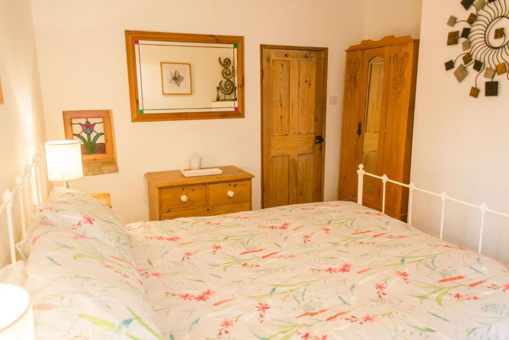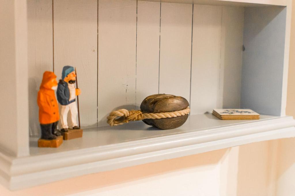 Step through the colourful front door of Shoemakers Cottage into a cosy living and dining area with a comfortable sofa, electric wood burner, and HDTV with Freeview. A small dining table for two sits by the large street-facing window, perfect for breakfast or light lunches. The kitchen has everything you could need to prepare home cooked meals during your stay. Upstairs, the bright bedroom features a king-sized bed, wardrobe, and chest of drawers. The cottage is charmingly decorated with seaside-themed ornaments, reflecting its coastal location. The bathroom, also upstairs, includes a toilet and shower cubicle.
