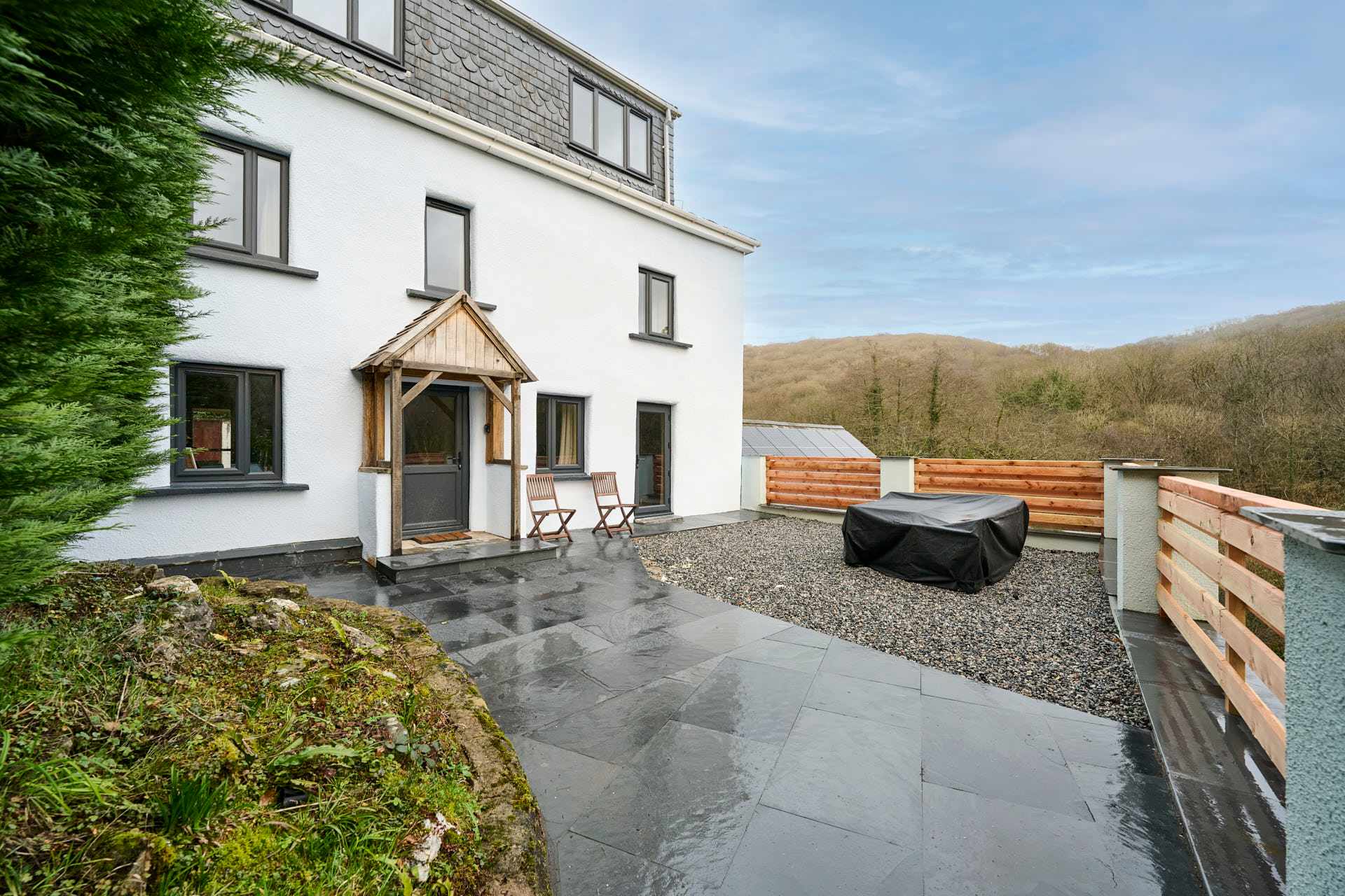 Nestled in a beautiful woodland location in Milltown, this four-bedroom home offers peace and tranquillity in an idyllic rural setting. Surrounded by nature and enjoying stunning open outlook views, the property provides a true escape from the everyday. Full of unique handcrafted character, the home blends warmth and charm throughout. The living room is a welcoming space, centred around a striking stone-set fireplace that creates a cosy ambience — perfect for relaxing evenings in. Large windows invite in natural light and frame uninterrupted views of the surrounding woodland. The property features four spacious bedrooms, each thoughtfully designed to create a calm and restful atmosphere. The quirky, character-filled kitchen with adjoining dining area offers a charming space to cook and gather, combining rustic appeal with practical comfort. Modern bathrooms provide stylish spaces to unwind and refresh, finished to a high standard for a touch of everyday luxury. Outside, a stunning outdoor area makes the most of the unfiltered woodland views, allowing guests to fully immerse themselves in the peaceful surroundings. Whether enjoying morning coffee or evening sunsets, this tranquil retreat in Milltown offers a truly memorable countryside escape.