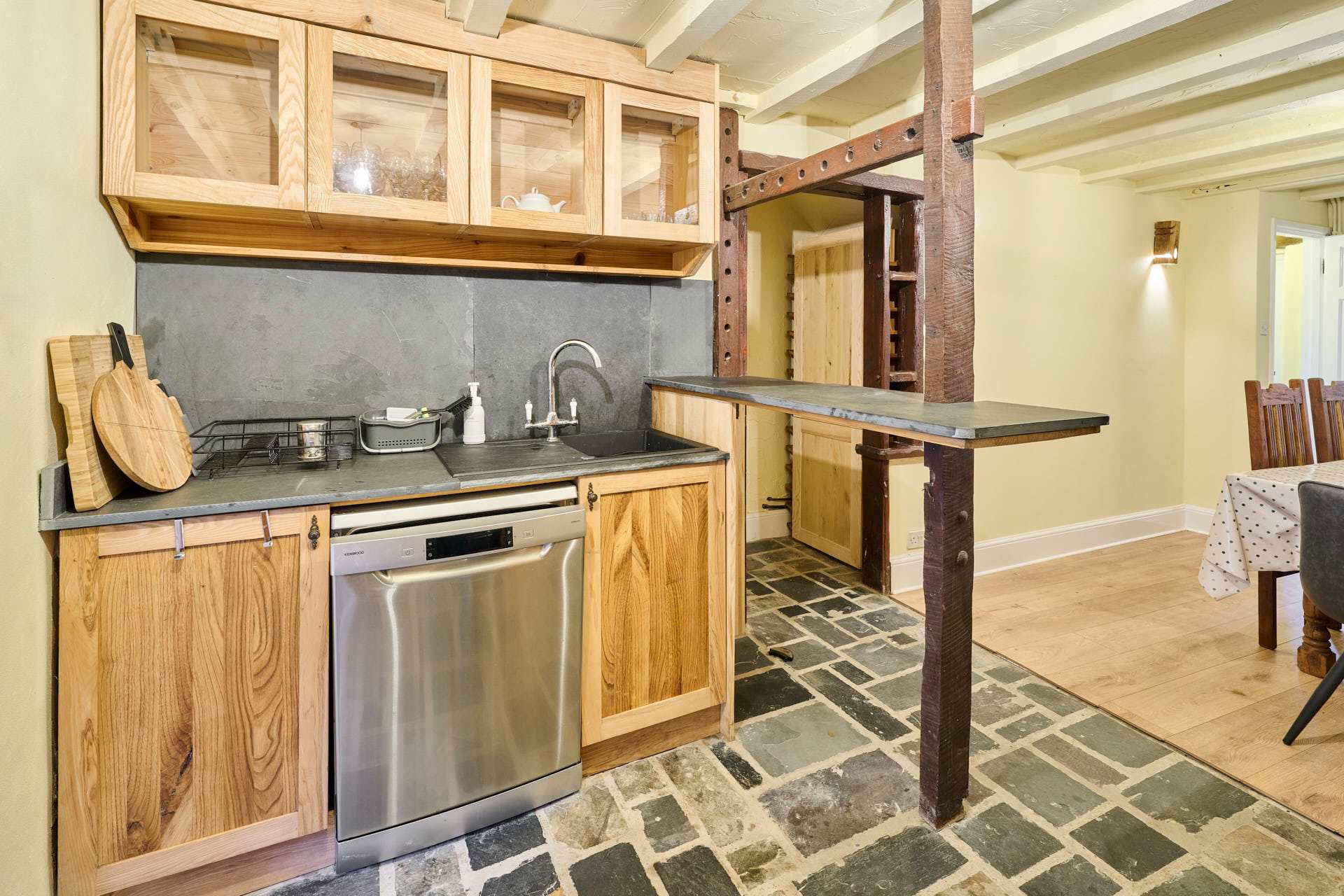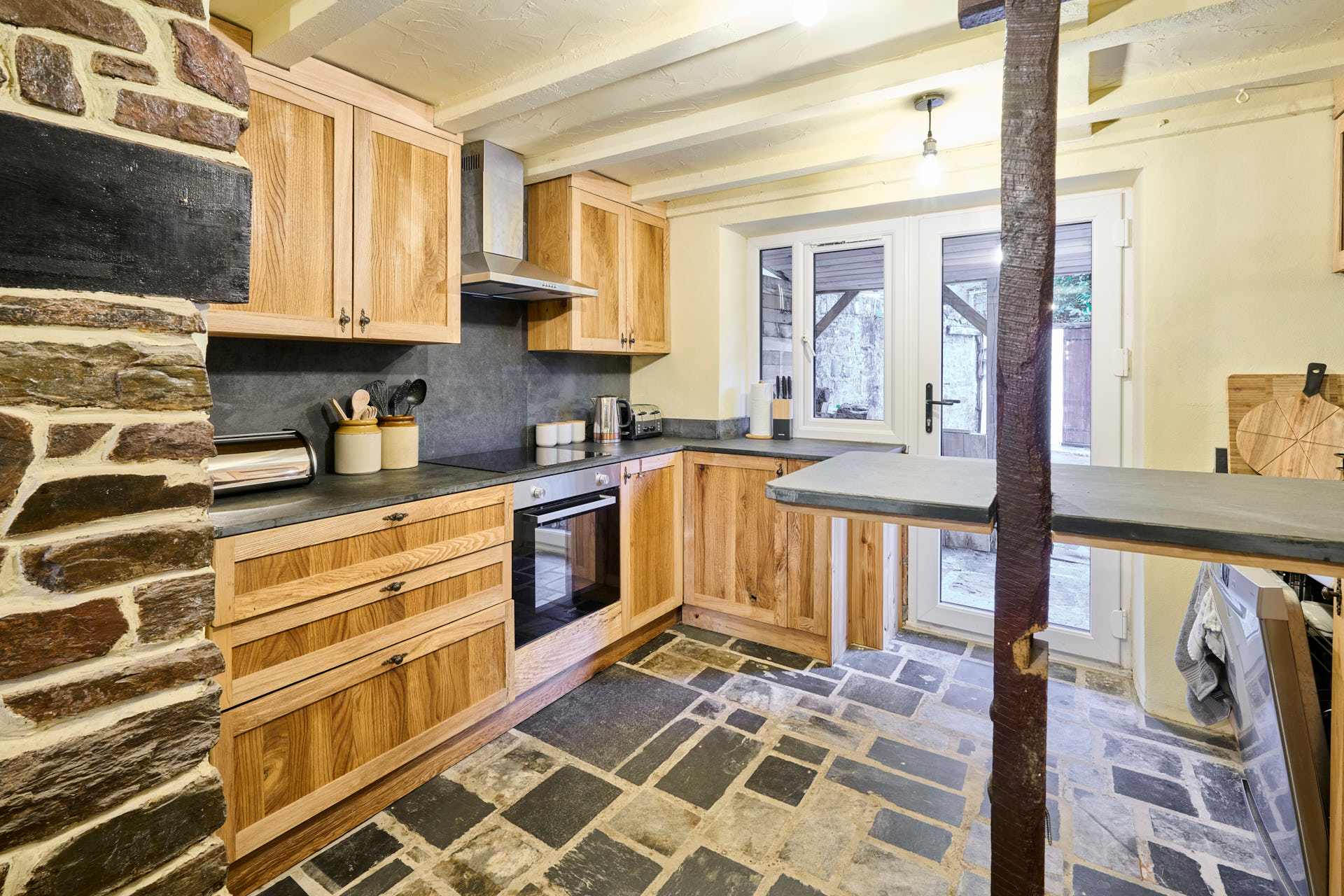 This beautiful holiday let is set in a tranquil woodland location, designed to make the most of its stunning natural surroundings. At the heart of the home, the living room features a striking stone-set fireplace, adding rustic charm and character that perfectly complements the woodland setting. Ample comfortable seating makes it an inviting space to relax and unwind. The kitchen is filled with wooden units and unique flooring, offering plenty of space for cooking and preparation. Its open-plan layout flows seamlessly into the dining area, which provides generous seating for meals and entertaining, making it the perfect space for social gatherings. The property boasts four spacious bedrooms with calming décor and open views of the surrounding woodland. Three bedrooms feature king-sized beds, while the fourth offers a single bed, each designed to provide a restful and serene retreat. Modern bathrooms are thoughtfully designed, providing a space to relax and refresh. Outside, a stunning patio area with comfortable seating overlooks breathtaking views of the countryside and woodland, offering a perfect spot to enjoy the peace and beauty of the natural surroundings. This property is a perfect blend of rustic charm, modern comfort, and tranquil woodland retreat.