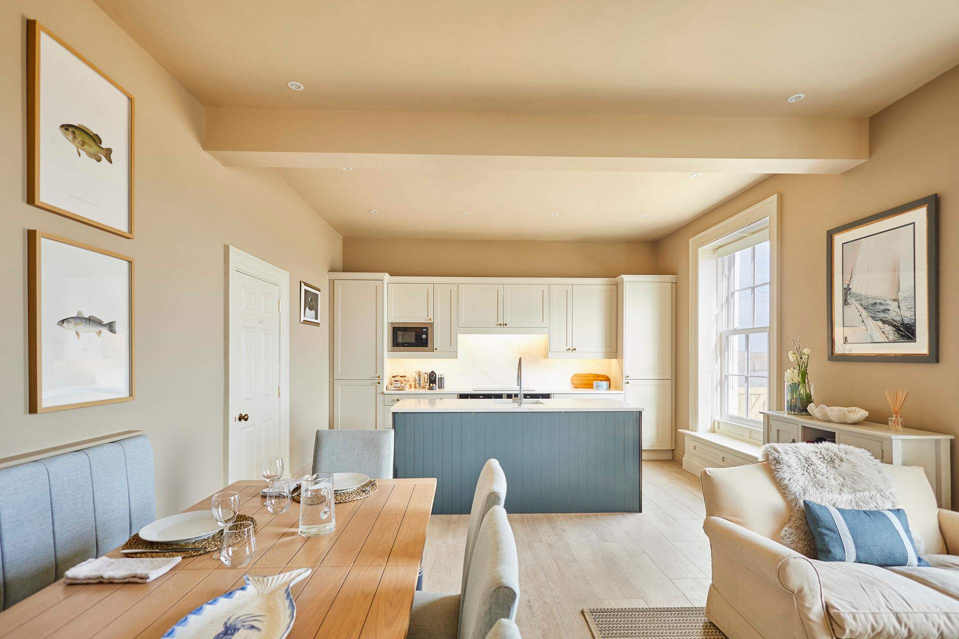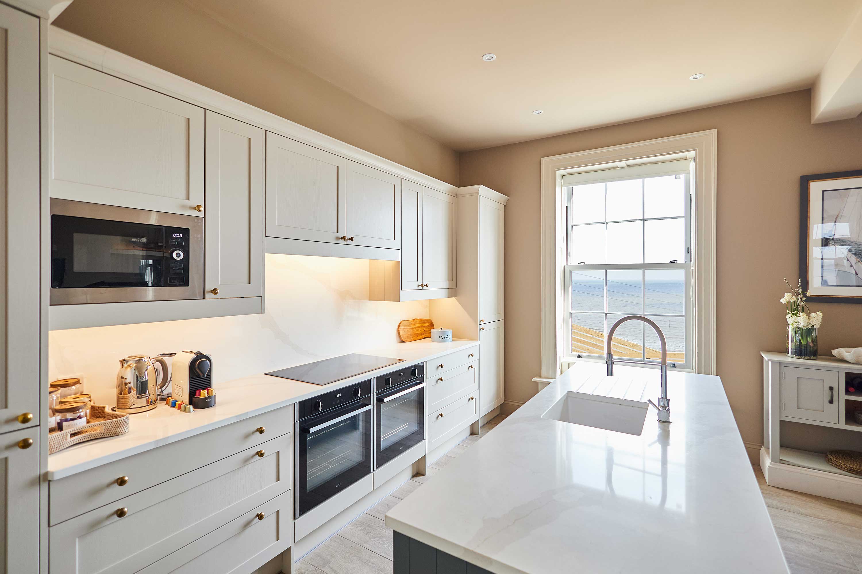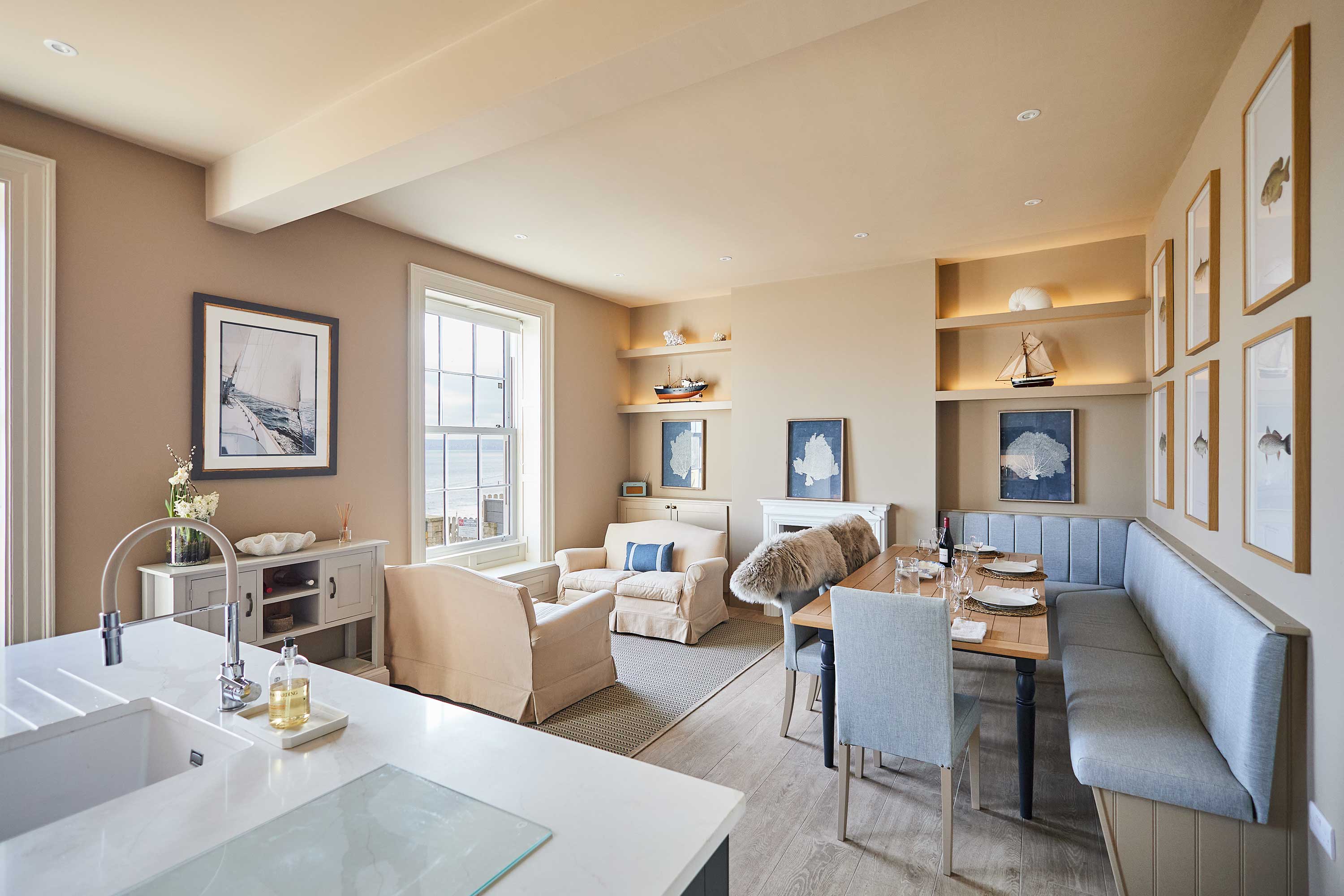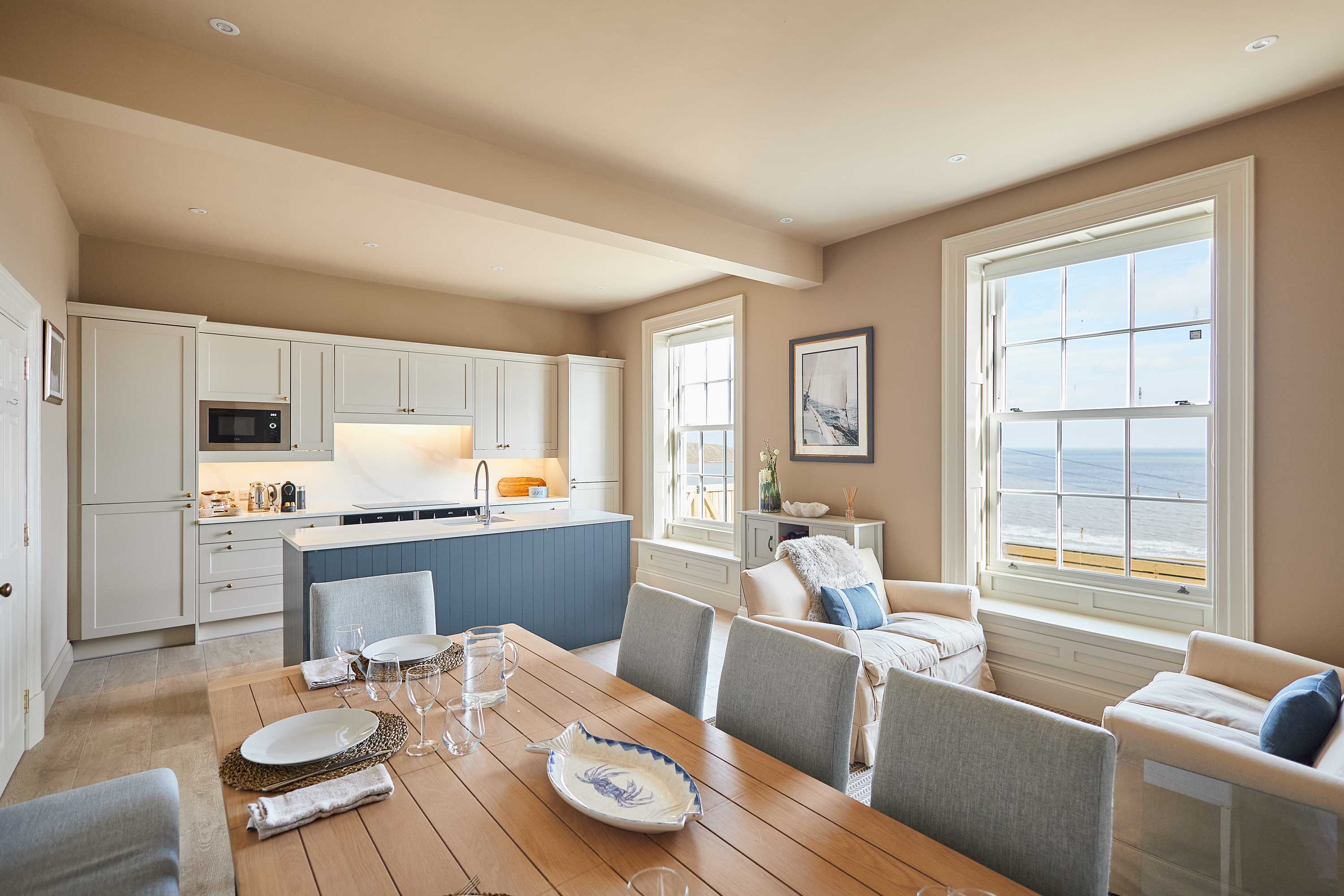 Welcome to your ultimate Filey coastal hideaway, a beautifully designed retreat offering breath-taking sea views, luxurious interiors, and generous space for up to 10 guests. Just a short stroll from the shoreline in the old town of Filey, this beautiful Georgian home combines comfort, style, and practicality—making it the perfect home-away-from-home for families and large groups looking to enjoy the North Yorkshire coast. Inside the house has been thoughtfully designed to create a warm and welcoming atmosphere throughout, with breath taking views of the sea from every room. The spacious open-plan living and dining area is the heart of the home, featuring plush seating, large windows that frame the stunning sea views, and a generous dining space where guests can come together to share meals, swap stories, and plan the day’s adventures. The modern, fully equipped kitchen provides everything you need - from morning coffees overlooking the bay, to memorable family dinners after a day at the beach. This property features five beautifully furnished bedrooms, each designed with comfort and tranquillity in mind - ideal for unwinding after a day exploring the coast.. Soft linens, calming colour palettes, and thoughtful touches ensure every guest enjoys a relaxing night’s sleep. With four stylish bathrooms, mornings are smooth and stress-free, even for larger groups. A bonus feature of this home is the ground-floor shower room, ideal for rinsing off sandy children, muddy boots, wetsuits, or even a happy beach-loving dog. An elevated deck overlooking the sea provides a spectacular outdoor space, complete with a large table and seating for ten which makes it perfect for all guests to gather and soak up the sunshine whilst creating lasting memories on the coast. Comfortable and spacious, Sea View provides stunning views at every turn, golden sands, clifftop walks, and charming town centre. This coastal sanctuary offers everything you need for a memorable seaside escape. Whether you're celebrating a special occasion, enjoying a family holiday, or simply looking to unwind by the sea, this beautifully appointed property provides the perfect setting to rest, reconnect, and experience coastal living at its finest.