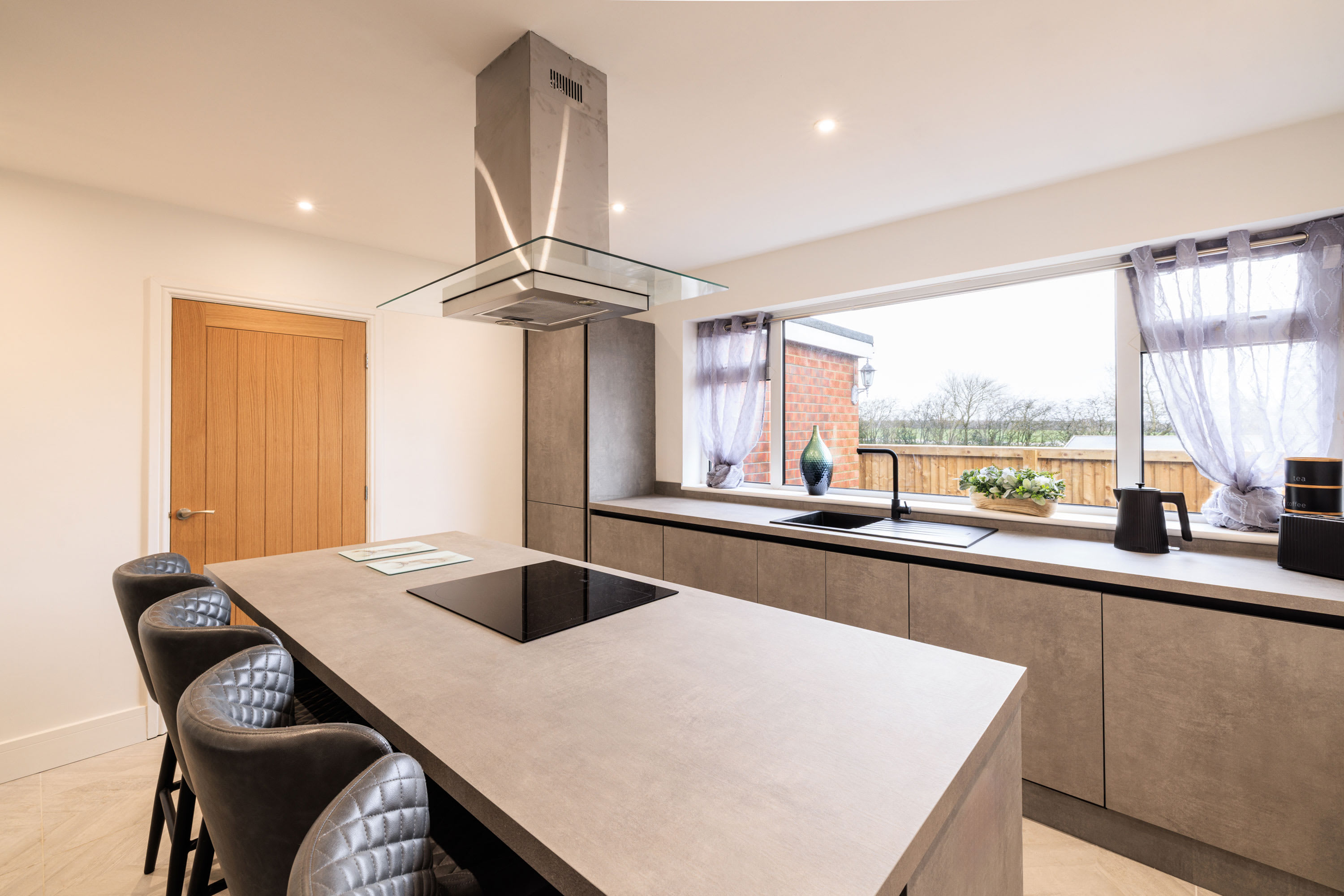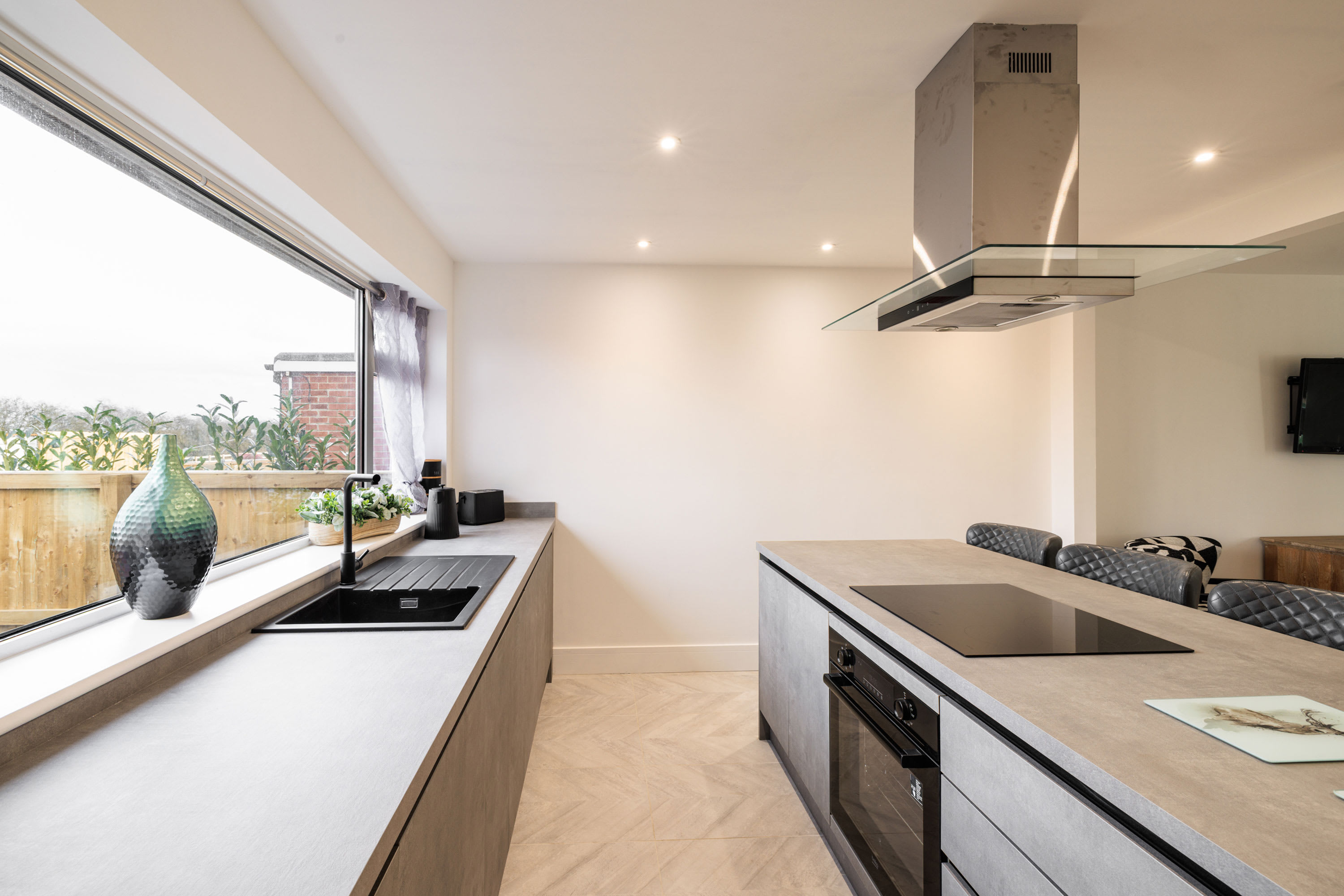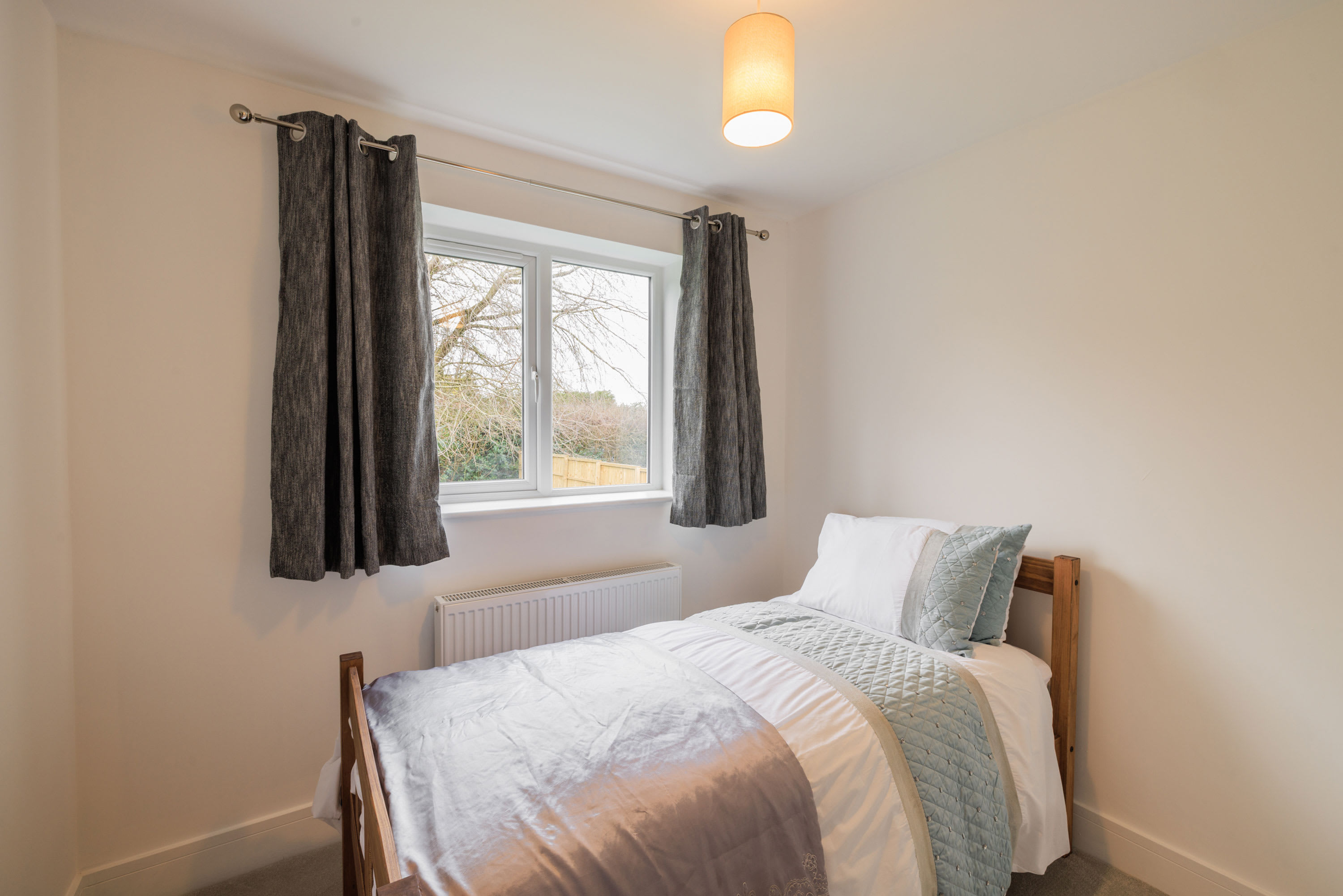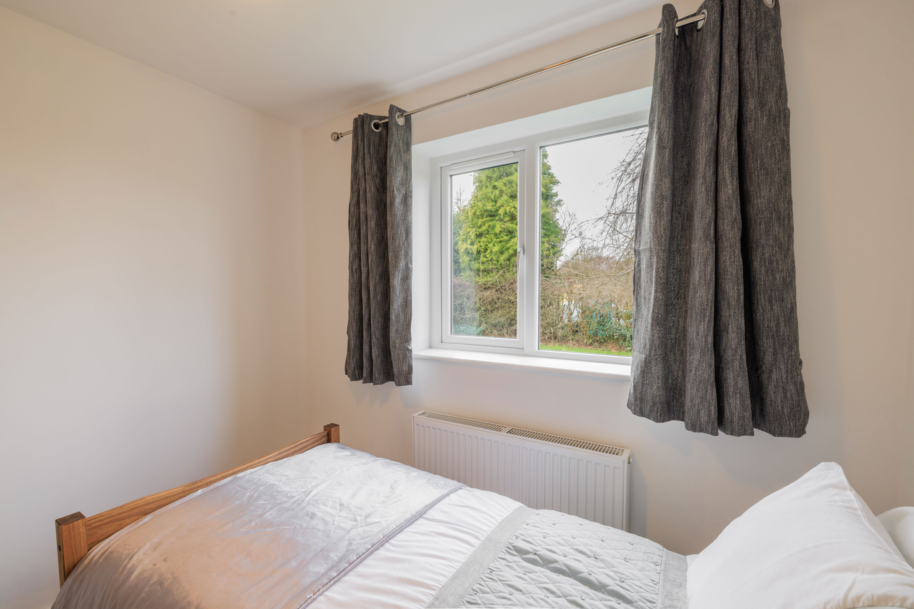 Hawthorn Bank combines contemporary elegance with a warm and inviting atmosphere, offering beautifully designed living spaces finished to an impressive standard throughout. At the heart of the home is a truly stunning, spacious kitchen, thoughtfully designed with sleek integrated cabinetry, clean lines and a seamless finish that enhances the modern aesthetic. The generous breakfast bar provides ample seating, making it a natural hub for morning coffee, relaxed dining or social gatherings, while the electric hob and striking modern extractor above add both practicality and style. Large windows frame a peaceful outdoor outlook, allowing natural light to pour in and create a bright yet calming environment. The kitchen flows effortlessly into a spacious, open-plan living area that feels both airy and welcoming. This light-filled space offers comfortable seating arranged around a flat-screen television, making it perfect for cosy evenings or relaxed entertaining. Neutral and calming flooring runs throughout the home, adding continuity and enhancing the sense of space, while the soft colour palette creates a tranquil backdrop that suits any style. The property continues to impress with three beautifully presented bedrooms. The main bedroom features a comfortable double bed and a restful ambiance, while the second bedroom offers two single beds, ideal for family or guests. The third bedroom provides a cosy single bed, perfect as a quiet retreat or additional guest space. Each room is tastefully decorated in neutral tones, promoting a sense of calm and relaxation. The modern bathroom is finished to a high specification, showcasing complementary tiling, an elegant designer radiator and a luxurious overhead shower complete with sophisticated brass fittings that add a refined touch. Outside, the large front garden provides a wonderful open outlook, creating a peaceful setting to enjoy the changing seasons. With patio furniture in place, it offers the perfect space to sit back and unwind, whether enjoying morning sunshine, evening drinks, or simply watching local wildlife in a tranquil and private setting.