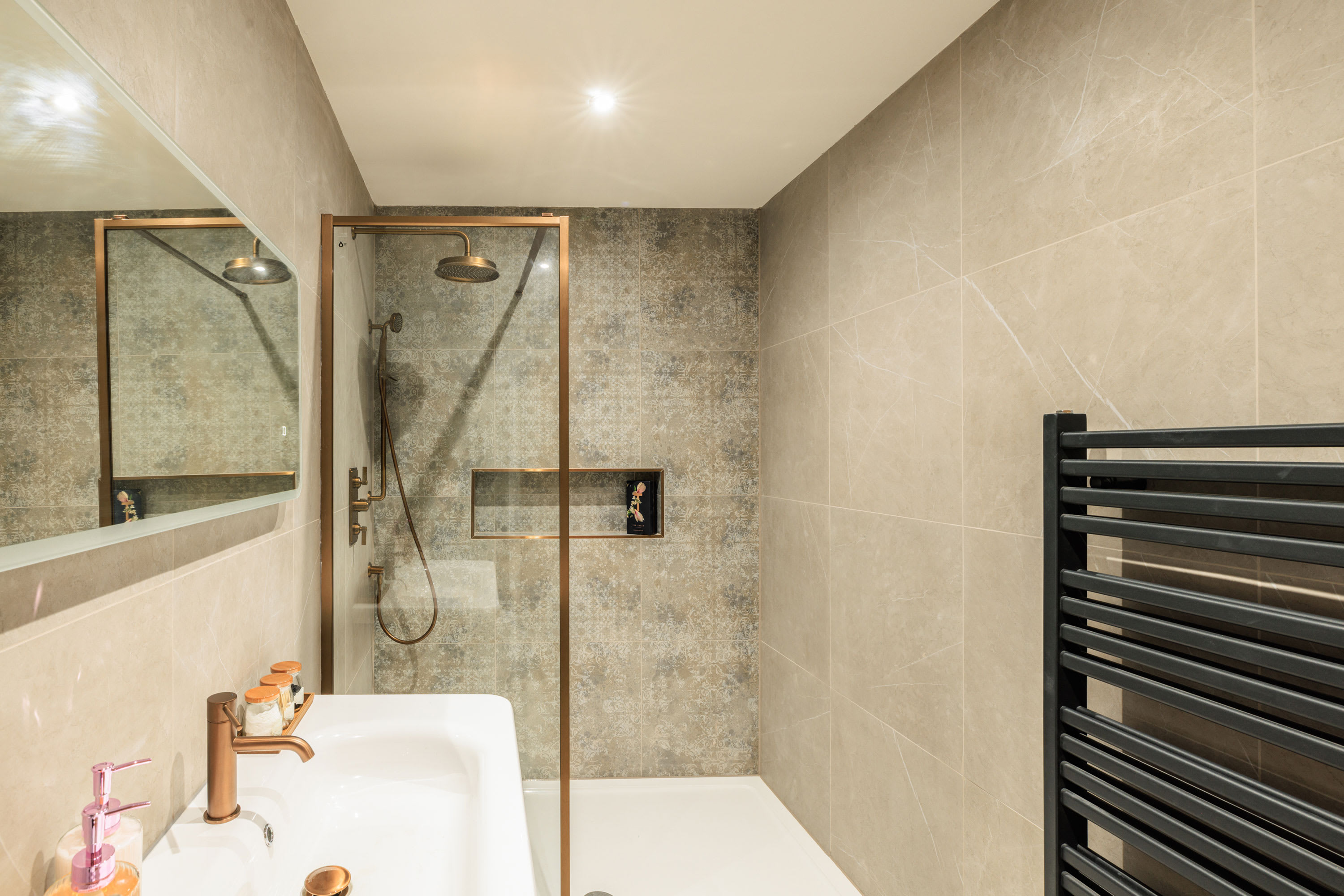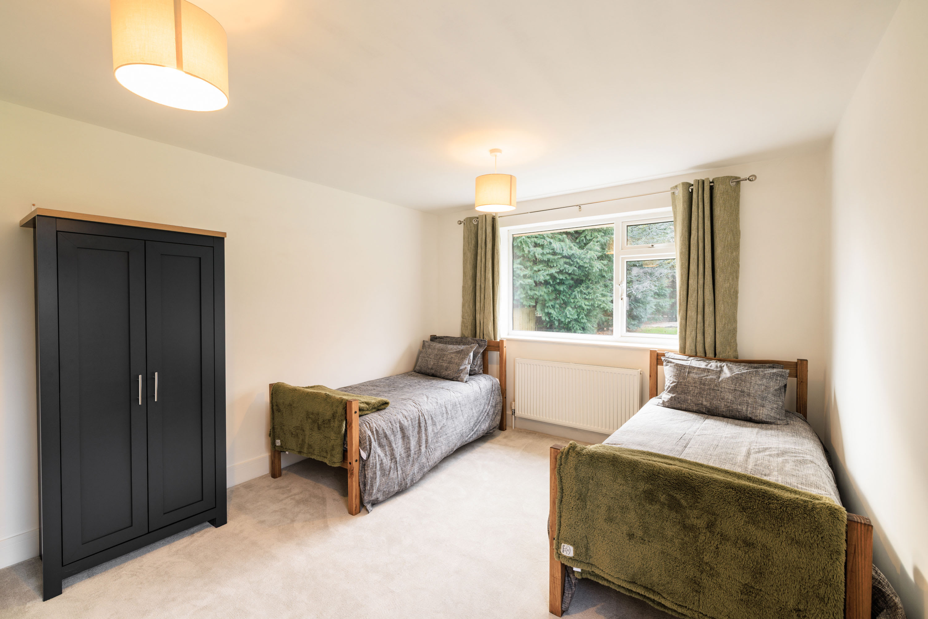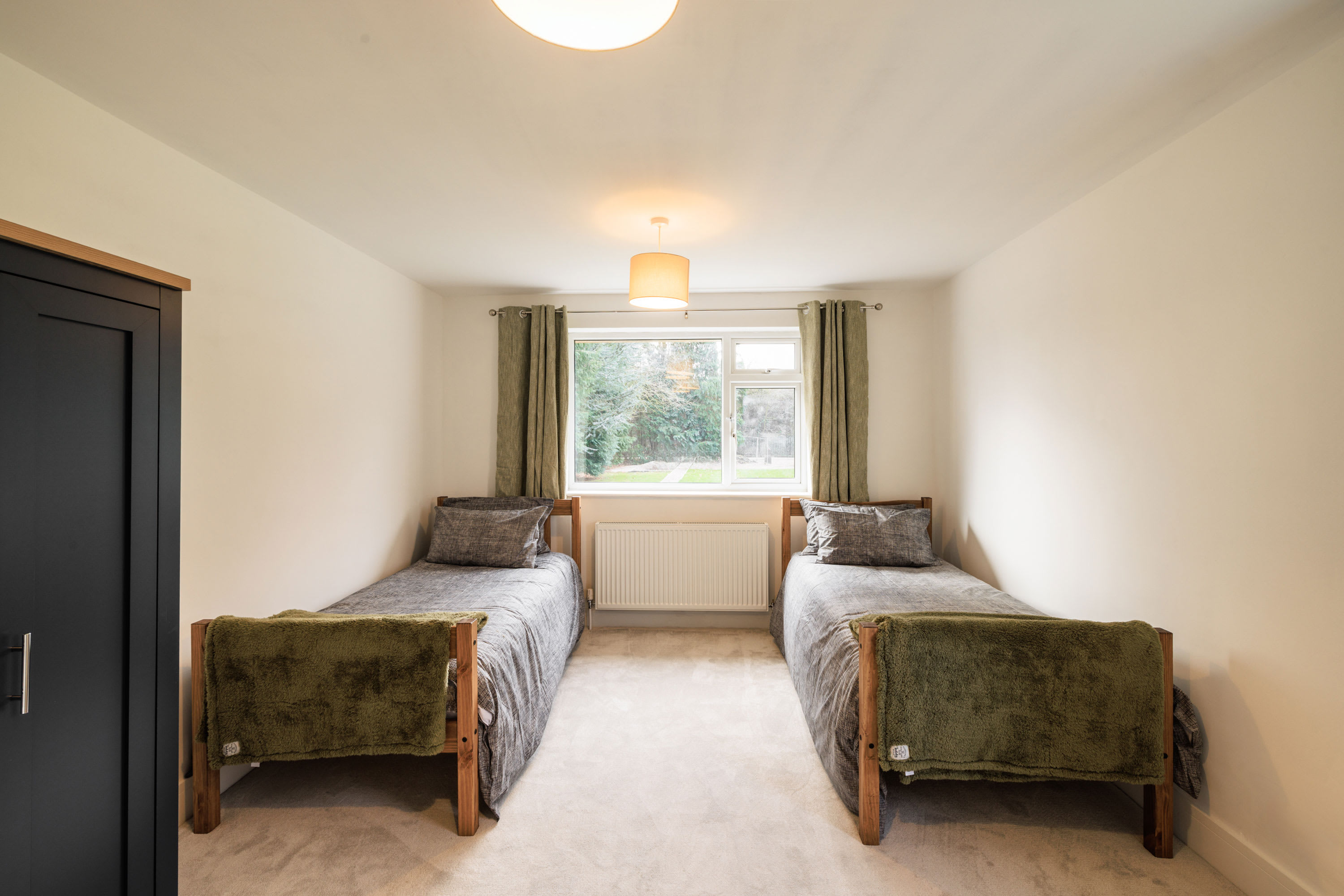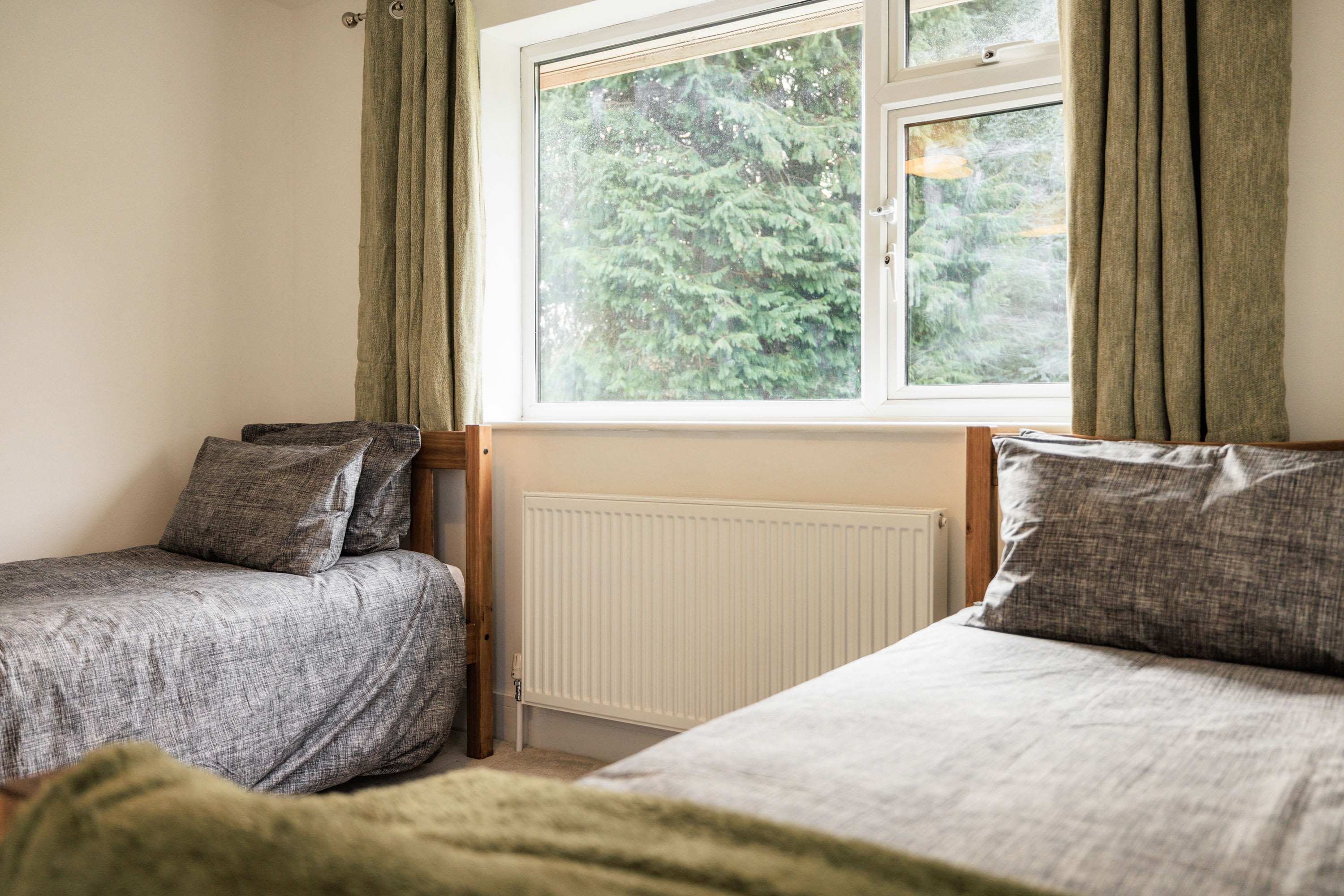 Hawthorn Bank combines contemporary elegance with a warm and inviting atmosphere, offering beautifully designed living spaces finished to an impressive standard throughout. At the heart of the home is a truly stunning, spacious kitchen, thoughtfully designed with sleek integrated cabinetry, clean lines and a seamless finish that enhances the modern aesthetic. The generous breakfast bar provides ample seating, making it a natural hub for morning coffee, relaxed dining or social gatherings, while the electric hob and striking modern extractor above add both practicality and style. Large windows frame a peaceful outdoor outlook, allowing natural light to pour in and create a bright yet calming environment. The kitchen flows effortlessly into a spacious, open-plan living area that feels both airy and welcoming. This light-filled space offers comfortable seating arranged around a flat-screen television, making it perfect for cosy evenings or relaxed entertaining. Neutral and calming flooring runs throughout the home, adding continuity and enhancing the sense of space, while the soft colour palette creates a tranquil backdrop that suits any style. The property continues to impress with three beautifully presented bedrooms. The main bedroom features a comfortable double bed and a restful ambiance, while the second bedroom offers two single beds, ideal for family or guests. The third bedroom provides a cosy single bed, perfect as a quiet retreat or additional guest space. Each room is tastefully decorated in neutral tones, promoting a sense of calm and relaxation. The modern bathroom is finished to a high specification, showcasing complementary tiling, an elegant designer radiator and a luxurious overhead shower complete with sophisticated brass fittings that add a refined touch. Outside, the large front garden provides a wonderful open outlook, creating a peaceful setting to enjoy the changing seasons. With patio furniture in place, it offers the perfect space to sit back and unwind, whether enjoying morning sunshine, evening drinks, or simply watching local wildlife in a tranquil and private setting.