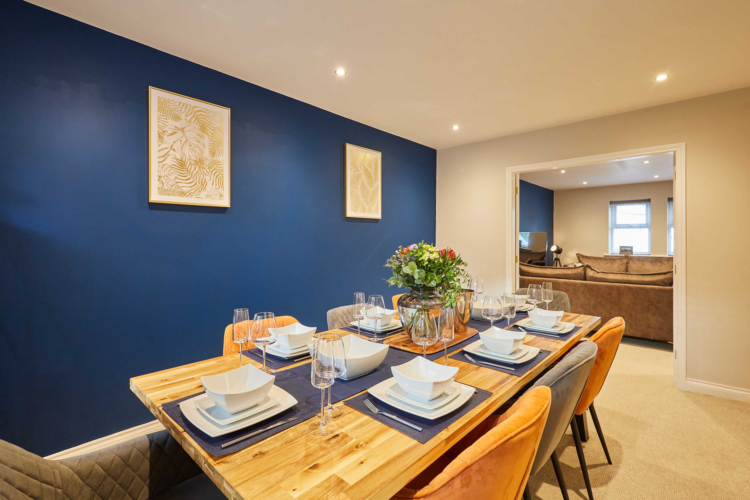 River Hill House is a stylish three-storey retreat in Hurworth Place, finished to a high standard throughout. It offers spacious living areas, a fully equipped kitchen, and comfortable bedrooms, perfect for families, friends, or groups. Enjoy more space and better value than a hotel, with room to relax, dine together, and unwind in a peaceful village setting near Darlington