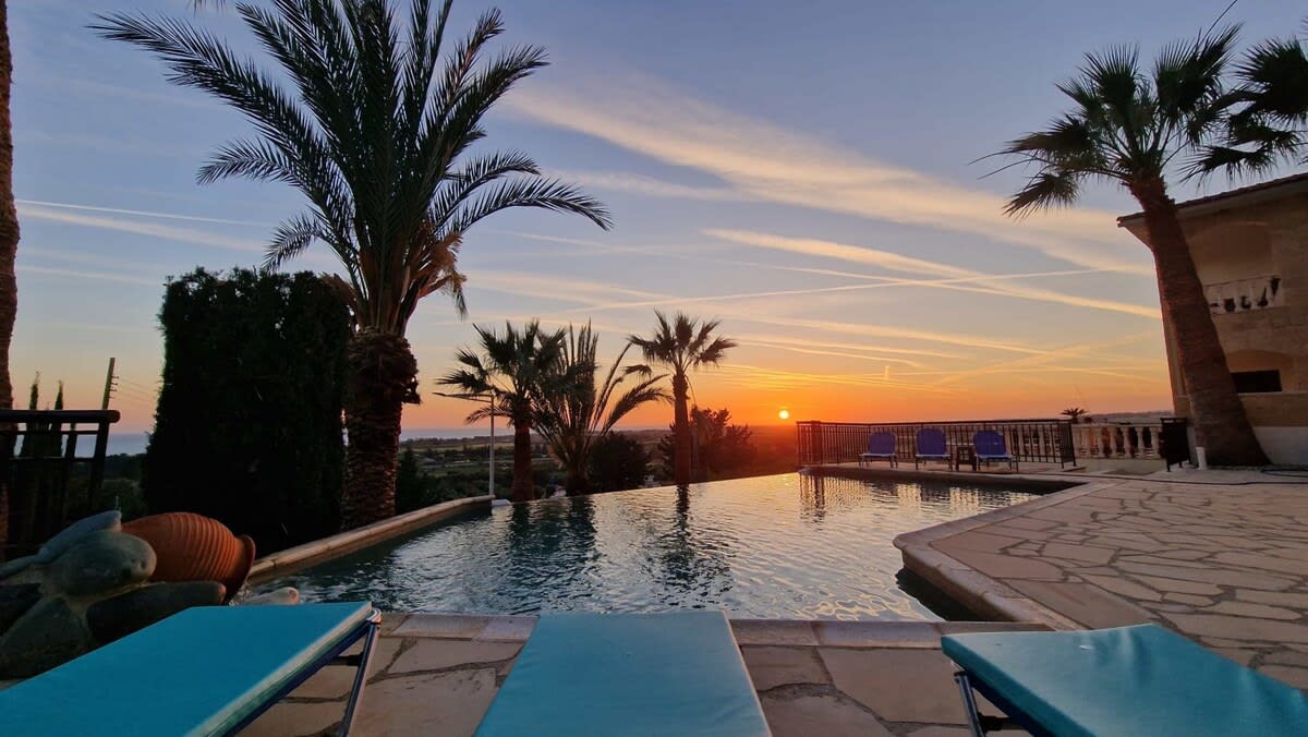 Set in Kouklia, Sunset Villa offers accommodation with a private infinity pool and free WiFi. Built in 2012, the property features air conditioning throughout and breathtaking sea views from all rooms. Situated a short distance from the cities of Paphos and Limassol, the villa has plenty of outdoor space to boast about where you can enjoy gorgeous sunsets every evening. Sleeping up to six guests across three bedrooms, Sunset Villa is equipped with everything you need for a holiday in Cyprus.