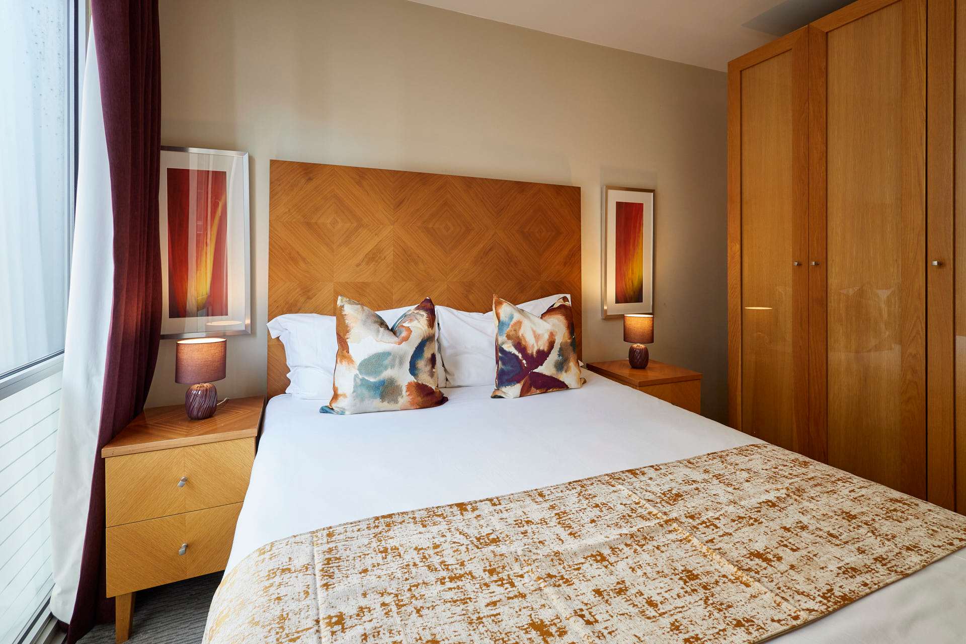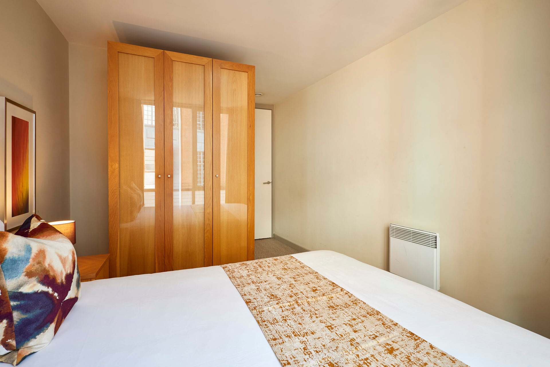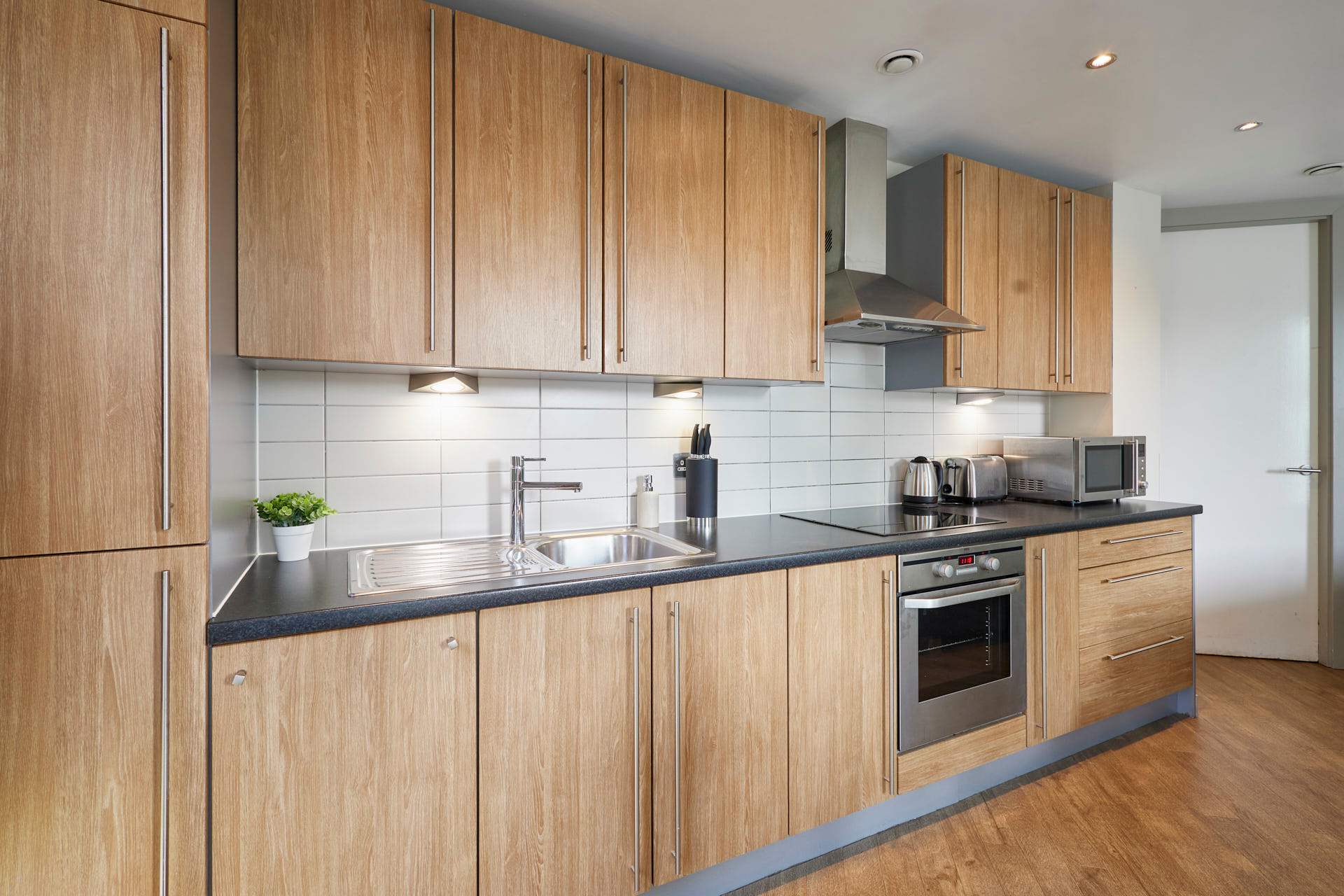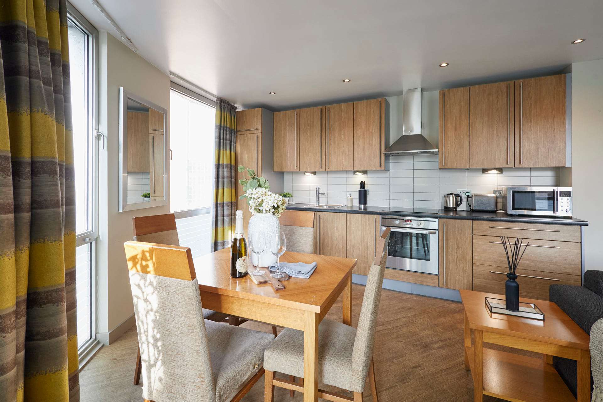 Step inside and be greeted by a bright, stylish apartment designed with comfort and simplicity in mind. The clean décor, contemporary furnishings, and abundance of natural light create a relaxing space where you can truly unwind. The open-plan living, dining, and kitchen area offers plenty of room to relax and recharge. Settle into the sofas after a day of sightseeing, catch up on your favourite shows on the flat-screen TV, or simply enjoy a quiet evening with a book. Next to the large window, the dining area provides a light and welcoming spot for shared meals. With its minimalist design and light wood furniture, it’s perfect for slow breakfasts or cosy dinners with your partner. The modern kitchen is fully equipped with everything you need, including a dishwasher, fridge, freezer, kettle, microwave, oven, hob, and toaster - making cooking and dining in effortless. The bedrooms are both peaceful retreats featuring comfortable king-size beds and soft, inviting furnishings. Elegant touches of colour bring warmth to the spaces, while blackout curtains ensure a restful night’s sleep. A wardrobe and chest of drawers complete the room, offering plenty of storage during your stay. Combining modern design with a homely feel, 207 Hatton Garden is the perfect base for a relaxing Liverpool getaway.