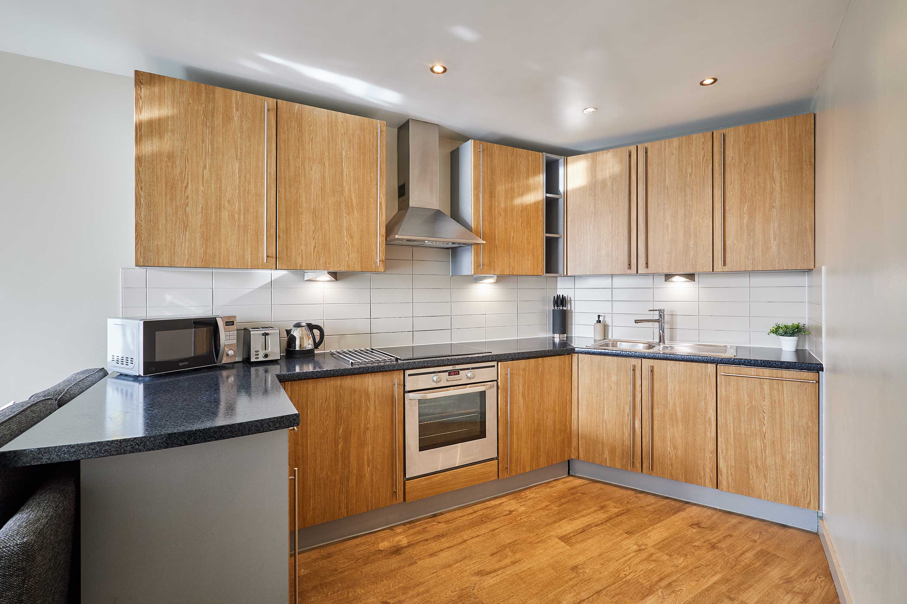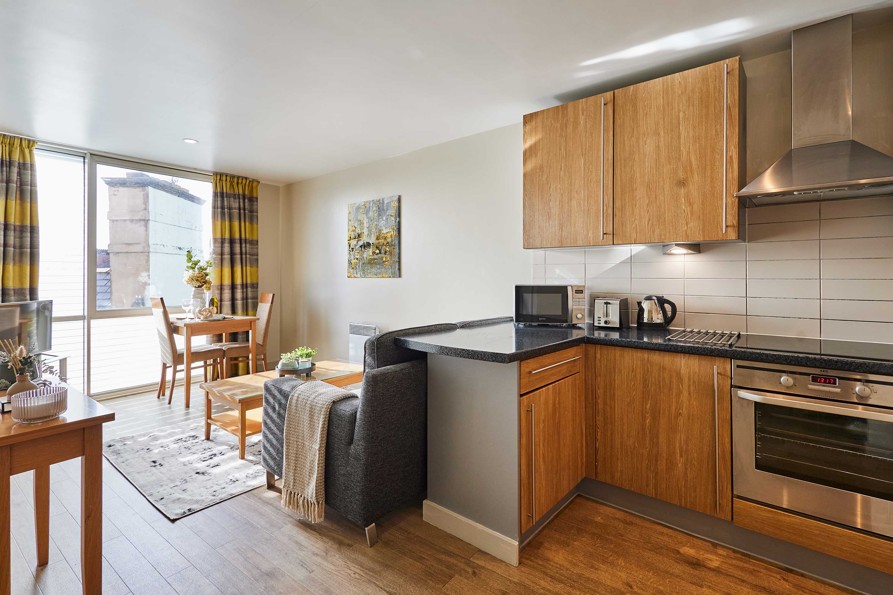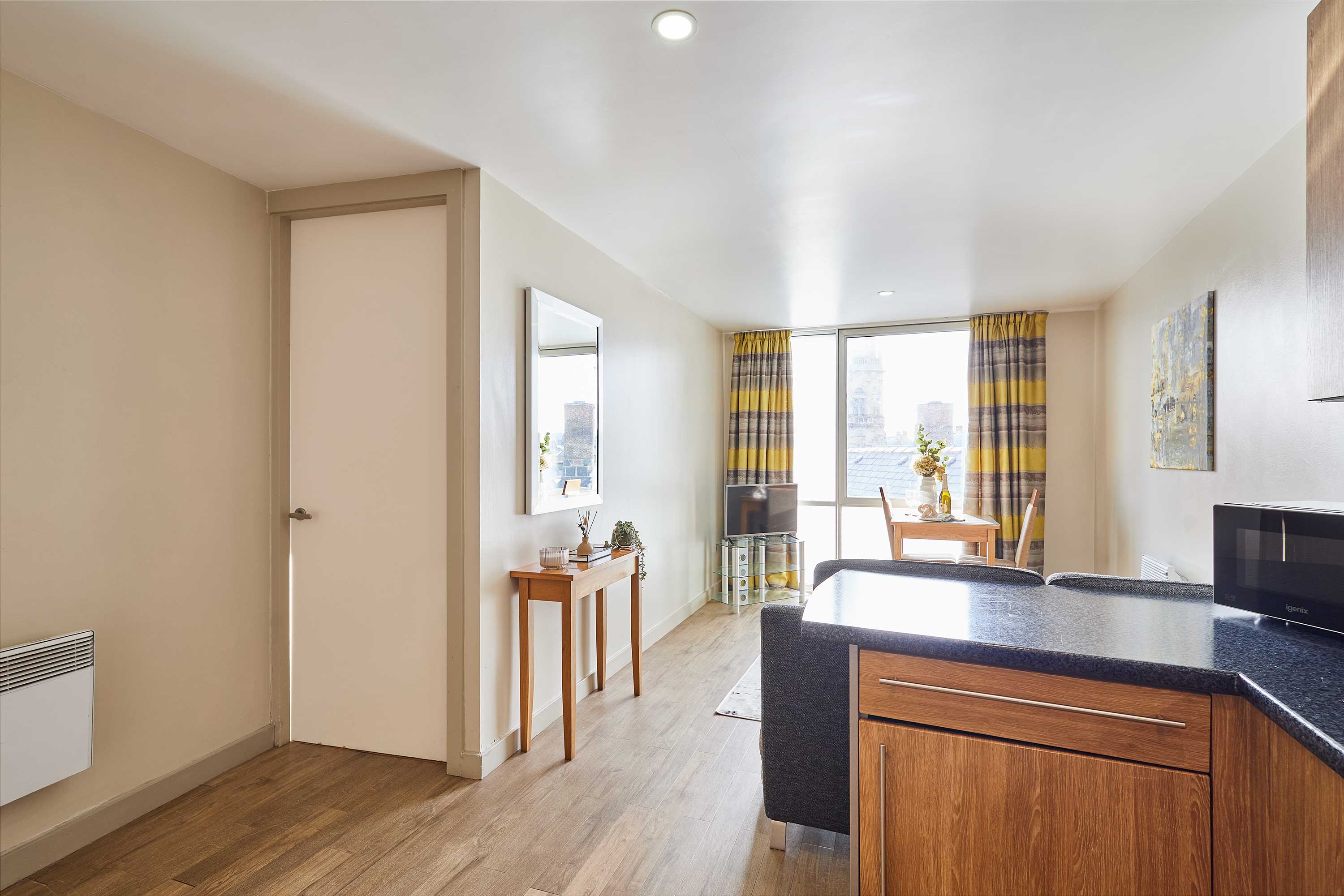 Step inside and feel instantly at home in this bright, modern apartment. With its clean lines, soft tones, and contemporary furnishings, the space offers a calm and inviting atmosphere - the perfect place to unwind after a day exploring the city. The open-plan living, dining, and kitchen area is filled with natural light, creating an airy and comfortable setting to relax and recharge. Curl up on the sofa with a good book, enjoy your favourite shows on the flat-screen TV, or simply take in the tranquil ambiance. By the large window, you’ll find the dining area - a light wood table and chairs that perfectly complement the apartment’s minimalist design. Enjoy slow breakfasts as the city wakes or share cosy evening meals with your loved one. The sleek, well-equipped kitchen has everything you need to make your stay effortless, including a dishwasher, fridge, freezer, kettle, microwave, oven, hob, and toaster. Whether you’re preparing a quick snack or a home-cooked dinner, you’ll find it all here. When it’s time to rest, the bedroom offers a peaceful haven. The plush king-size bed, soft furnishings, and elegant touches of plum create a soothing atmosphere. Blackout curtains ensure a restful night’s sleep, while a wardrobe and chest of drawers provide plenty of storage for your stay. 408 Hatton Garden is more than just a place to stay - it’s a fresh, welcoming home from home in the heart of Liverpool.