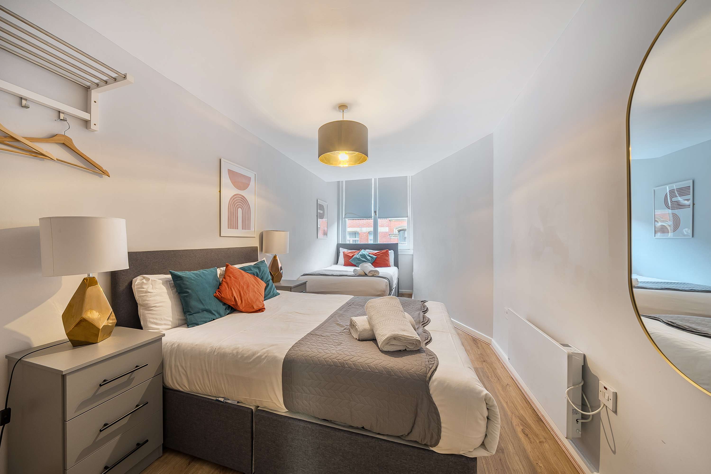Step inside and discover a bright, modern space designed for comfort and relaxation. With soft neutral tones, contemporary furnishings, and stylish details, this apartment offers a warm and inviting retreat in the heart of Liverpool. The open-plan living, dining, and kitchen area is filled with natural light, creating a calm and spacious environment ideal for unwinding after a day of exploring. Settle into the comfortable sofa to watch your favourite shows on the flat-screen TV, enjoy a quiet evening chatting with friends, or simply take in the peaceful surroundings. The fully equipped kitchen includes everything you need for a hassle-free stay: a fridge, freezer, oven, hob, microwave, kettle, and toaster. Whether you’re preparing a quick snack or a home-cooked meal, you’ll find it easy to settle in and feel right at home. You will find one bedroom that features two double beds, along with the sofa bed in the living area that makes the apartment accommodate up to six guests comfortably. The bathroom is fully equipped to ensure guests can have a relaxing bath, or shower. You will find all essential toiletries and towels on entering the bathroom. Comfortable, stylish, and thoughtfully designed, the apartment provides the ideal base to relax, recharge, and experience all that Liverpool has to offer.