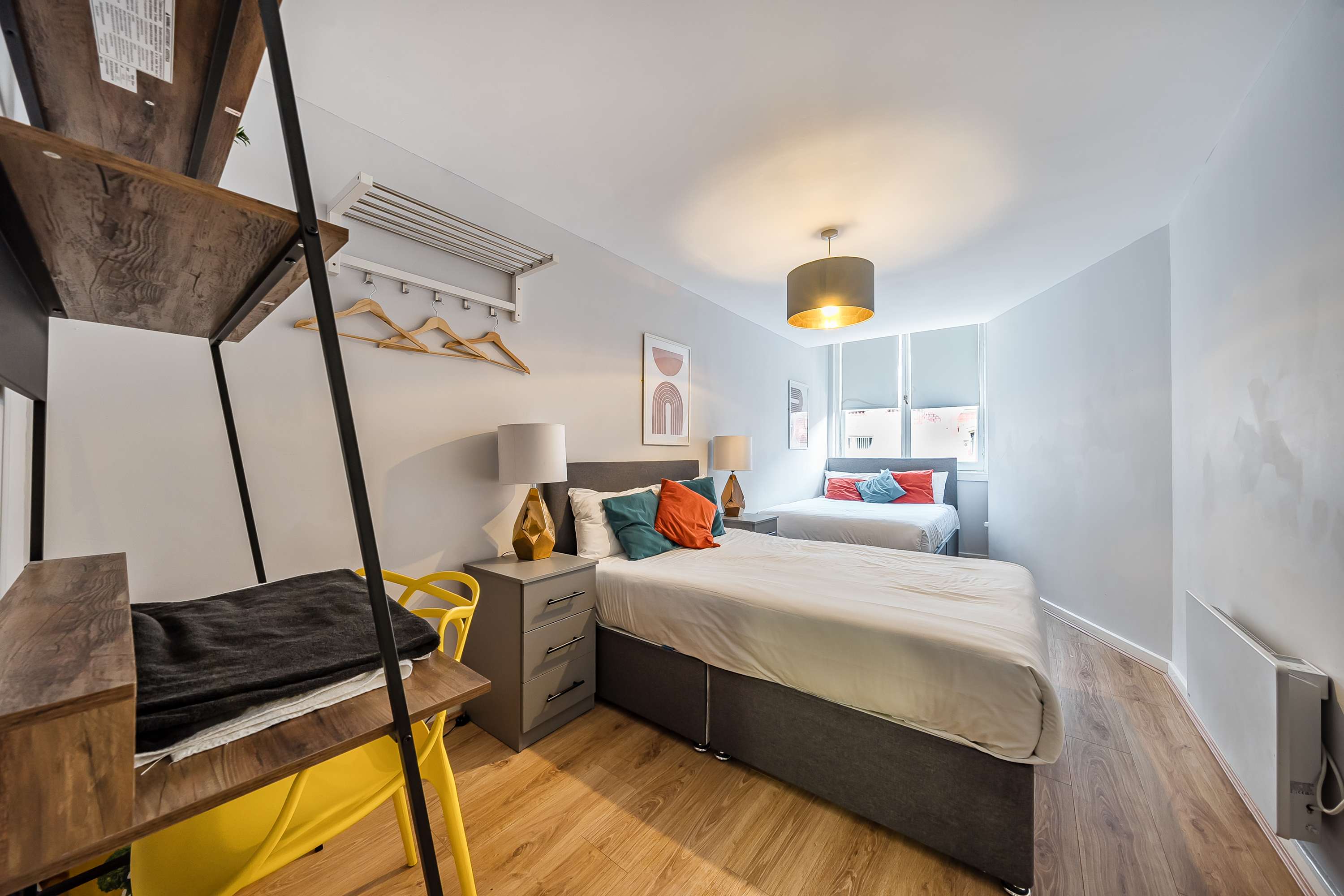 Step inside Apartment 5, Stanley Street, and discover a beautifully designed space that blends modern comfort with a touch of urban charm. Bright, airy, and thoughtfully furnished, the apartment offers a relaxing retreat right in the heart of Liverpool. The open-plan living, dining, and kitchen area creates a warm and inviting atmosphere. Perfect for unwinding after a day exploring the city. Sink into the comfortable sofas and enjoy your favourite shows on the flat-screen TV, or simply take a quiet moment to recharge. The dining area provides a lovely, light-filled spot to enjoy a morning coffee or share a meal with friends. The contemporary kitchen is fully equipped with everything you need, including a dishwasher, fridge, freezer, microwave, oven, hob, kettle, and toaster making it easy to prepare anything from a light snack to a home-cooked dinner. When it’s time to rest, retreat to the peaceful bedroom featuring two double beds, soft linens, and calming décor. Thoughtful touches of colour bring warmth to the space, while blackout curtains ensure a restful night’s sleep. You’ll also find the sofa bed in the living area for an additional two guests, along with ample storage to make your stay even more comfortable. Enjoy some relaxation in the modern bathroom, featuring a bath with a stand in shower along with all essential toiletries you would expect to find, including fresh white towels. Stylish, welcoming, and perfectly located, Apartment 5 on Stanley Street offers the ideal home-from-home experience for your Liverpool getaway.