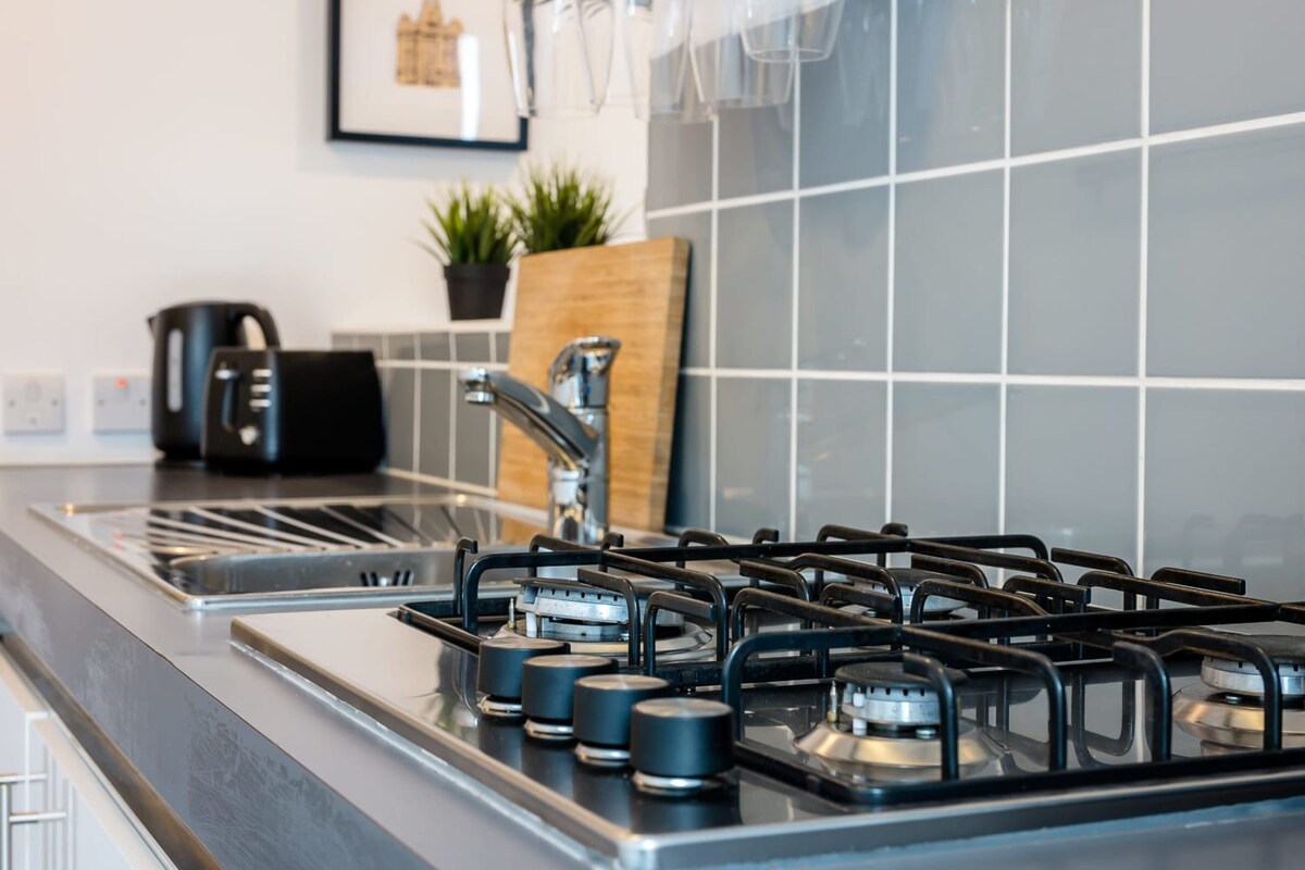 This modern apartment is a bright & cosy nest, ideal for relaxing after a day exploring the city! The lounge area benefits from the light coming in from the floor to ceiling windows and doors to the terrace, along with a double sofa bed. The terrace is private and for your use only - it is lovely in the morning whilst enjoying a cuppa, or in the evening with a glass of wine. We have a modern, fully fitted kitchen so you have all you need to self cater & enjoy a night in. The bathroom is contemporary, with statement tiles & shower. To the rear of the apartment you have the cosy double bedroom with wardrobe & bedside table. Kindly note the keys for the property are collected off site, a 5 minute walk away.