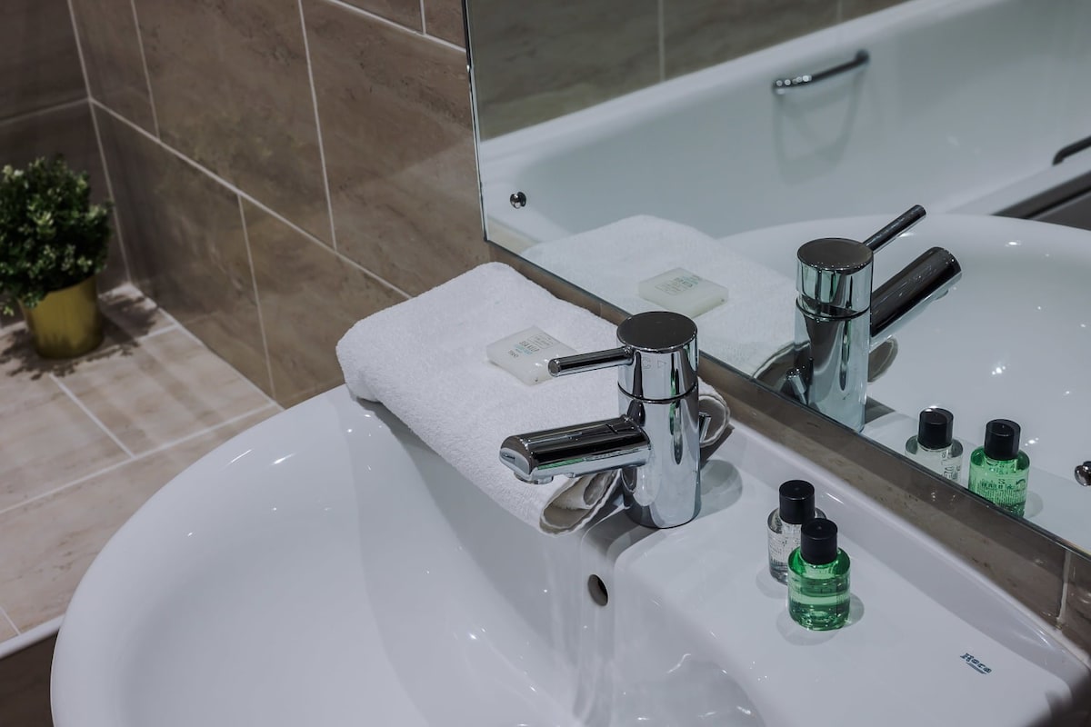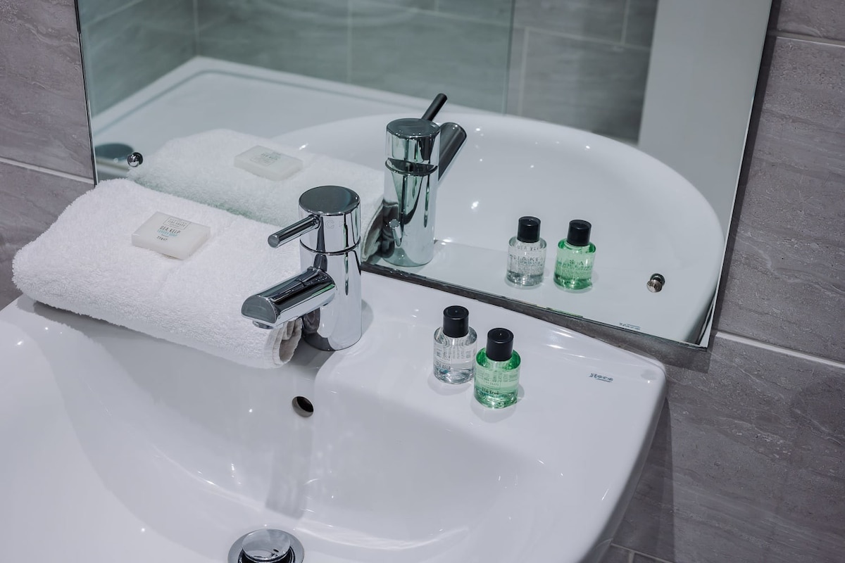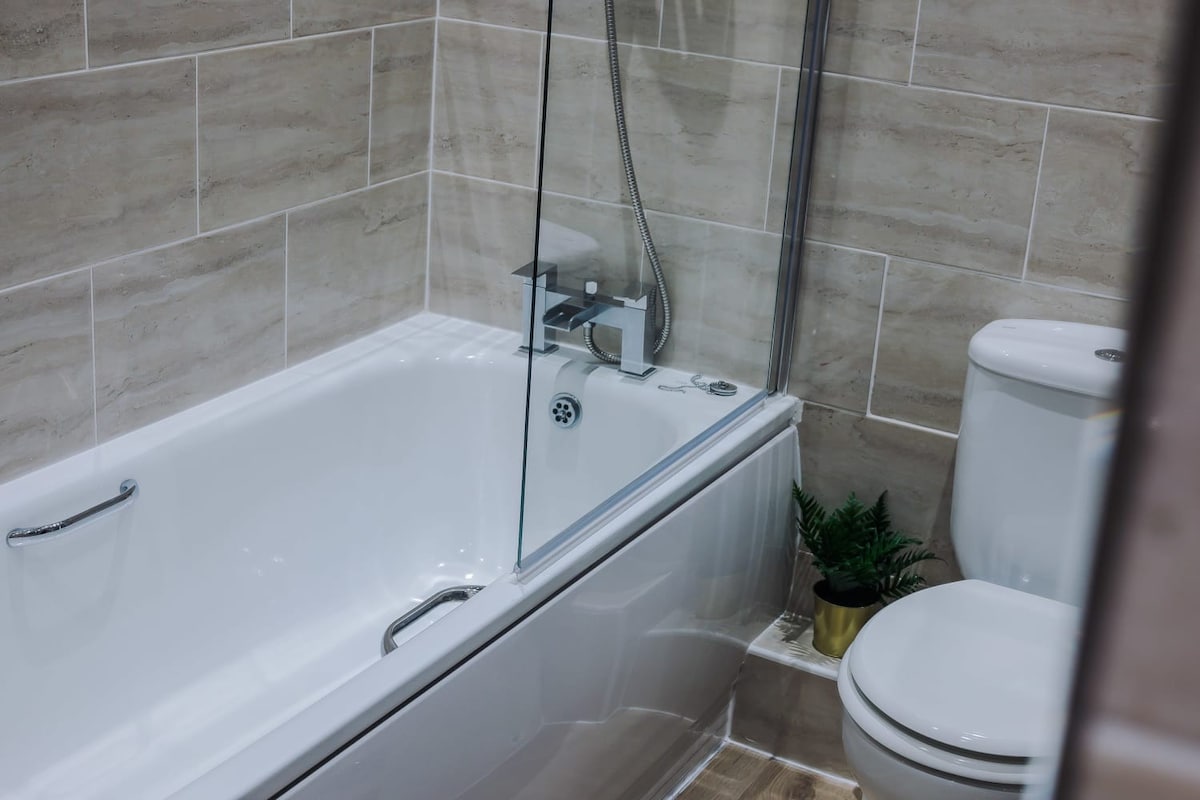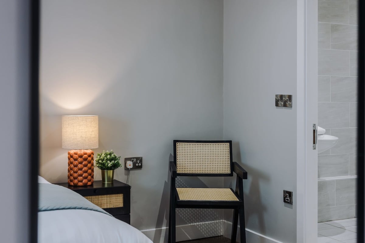 A contemporary two-bedroom apartment, with plenty of of space for up to 6 guests. Newly refurbished, with two hotel standard double beds and a double sofa bed with a full deep sprung mattress in the lounge. The cosy interiors offer everything you could need for that home away from home feel. The apartment sleeps 6: Open-plan living/kitchen room: • Fitted with a double sofa bed sleeping up to 2 guests comfortably. • Equipped with a fully kitted kitchen with an integrated microwave, kettle, oven/hob, toaster, basic cookingware, fridge/freezer, Nespresso coffee machine, and more - everything you need for a comfortable stay. • Share a hearty meal with the group at the breakfast bar in the open-plan living/kitchen area. • Has a wall-mounted 50" Smart TV allowing you to stream your favourite online shows! Bedroom 1: • The master bedroom is fitted with a double-size bed sleeping up to 2 guests. • Has a wooden wardrobe for managing your clothes. • Comes with an ensuite bathroom that has toilet, sink, and a shower. Bedroom 2: • Fitted with a double-size bed sleeping up to 2 guests. • Has a hanging rail for managing your clothes! Main Bathroom: • Modern design fitted with a toilet, basin, and a shower over bath.