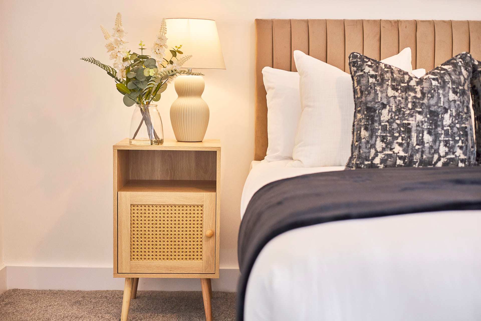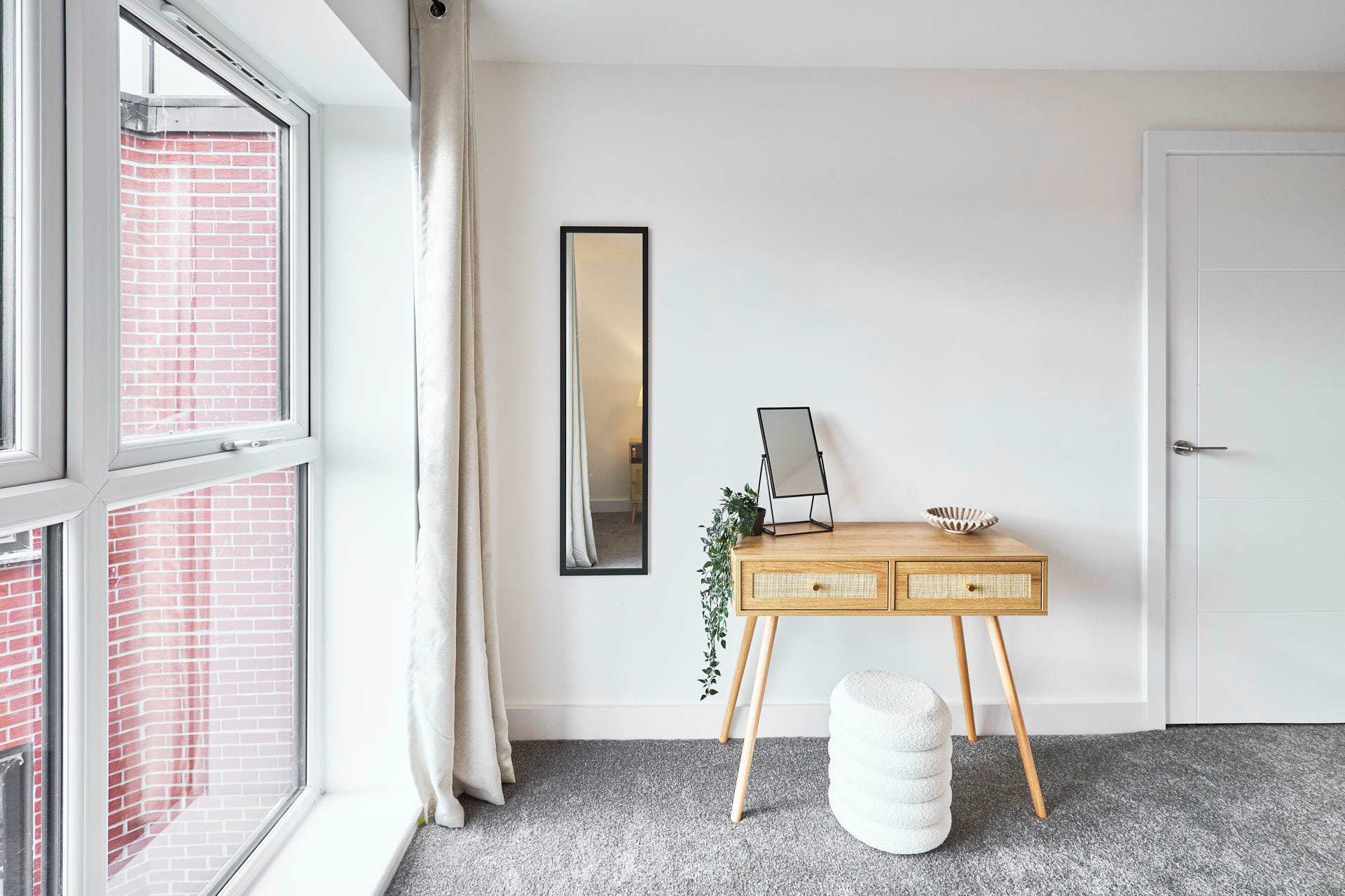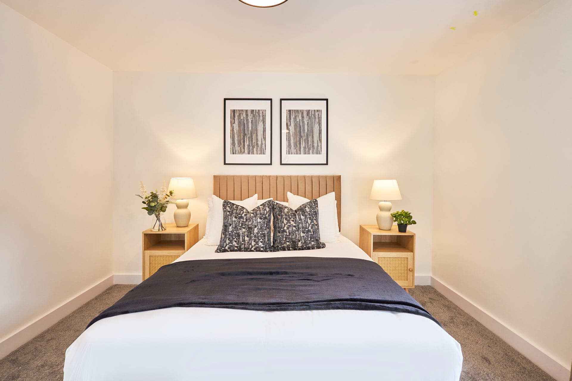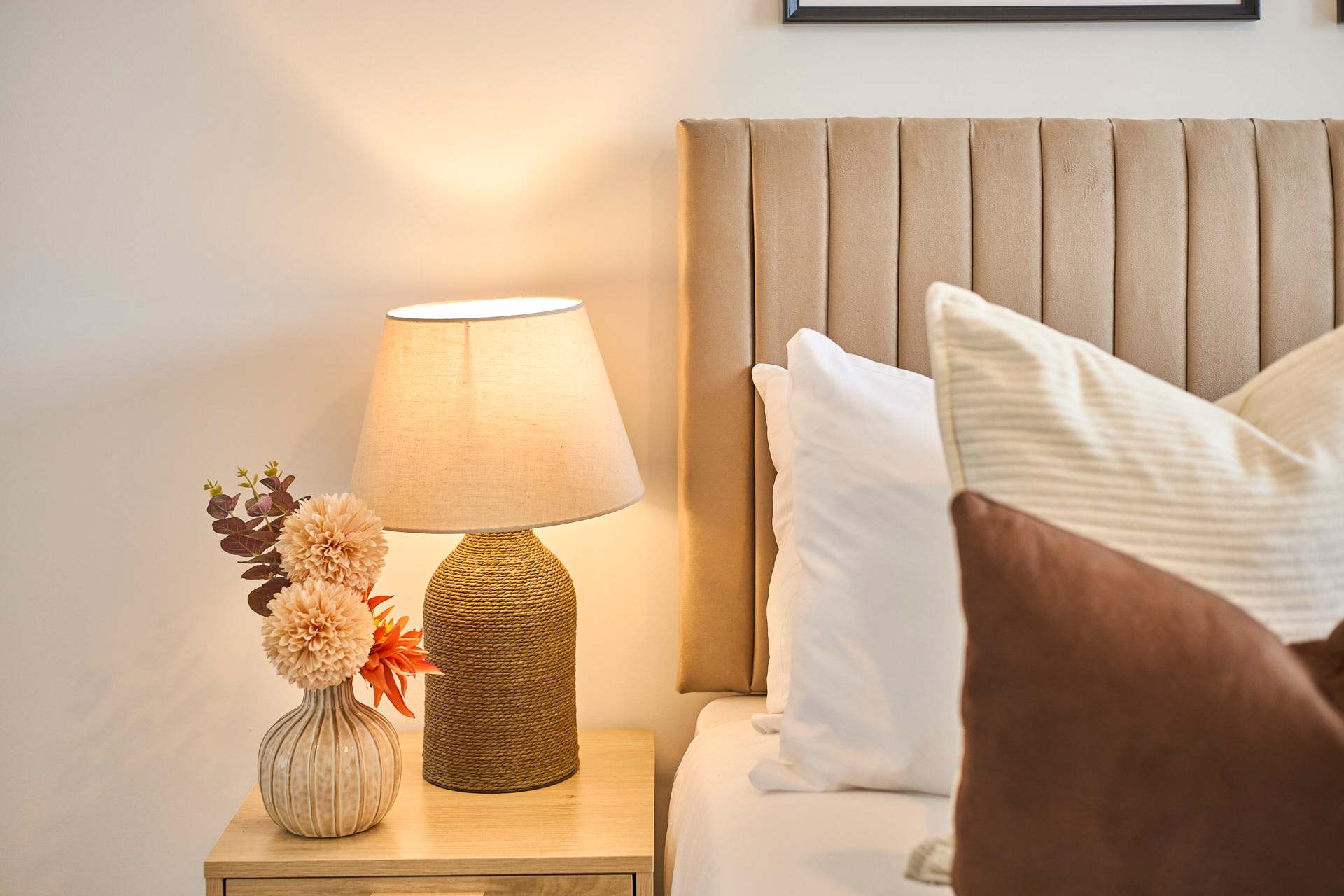 10 Queens Court is a sleek, 2-bedroom apartment featuring airy spaces filled with natural light, complemented by contemporary décor and warm, inviting touches. Relax in the elegant living area with cozy seating and large windows, or enjoy meals in the stylish dining space. The bedrooms are thoughtfully designed with plush bedding, soft textures, and a calm, minimalist feel perfect for a restful night’s sleep. The clean, modern bathroom includes a walk-in shower and fresh finishes, adding a touch of hotel-quality comfort. Ideal for couples, friends, or small groups, this space offers a peaceful yet well-connected base for your Liverpool stay.