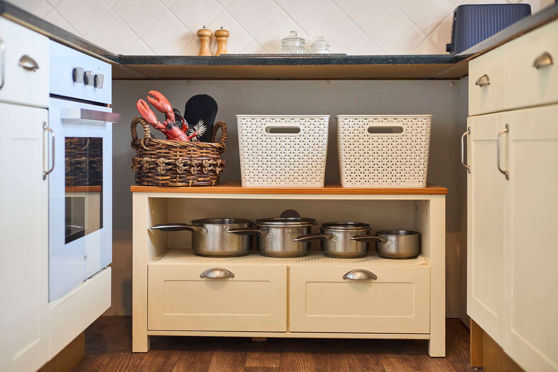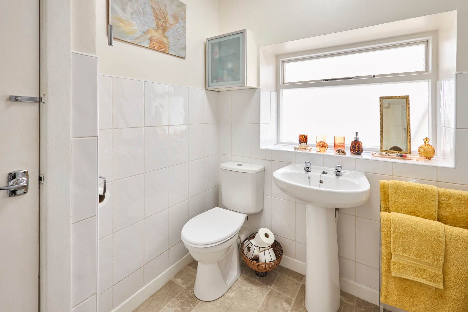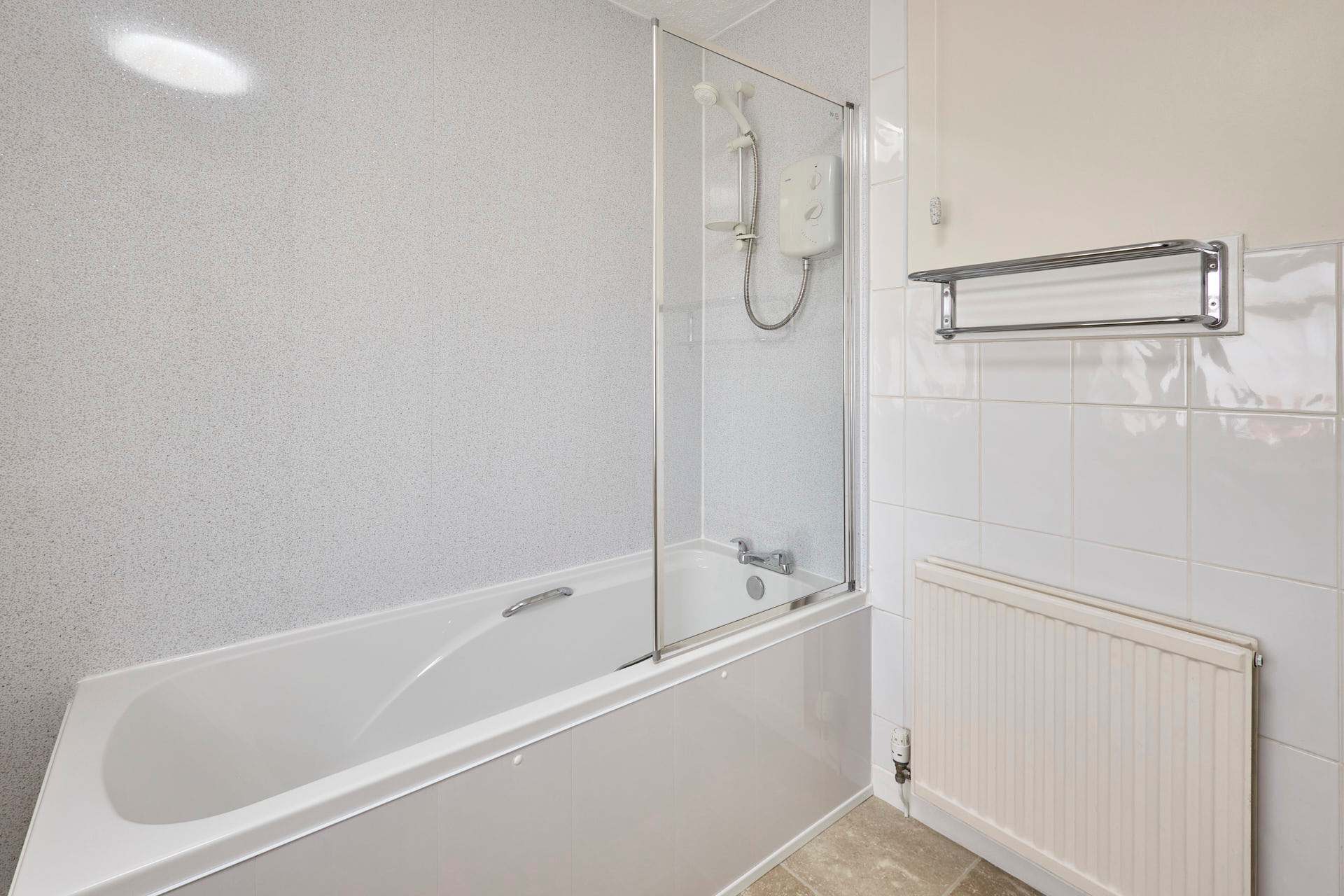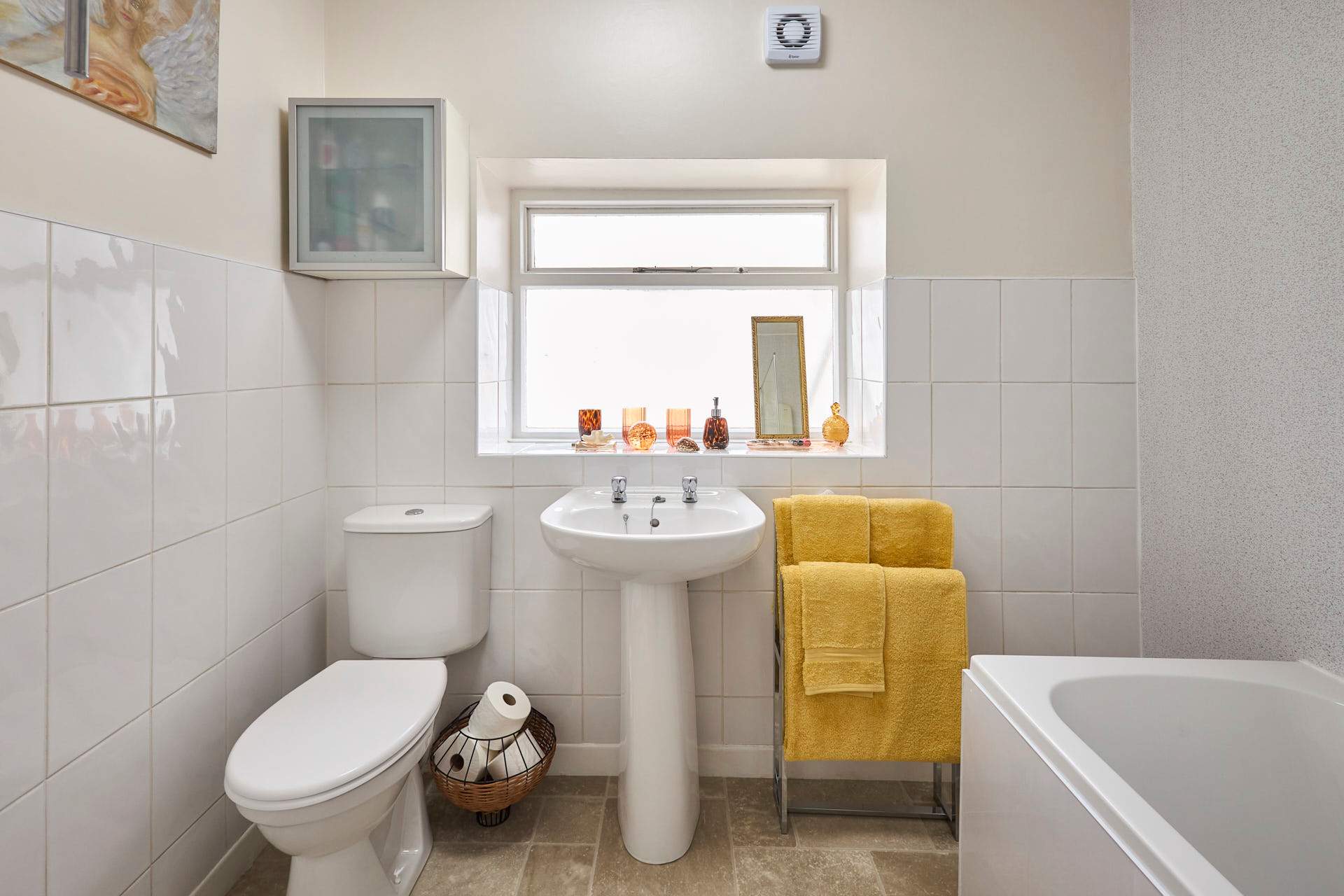 Step into a bright and characterful living space that perfectly captures the property’s quirky coastal charm. Flooded with natural light from a large picture window offering partial sea views, this inviting lounge is the ideal place to relax after a day by the shore. The room is styled with a playful mid-century fisherman’s cove aesthetic, elevated by bold teal walls and subtle touches of tiki-inspired décor. Comfortable leather seating is paired with vibrant cushions, while a rattan coffee table and matching dining set add warmth and texture to the space. A cosy dining nook by the window provides the perfect spot for morning coffee or a sunset drink, while thoughtfully chosen decorative pieces – including coastal accents and an original oil painting – give the room a personal, artistic feel. The well-equipped kitchen continues the property’s blend of practicality and personality, offering everything you need for a comfortable self-catering stay. Bright and neatly laid out, the space features ample worktop area, modern appliances including an oven, hob, microwave, and fridge-freezer, as well as plenty of storage for longer stays. Warm wood-effect flooring and soft neutral cabinetry are complemented by thoughtful decorative touches, creating a welcoming and homely feel. A window allows natural light to filter through, making the kitchen a pleasant space to prepare meals or enjoy a quiet morning coffee. At the far end, a charming feature wall with coastal-inspired wallpaper adds a playful nod to the seaside setting, tying in beautifully with the property’s quirky fisherman’s cove theme. There’s also a convenient washing machine and additional workspace, making this kitchen as functional as it is stylish—perfect for everything from quick breakfasts to relaxed evening dining. The bedroom offers an inviting retreat, thoughtfully styled for comfort and relaxation. A cosy double bed takes centre stage, dressed in vibrant, eye-catching bedding that adds a splash of personality while maintaining a restful atmosphere. A large picture window fills the room with natural light, creating a bright and airy feel throughout the day. The soft sage green feature wall brings a calming, nature-inspired tone to the space, perfectly balancing the bolder accents. Practical yet stylish, the room also includes a sleek wardrobe and a chic vanity unit, providing plenty of storage and a dedicated spot to get ready for the day ahead. Whether you’re winding down after a seaside stroll or enjoying a lazy morning lie-in, this bedroom is a comfortable and tranquil haven. The bathroom is fresh and modern, offering a clean and relaxing space to unwind. Crisp half-height tiling adds a sleek, contemporary feel while keeping the room bright and easy to maintain. A full-sized bath with an overhead shower provides the best of both worlds—perfect for a quick refresh after a day exploring the coast or a long, soothing soak in the evening. Finished with simple, stylish fittings and a light, airy atmosphere, the bathroom complements the property’s overall blend of comfort and thoughtful design.