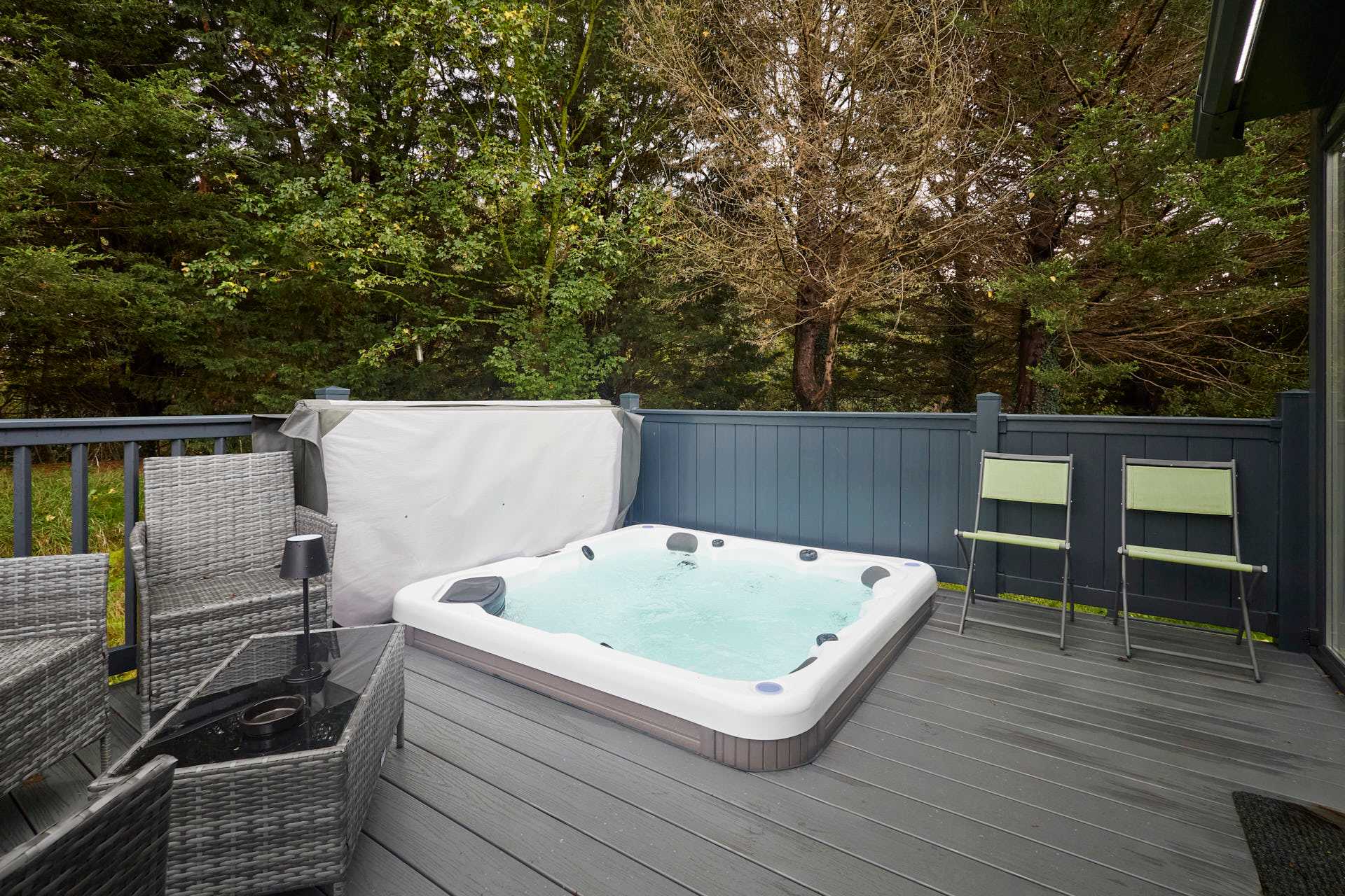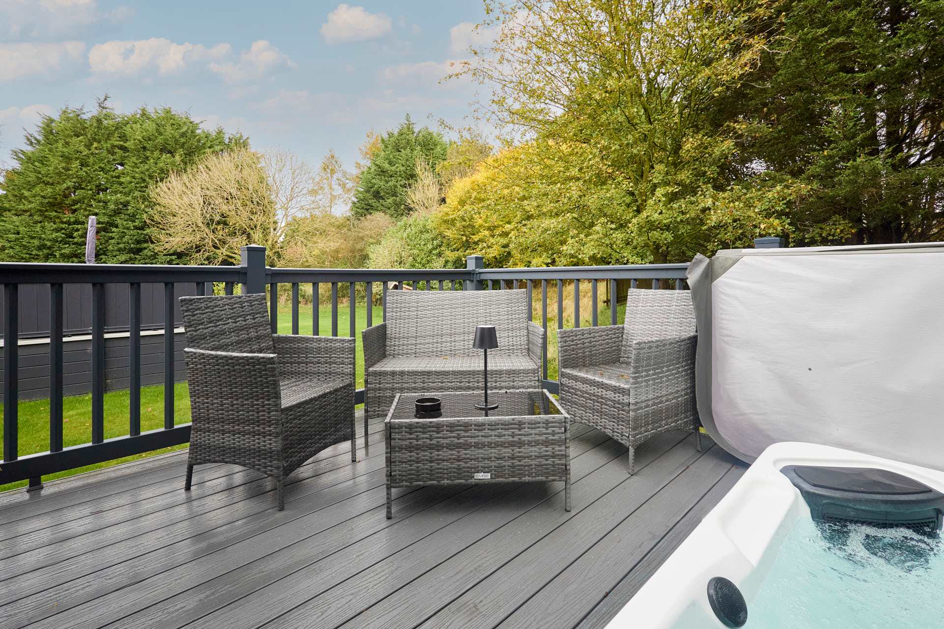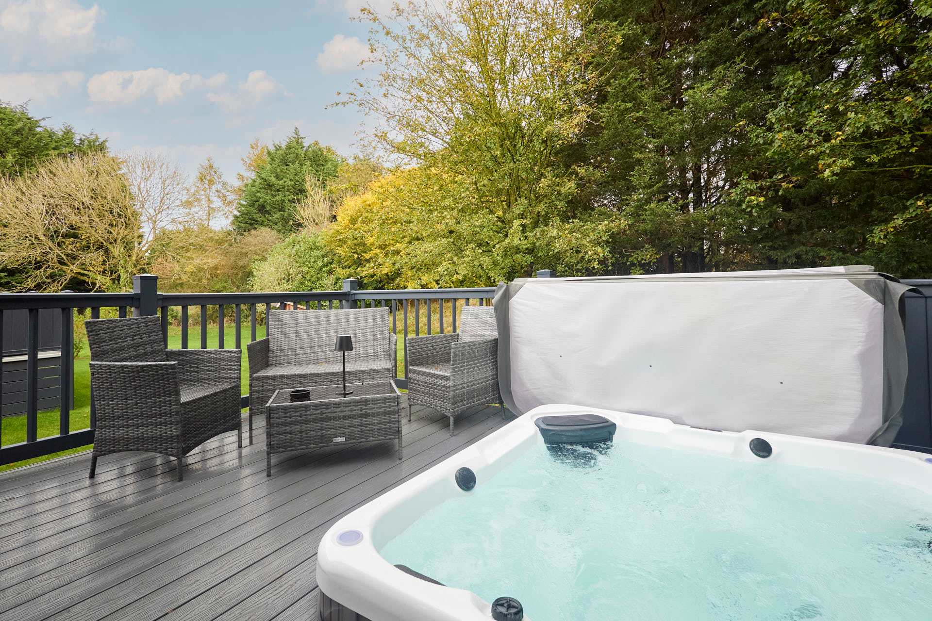 Tucked away in the peaceful surroundings of Allerthorpe Golf & Country Park, 23 Sandy Lane offers a stylish and tranquil countryside escape. This beautifully designed two bedroom, two bathroom lodge sleeps up to four guests and is perfect for couples, small families, or friends seeking a relaxing getaway in nature. The open plan living area is bright and contemporary, finished with soft neutral tones and elegant details that create a calm, welcoming atmosphere. The fully equipped kitchen features high quality appliances and everything you need for a self catered stay, while the dining area provides the perfect spot to enjoy meals together. The lounge area offers comfortable seating, a Smart TV, and large patio doors that open directly onto the private decking area. Step outside and discover your own private retreat complete with outdoor seating and a luxurious hot tub. Whether you are soaking under the stars or enjoying a quiet morning coffee, it is the ideal place to unwind and take in the peaceful park surroundings. The master bedroom features a plush double bed and an en suite shower room, while the second bedroom offers two single beds, making it perfect for families or friends. A second bathroom adds extra convenience, ensuring a comfortable stay for all guests. 23 Sandy Lane is also pet friendly, so your four legged companions are welcome to join you on your stay. With beautiful walking routes, golf, and tranquil lakes right on your doorstep, this lodge is the perfect balance of comfort, nature, and relaxation.