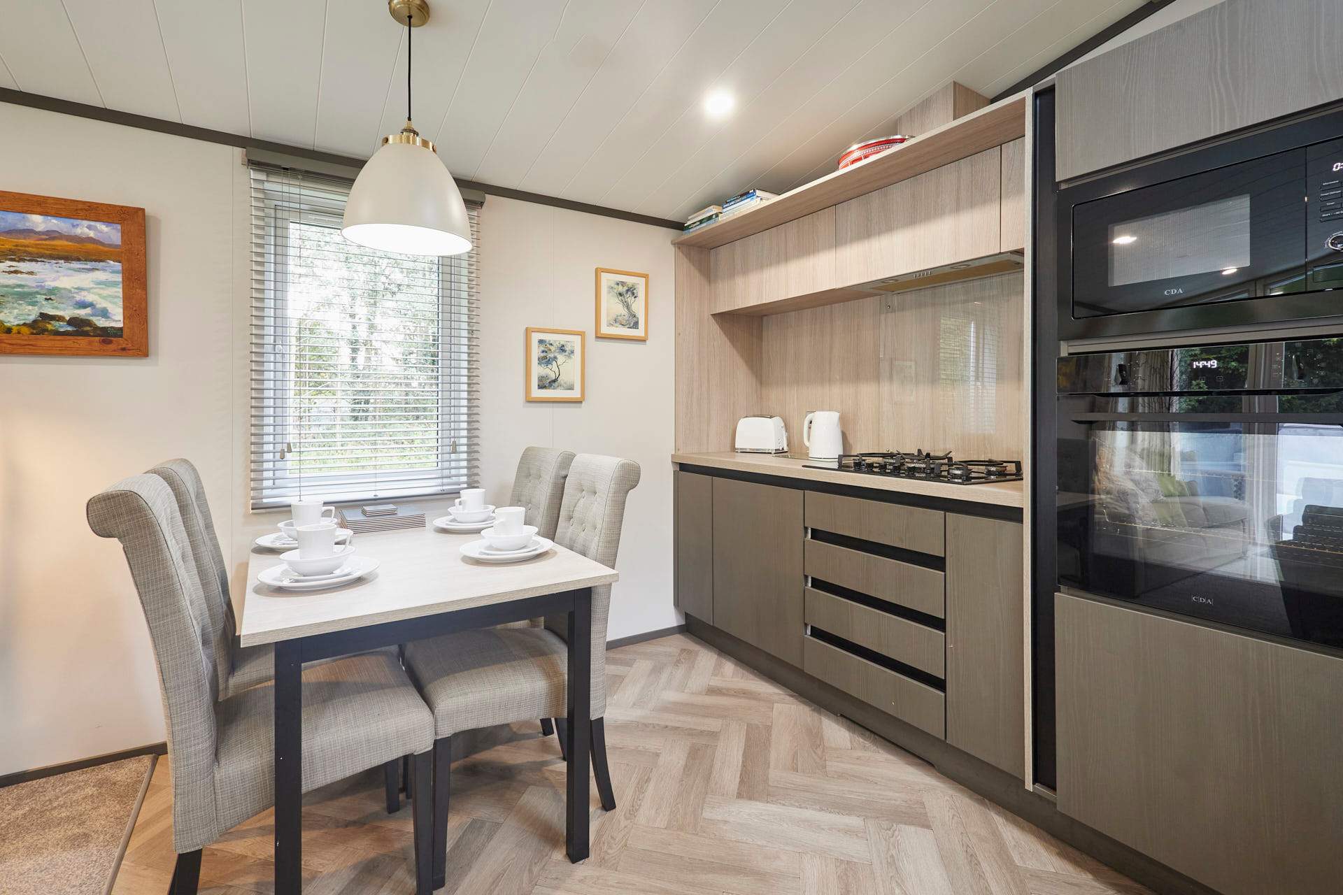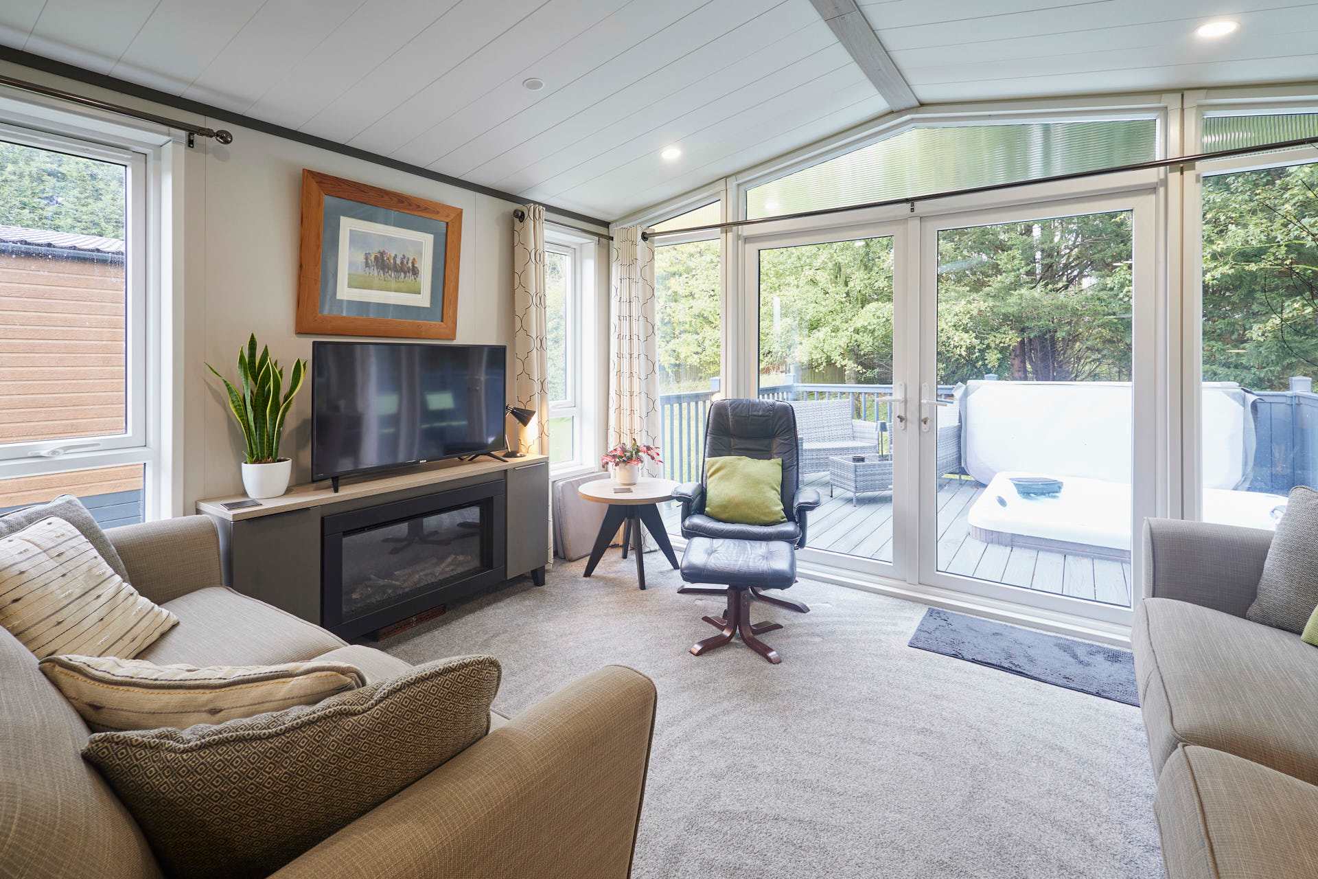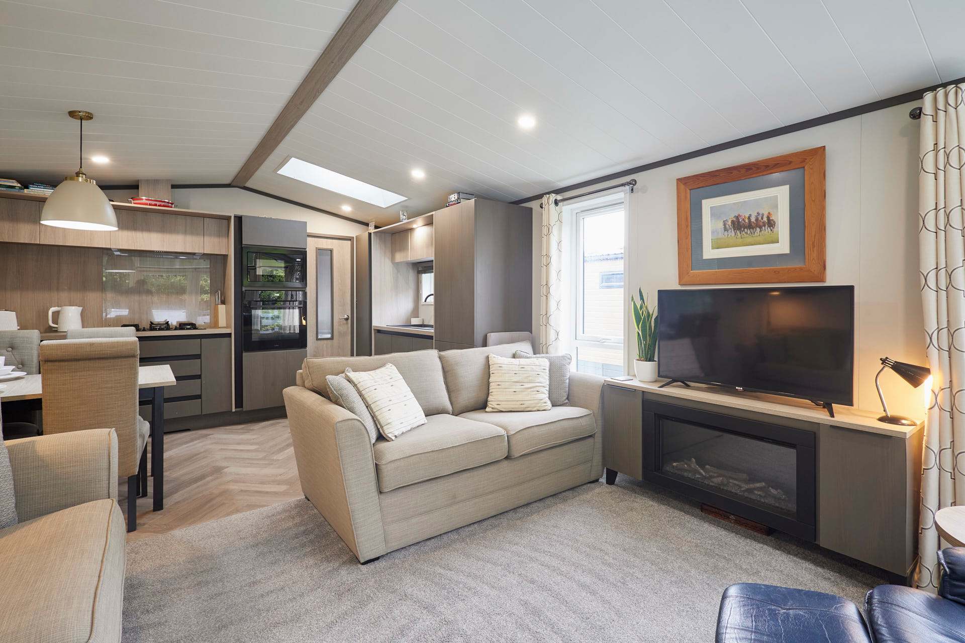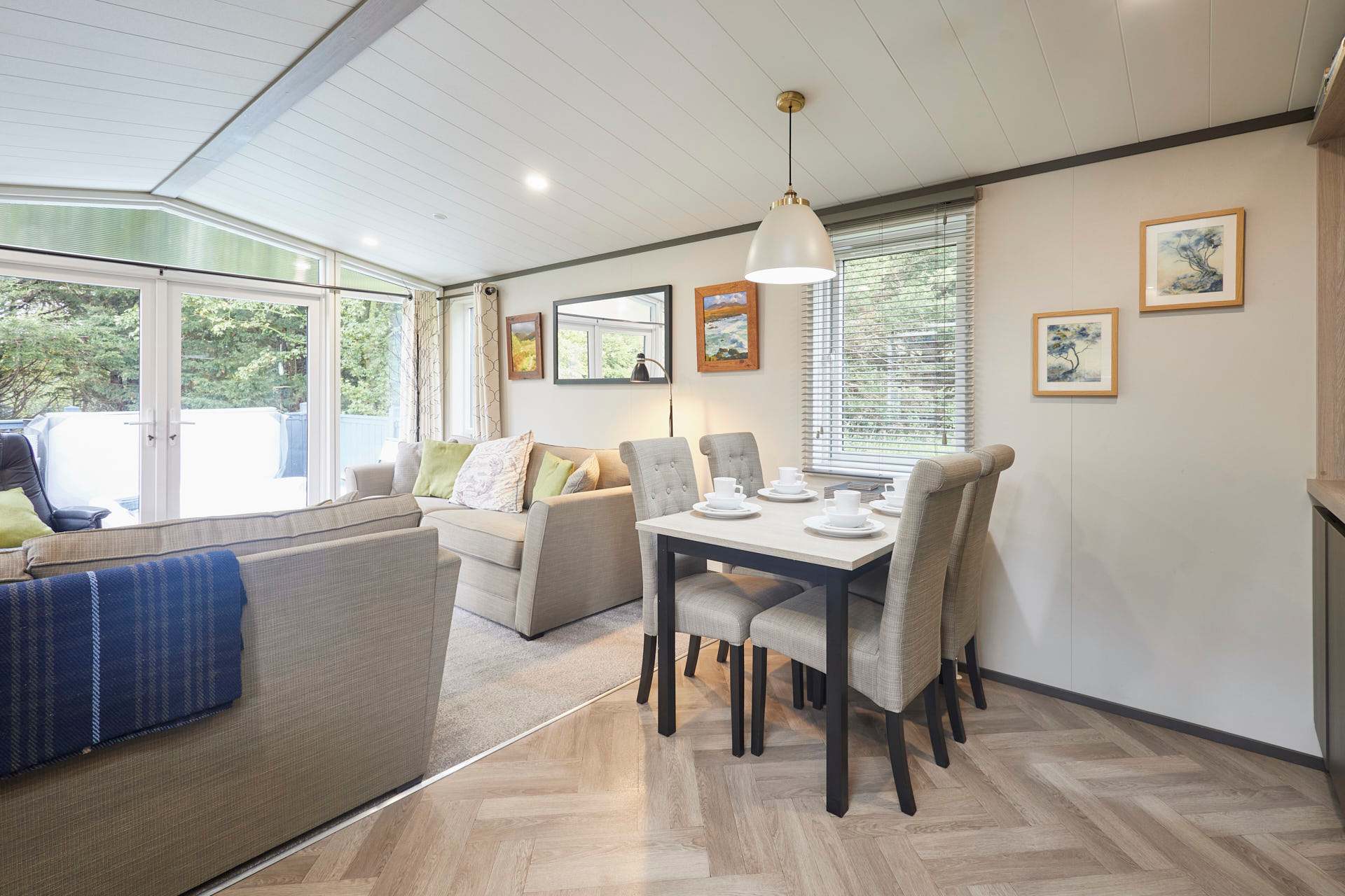 Tucked away in the peaceful surroundings of Allerthorpe Golf & Country Park, 23 Sandy Lane offers a stylish and tranquil countryside escape. This beautifully designed two bedroom, two bathroom lodge sleeps up to four guests and is perfect for couples, small families, or friends seeking a relaxing getaway in nature. The open plan living area is bright and contemporary, finished with soft neutral tones and elegant details that create a calm, welcoming atmosphere. The fully equipped kitchen features high quality appliances and everything you need for a self catered stay, while the dining area provides the perfect spot to enjoy meals together. The lounge area offers comfortable seating, a Smart TV, and large patio doors that open directly onto the private decking area. Step outside and discover your own private retreat complete with outdoor seating and a luxurious hot tub. Whether you are soaking under the stars or enjoying a quiet morning coffee, it is the ideal place to unwind and take in the peaceful park surroundings. The master bedroom features a plush double bed and an en suite shower room, while the second bedroom offers two single beds, making it perfect for families or friends. A second bathroom adds extra convenience, ensuring a comfortable stay for all guests. 23 Sandy Lane is also pet friendly, so your four legged companions are welcome to join you on your stay. With beautiful walking routes, golf, and tranquil lakes right on your doorstep, this lodge is the perfect balance of comfort, nature, and relaxation.