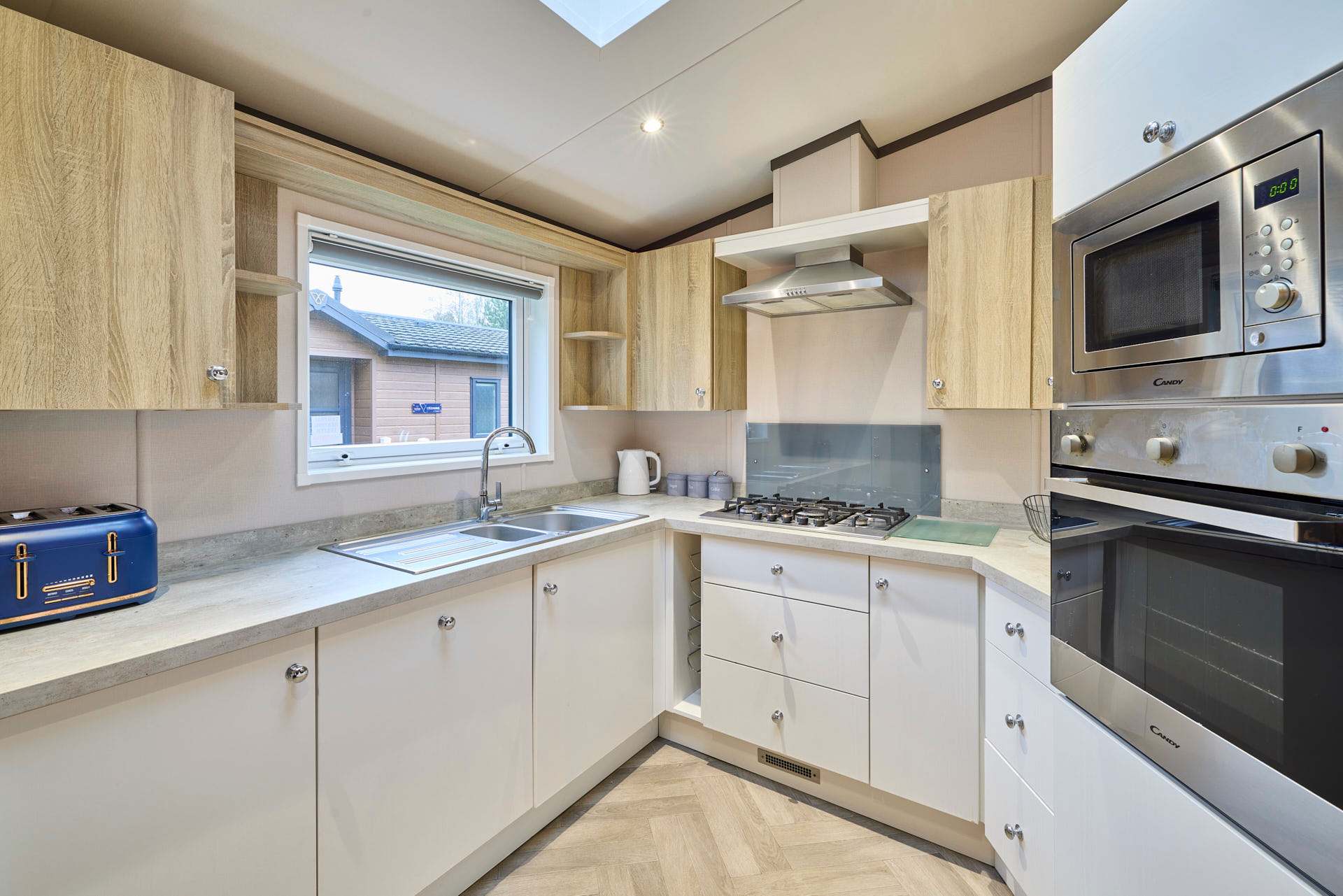 Oakwood Lodge is a beautifully designed countryside retreat offering comfort, space, and a peaceful setting for a relaxing stay. The lodge features two spacious bedrooms, each thoughtfully furnished with comfortable beds, soft pillows, and high-quality linens to ensure a restful night’s sleep. Generous wardrobe and bedside storage makes it easy to settle in, whether you’re visiting for a short break or a longer stay. The lodge includes two modern bathrooms, finished with sleek, contemporary fixtures. One bathroom features a walk-in shower, while the other includes a bath, providing flexibility and convenience for couples, families, or small groups. Fresh towels and essential toiletries are provided to help make your stay as comfortable and stress-free as possible. The bright open-plan living area is warm and inviting, designed for both relaxation and socialising. The cozy lounge offers comfortable seating, ideal for unwinding after a day of exploring or enjoying a quiet evening in. A dining area with a generous table provides space for shared meals, while the fully equipped kitchen includes modern appliances, ample worktop space, and all the cookware and utensils needed for everything from quick snacks to home-cooked meals. Large windows throughout Oakwood Lodge allow natural light to flood the space and showcase peaceful countryside views, creating a calm and welcoming atmosphere. Whether enjoying a morning coffee or relaxing in the evening, the lodge offers a true home-from-home experience. Conveniently located near local shops, scenic walking routes, and transport links to York and the Yorkshire Wolds, Oakwood Lodge is an ideal base for a memorable countryside escape.