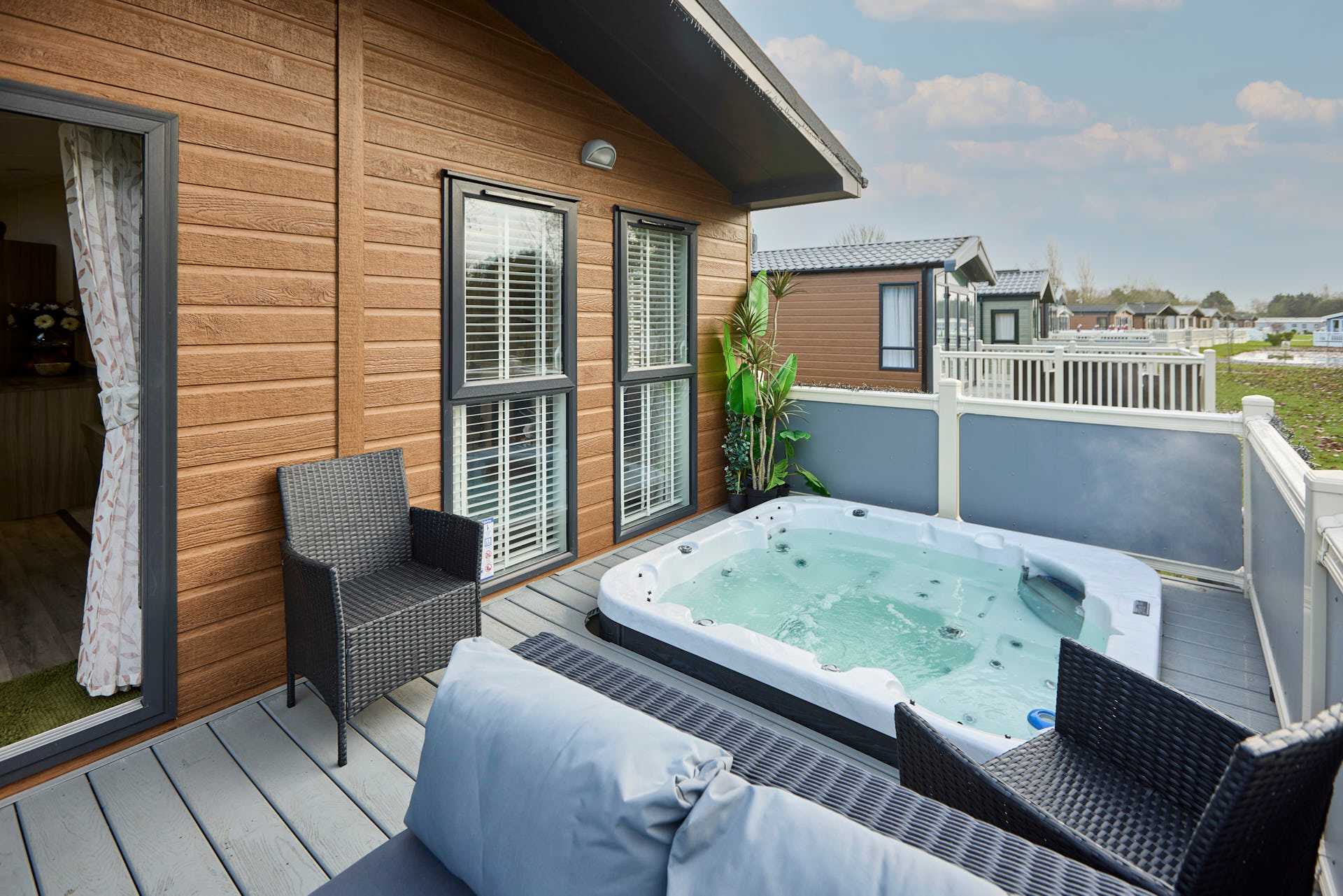 Guests will have access to their lodge from 4pm on their arrival date. Our on-site team will be on hand to support your check in and ensure you have everything you need for your stay. Please note that there is one parking space to the side of each lodge, this is to be used by one vehicle only. All other vehicles can drive to the lodge to drop-off luggage but must park their car in the main car park for the duration of their stay. There is strictly no parking on the grass at any times. Quiet times are between the hours of 10pm and 7am and we politely ask that you respect your neighbours when using the outdoor facilities during these hours to ensure everyone has an enjoyable time when staying with us. Please note that the park is Dog Friendly but we ask that all dogs are kept on a lead at all times when on the park site. All guests can make use of the additional facilities at the Lodge Park. These include JJ's Bar & Grill, a Take-away Pizza Shack, 9 Hole Golf Course, Driving Range and Children's Play Park