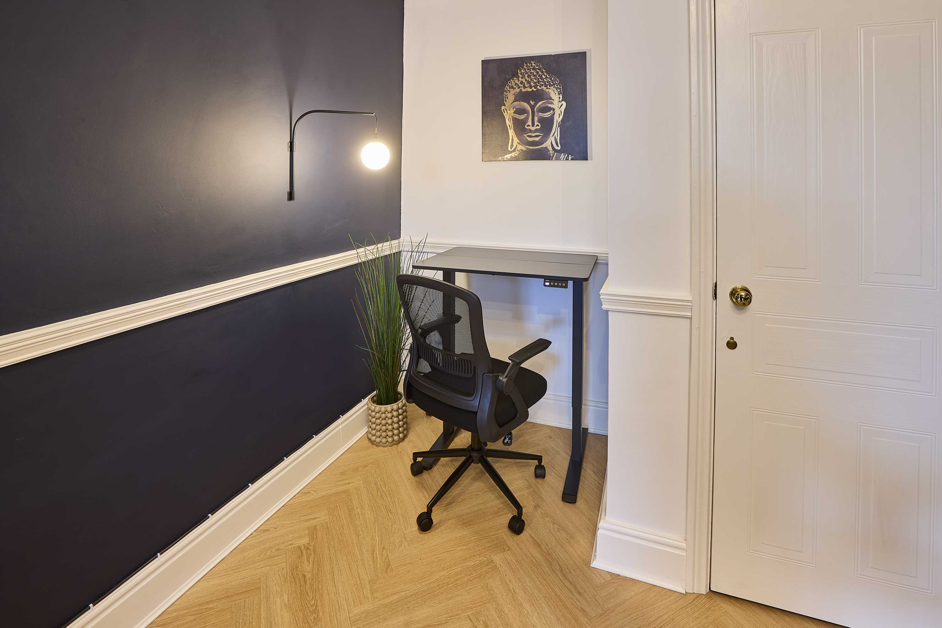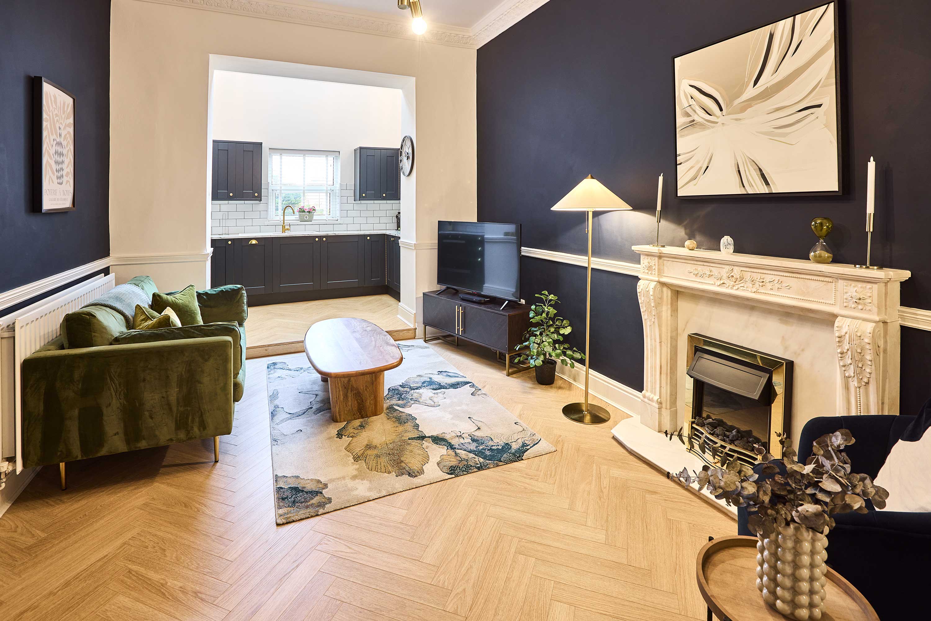 The expertly designed Zetland Hideaway has a homely and welcoming feel throughout. After a busy day at the beach, nothing beats putting your feet up and you can do just that here. Retreat to the velvet sofa and turn on the large flat screen TV to keep up with your favourite shows on Sky. If you need to carry out some work during your stay, make the most of the desk space on offer. The apartment has a fully equipped kitchen, located to the rear of the living room. Stylish and sophisticated, the kitchen features dark blue cabinets and white metro tiles. With modern appliances and cookware, you can prepare home cooked meals during your stay. Head to the bedroom and you’ll find a tranquil space. Boasting a comfortable king size bed with premium bedding, every care has been taken to ensure you enjoy your sleep at Zetland Hideaway. The bathroom includes a walk-in shower, WC and wash basin for your convenience. If you are looking for a stylish stay, in a wonderful historic building, The Zetland Apartment is your perfect choice.