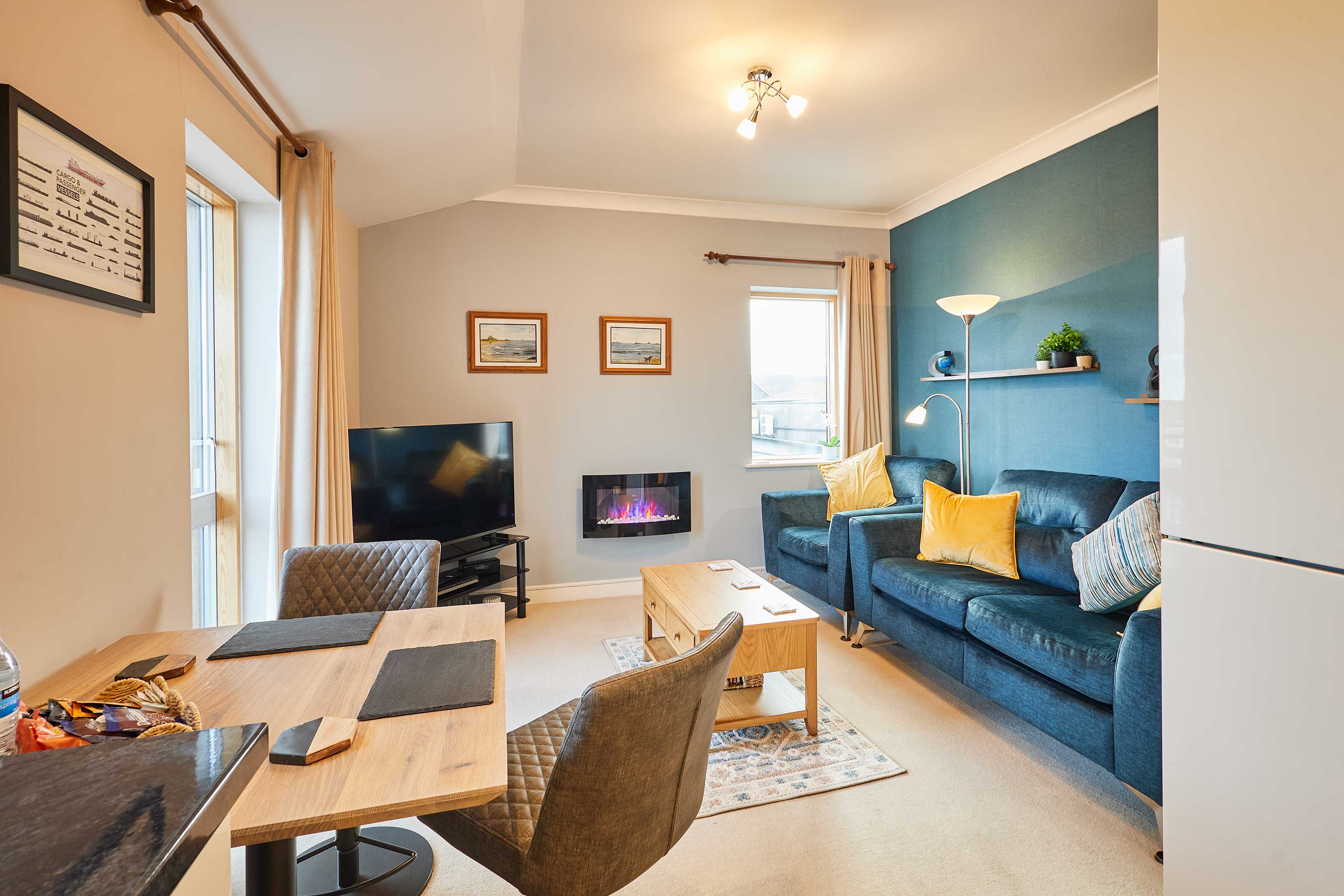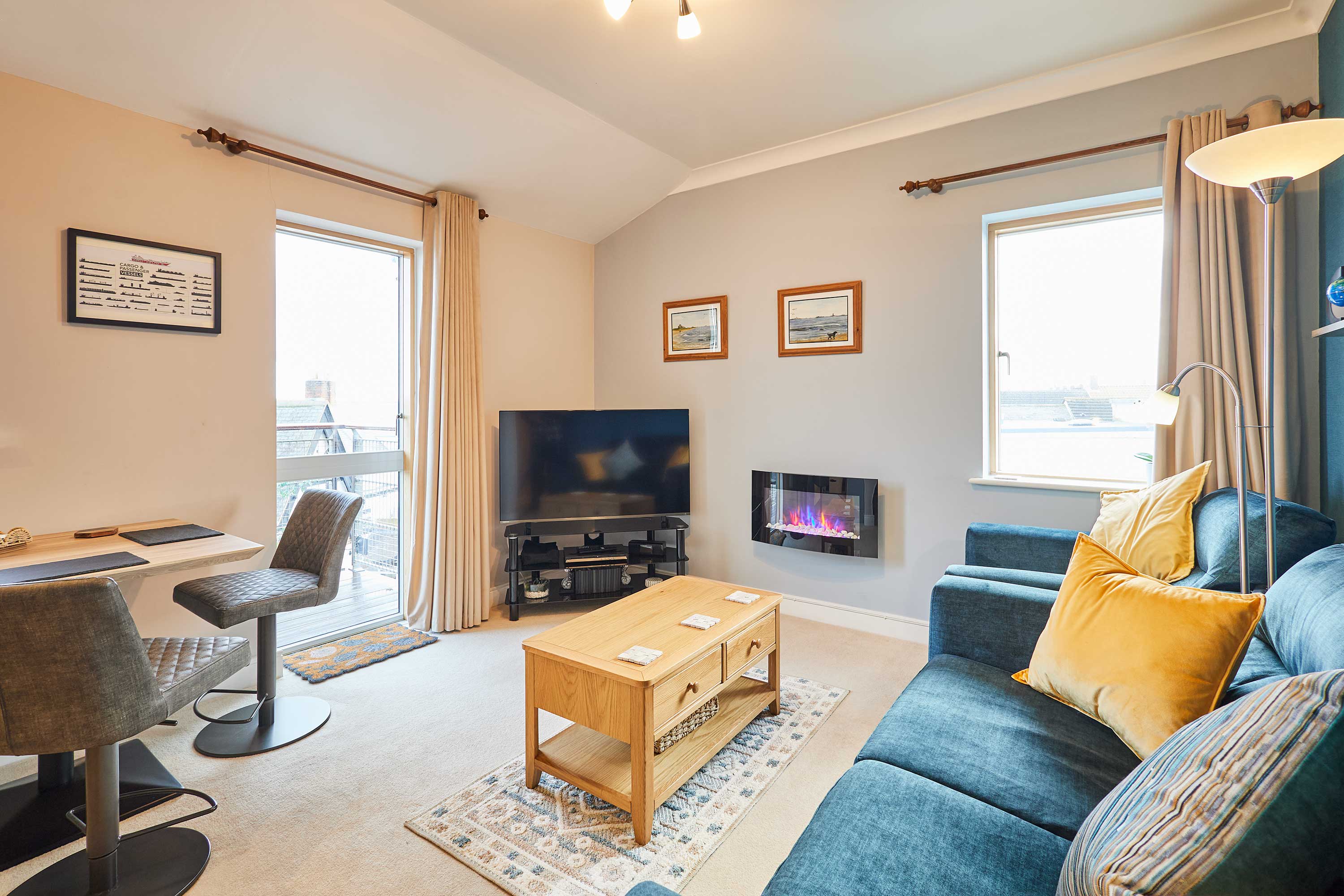 Welcome to your Seahouses escape, a cosy coastal retreat perfectly positioned just moments from the sea. Blending comfort, charm, and an unbeatable location, this inviting hideaway offers the ideal base for a relaxing break or an adventure along Northumberland’s stunning coastline. Whether you’re planning a romantic getaway, a peaceful solo stay, or a trip filled with coastal walks and boat excursions, you’ll find everything you need for a memorable visit right here. Inside, the property offers a comfortable and thoughtfully designed layout, perfect for unwinding after a day of exploring. The living area provides a welcoming space with a cosy sofa and a dining nook where you can relax, read, plan your next adventure, or enjoy a quiet meal. The compact yet well-equipped kitchen includes everything you need for simple breakfasts or evening snacks, giving you the freedom to eat in whenever you like. From here, doors open onto a private balcony where you can sit with a coffee or simply take in the fresh sea air whilst enjoying a partial sea view. The bedroom features a comfortable king-size bed dressed in soft linens to ensure a restful night’s sleep, whether you’re staying for a short break or a longer getaway. The modern bathroom offers a refreshing shower and all essential amenities, making your stay smooth and stress-free. Fresh towels and bedding are provided, ensuring you can settle in quickly and feel at home from the moment you arrive. Perfectly located and beautifully simple, The Shipshape is designed to offer comfort, convenience, and coastal charm in equal measure. Whether you’re exploring Northumberland's dramatic landscapes or simply escaping to relax by the sea, this delightful Seahouses apartment provides the ideal setting to unwind, recharge, and experience the very best of coastal living.