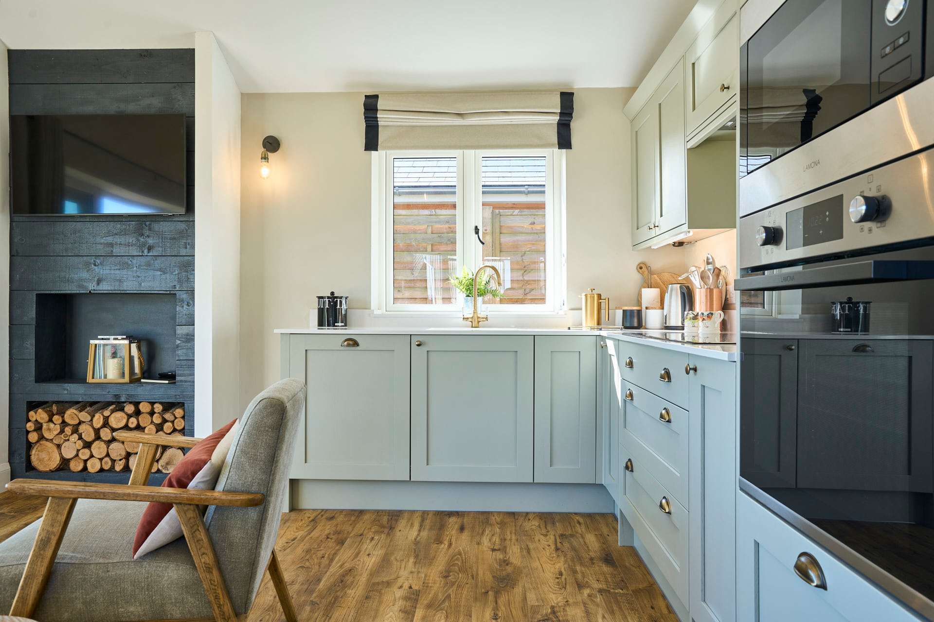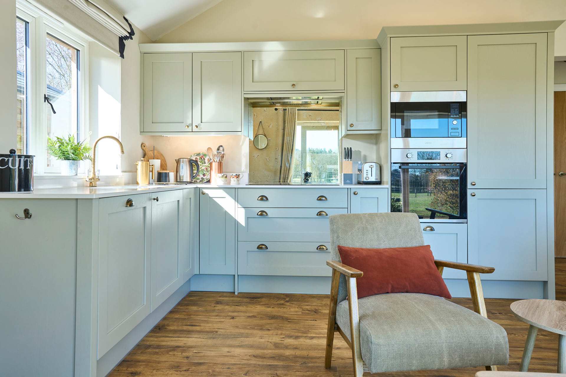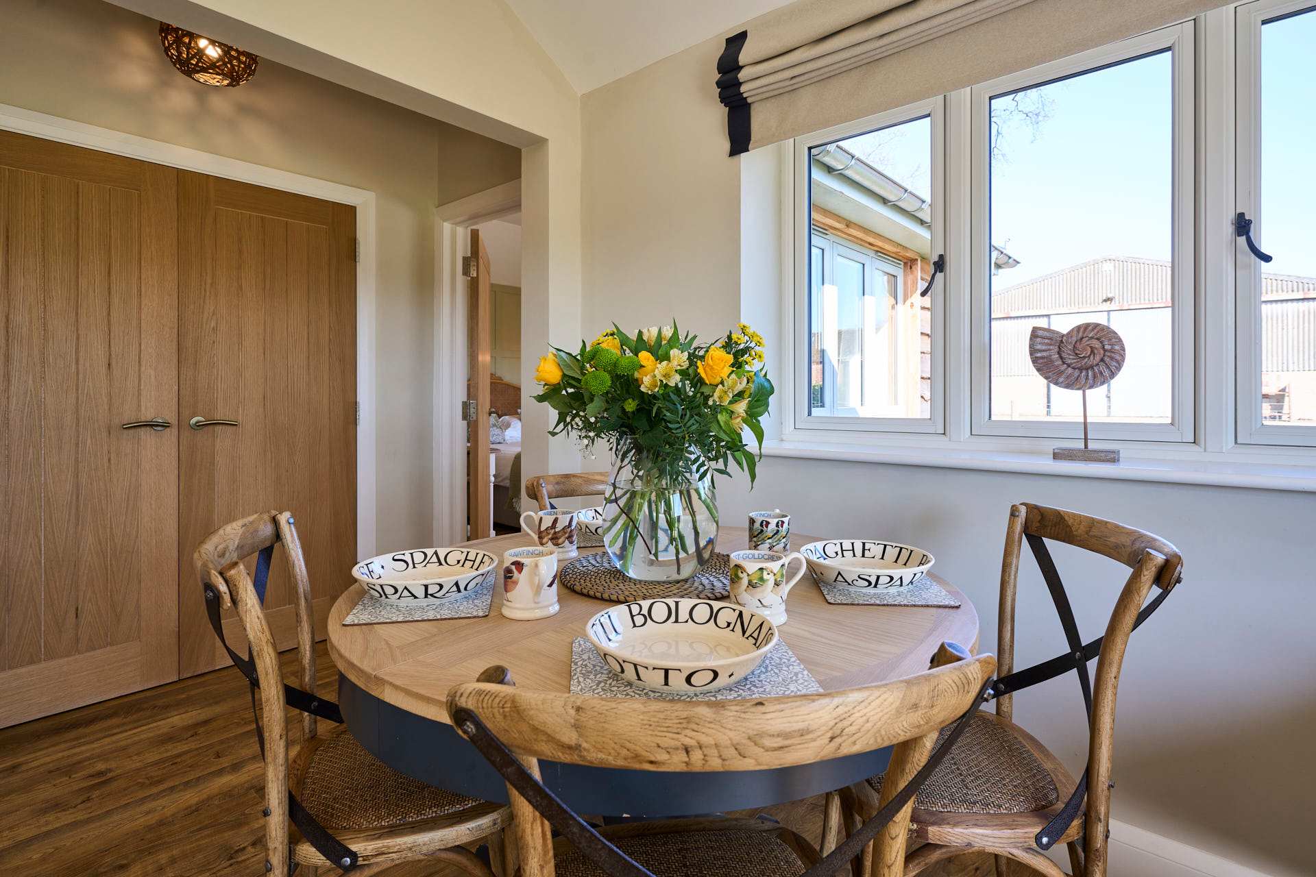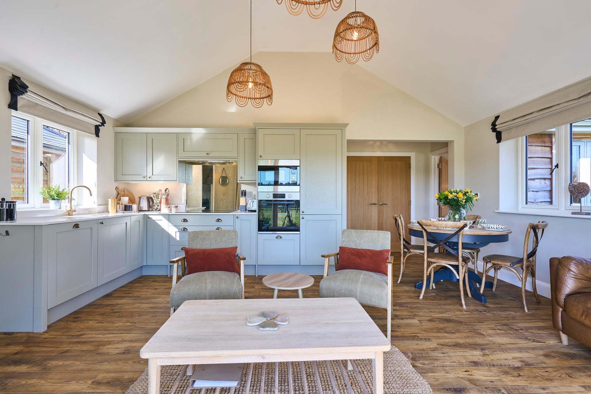 Escape to this beautifully designed 2-bedroom, 2-bathroom retreat, where the modern and chic style meets the calm of the countryside. Flooded with natural light, the open-plan living space is both airy and inviting, featuring elegant furnishings, soft neutral tones, and large glass doors that open out to picturesque views and a private outdoor seating area. The contemporary kitchen is fully equipped with modern appliances and flows seamlessly into a stylish dining area, making it perfect for relaxed meals or entertaining. The cosy lounge provides a comfortable spot to unwind, whether you're enjoying a quiet evening or planning the next day’s adventures whilst admiring the beautiful landscape beyond. Each bedroom has been thoughtfully styled to create a peaceful haven, complete with plush bedding, warm textures, and plenty of storage. The two modern bathrooms are finished to a high standard, offering both convenience and a touch of luxury. Set in a tranquil location, this property is ideal for couples, families, or friends looking to enjoy a relaxing break with all the comforts of a beautifully curated home.