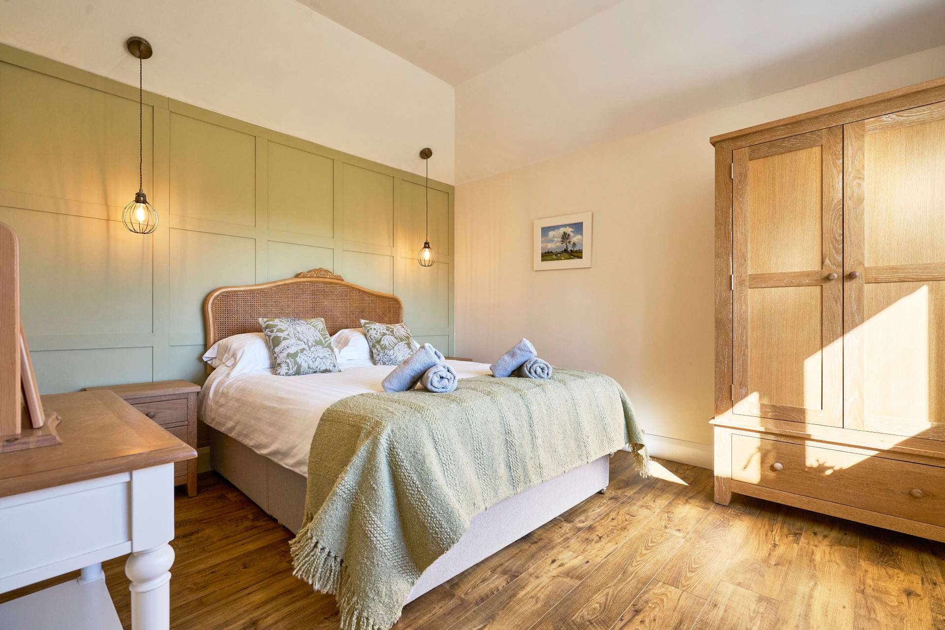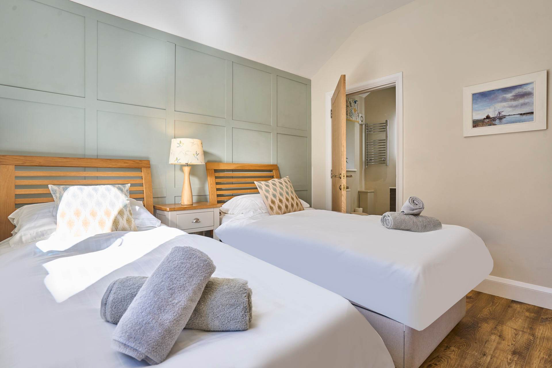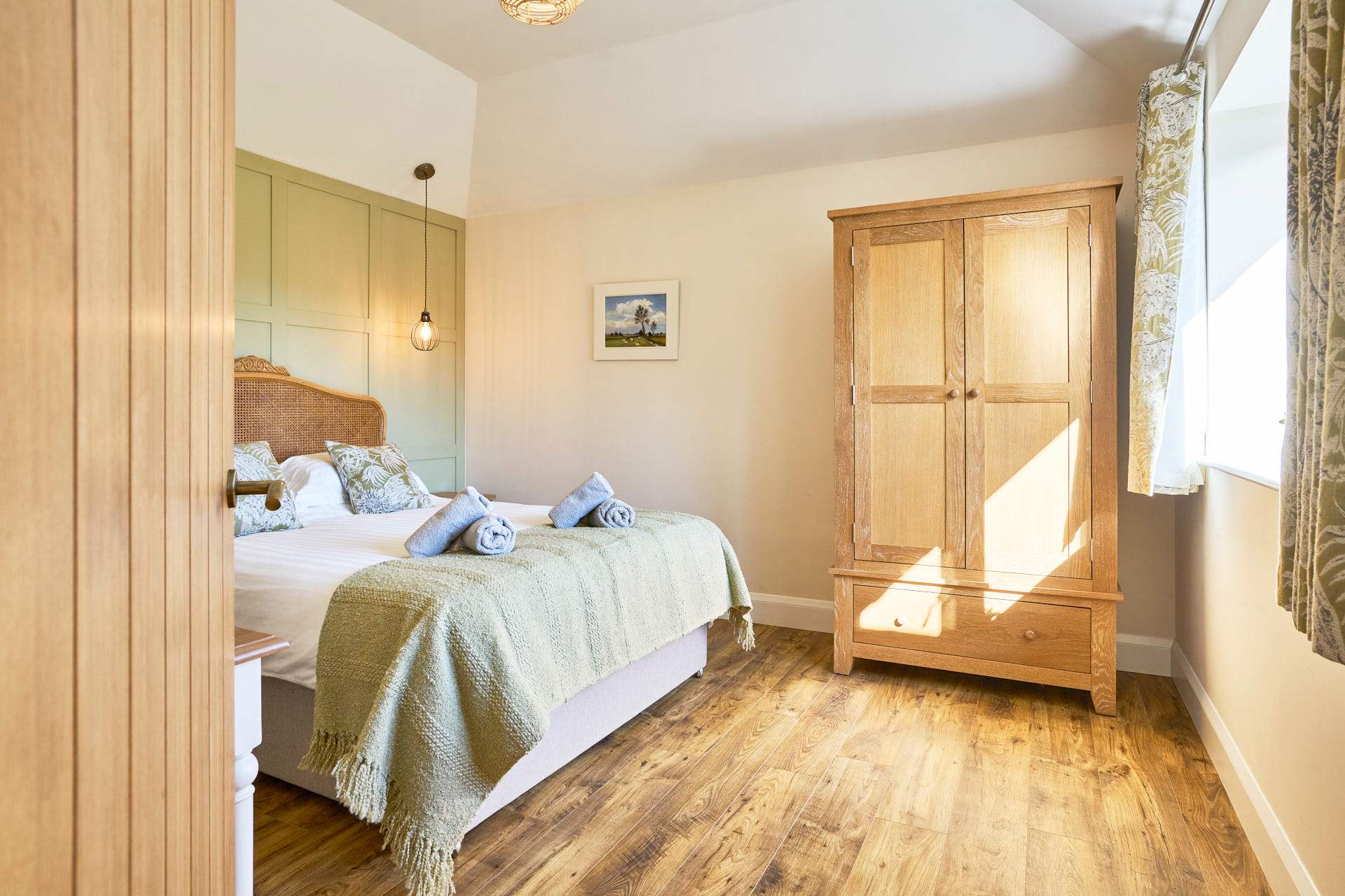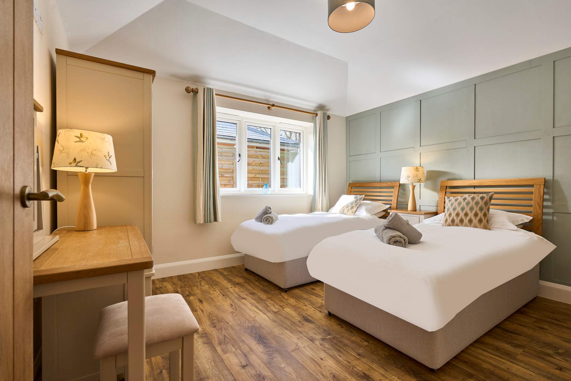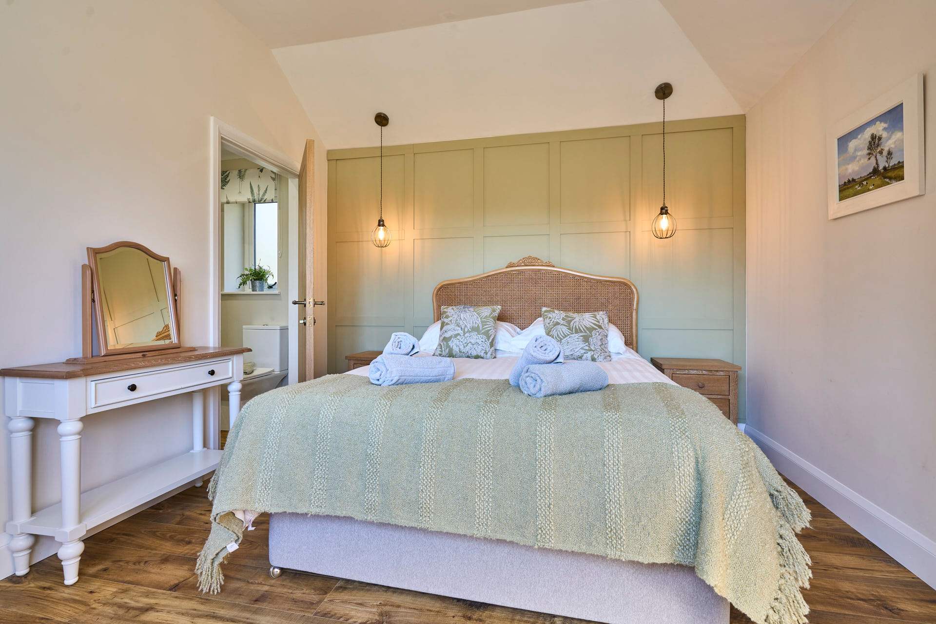 Escape to this beautifully designed 2-bedroom, 2-bathroom retreat, where the modern and chic style meets the calm of the countryside. Flooded with natural light, the open-plan living space is both airy and inviting, featuring elegant furnishings, soft neutral tones, and large glass doors that open out to picturesque views and a private outdoor seating area. The contemporary kitchen is fully equipped with modern appliances and flows seamlessly into a stylish dining area, making it perfect for relaxed meals or entertaining. The cosy lounge provides a comfortable spot to unwind, whether you're enjoying a quiet evening or planning the next day’s adventures whilst admiring the beautiful landscape beyond. Each bedroom has been thoughtfully styled to create a peaceful haven, complete with plush bedding, warm textures, and plenty of storage. The two modern bathrooms are finished to a high standard, offering both convenience and a touch of luxury. Set in a tranquil location, this property is ideal for couples, families, or friends looking to enjoy a relaxing break with all the comforts of a beautifully curated home.