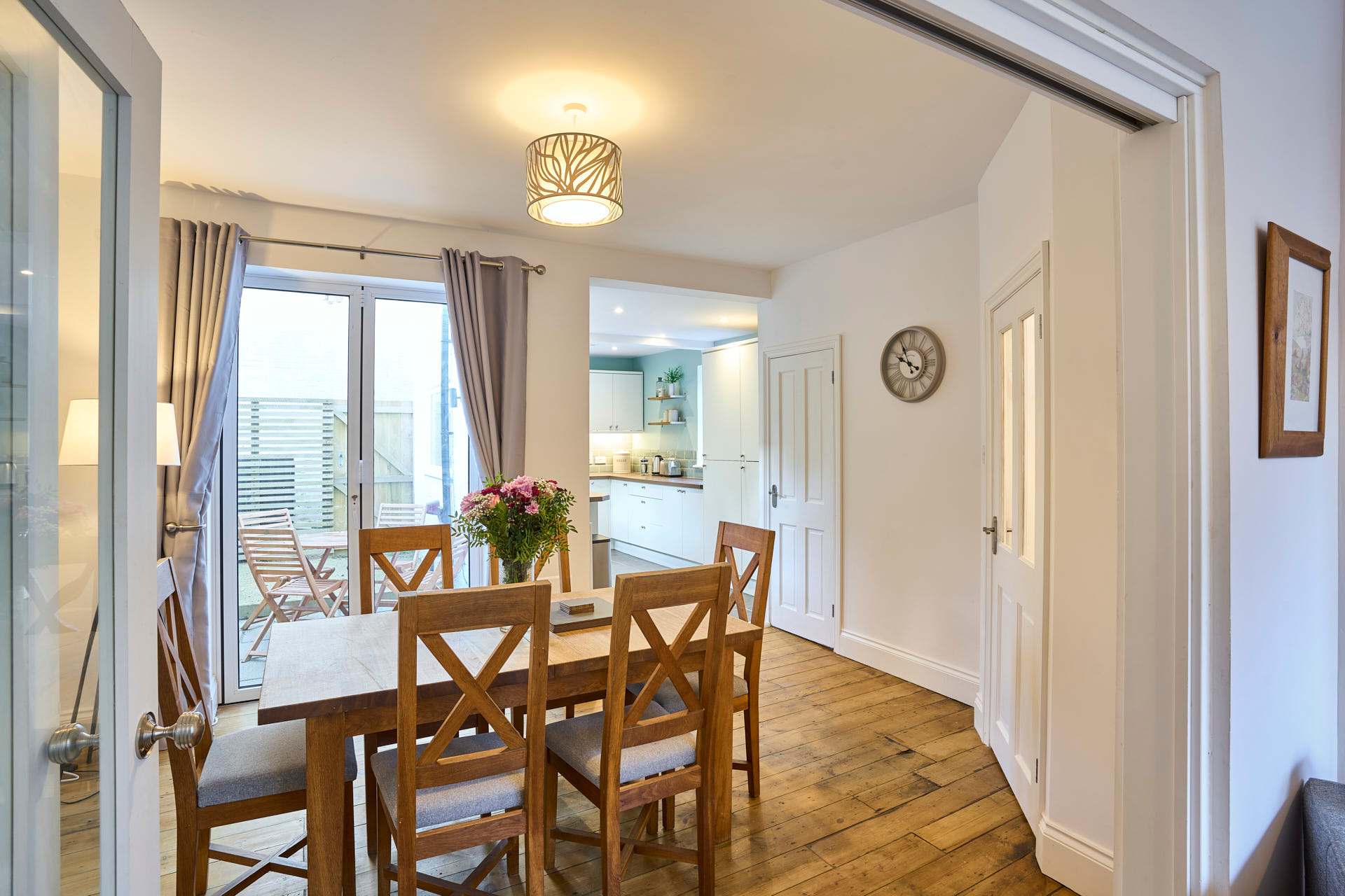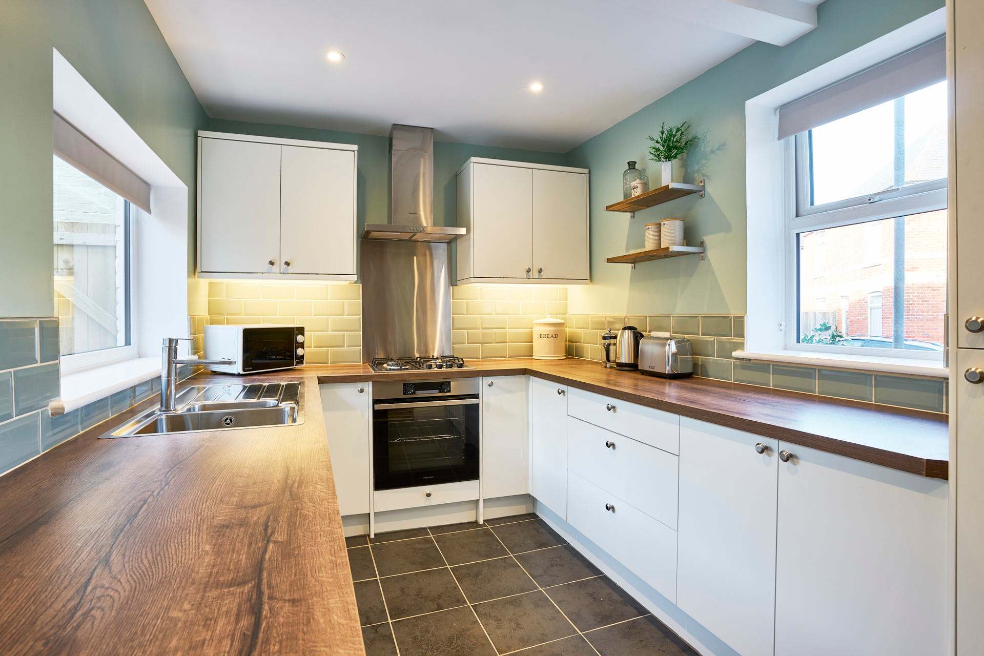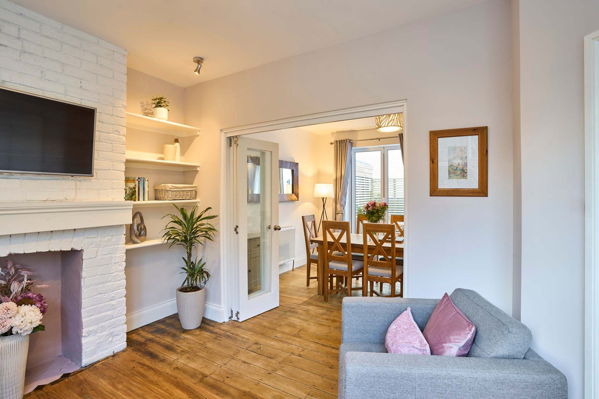 A beautifully furnished holiday home where comfort meets effortless style, Prince of Wales Road is a beautifully furnished holiday home. Sleeping up to six guests across three spacious bedrooms, this stunning property is the perfect setting for unforgettable getaways with family or friends. The property looks directly on to the Rodwell Trail which is an old railway line that is now a nature trail leading to Sandsfoot beach in one direction and goes to Weymouth town centre the other way. This makes Prince of Wales Road ideal for people with dogs and it is generally a nice place to walk in the day. Step through the front door into a bright, welcoming hallway that immediately sets a calm and inviting tone. The cosy living room features light-coloured walls, high ceilings, and a sumptuous sofa, plus armchair - the ideal spot to unwind with a favourite show on the flat-screen TV after a day of exploring. At the heart of the home sits the beautifully styled kitchen, complete with rustic worktops and everything you’ll need for a seamless self-catering stay. Whether you’re preparing a leisurely breakfast or a celebratory dinner, cooking here feels like a joy rather than a chore. Upstairs, three thoughtfully designed bedrooms provide a peaceful retreat for every guest. Two elegant double rooms feature plush bedding and premium linens, while the third bedroom, with its twin single beds, is perfect for children or teenagers. Each space embraces a soothing neutral palette, creating a sense of luxury and tranquillity. The contemporary bathroom invites pure relaxation with its dark, spa-like tiles. Sink into the deep bathtub with a good book, or refresh in the separate walk-in shower - the choice is yours. A wash basin and WC complete this stylish space. Warm, welcoming, and brimming with character, Prince of Wales Road promises a stay filled with comfort, style, and lasting memories. Your holiday starts here.