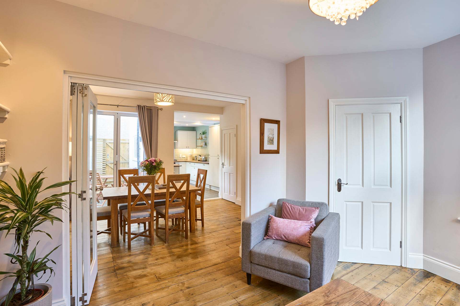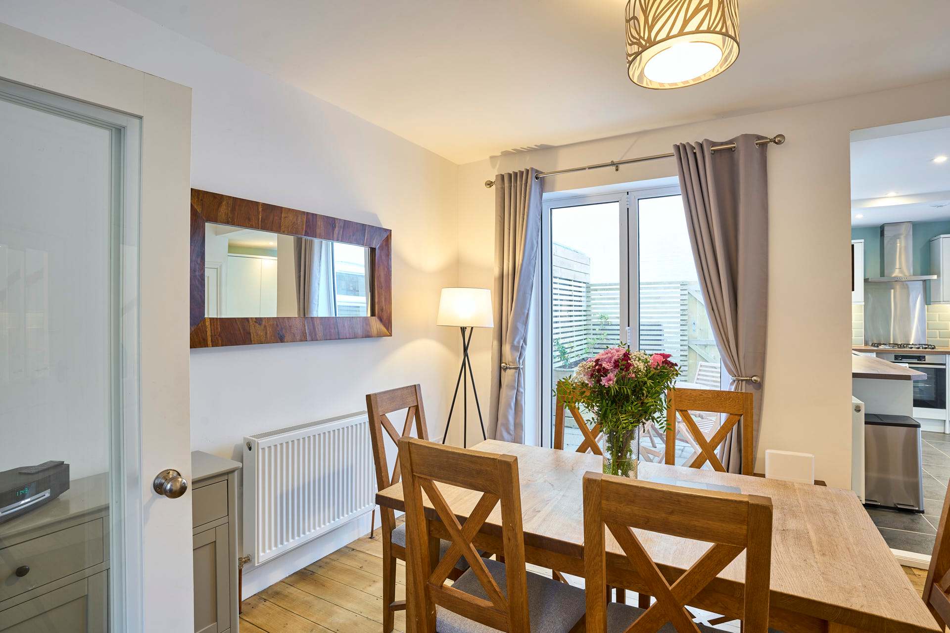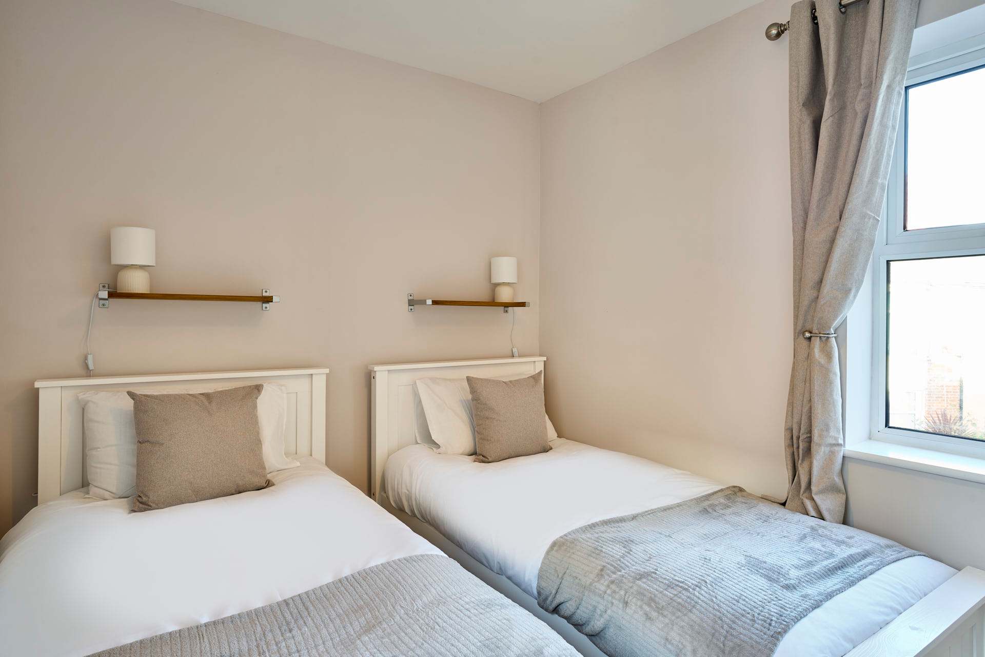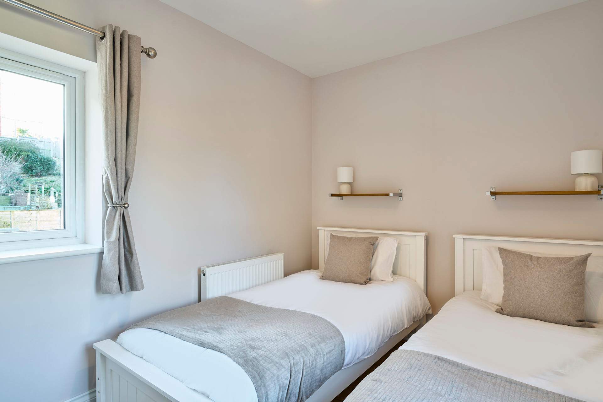 A beautifully furnished holiday home where comfort meets effortless style, Prince of Wales Road is a beautifully furnished holiday home. Sleeping up to six guests across three spacious bedrooms, this stunning property is the perfect setting for unforgettable getaways with family or friends. The property looks directly on to the Rodwell Trail which is an old railway line that is now a nature trail leading to Sandsfoot beach in one direction and goes to Weymouth town centre the other way. This makes Prince of Wales Road ideal for people with dogs and it is generally a nice place to walk in the day. Step through the front door into a bright, welcoming hallway that immediately sets a calm and inviting tone. The cosy living room features light-coloured walls, high ceilings, and a sumptuous sofa, plus armchair - the ideal spot to unwind with a favourite show on the flat-screen TV after a day of exploring. At the heart of the home sits the beautifully styled kitchen, complete with rustic worktops and everything you’ll need for a seamless self-catering stay. Whether you’re preparing a leisurely breakfast or a celebratory dinner, cooking here feels like a joy rather than a chore. Upstairs, three thoughtfully designed bedrooms provide a peaceful retreat for every guest. Two elegant double rooms feature plush bedding and premium linens, while the third bedroom, with its twin single beds, is perfect for children or teenagers. Each space embraces a soothing neutral palette, creating a sense of luxury and tranquillity. The contemporary bathroom invites pure relaxation with its dark, spa-like tiles. Sink into the deep bathtub with a good book, or refresh in the separate walk-in shower - the choice is yours. A wash basin and WC complete this stylish space. Warm, welcoming, and brimming with character, Prince of Wales Road promises a stay filled with comfort, style, and lasting memories. Your holiday starts here.
