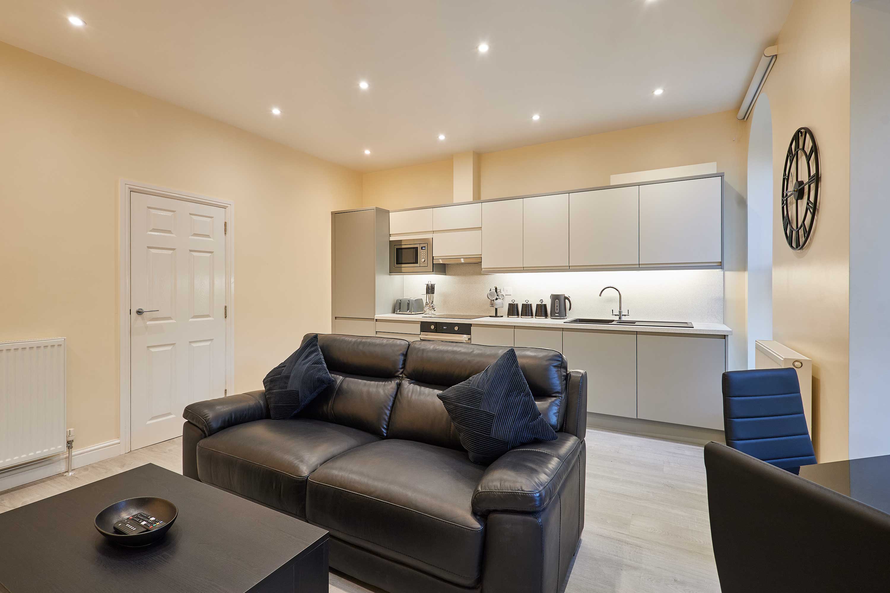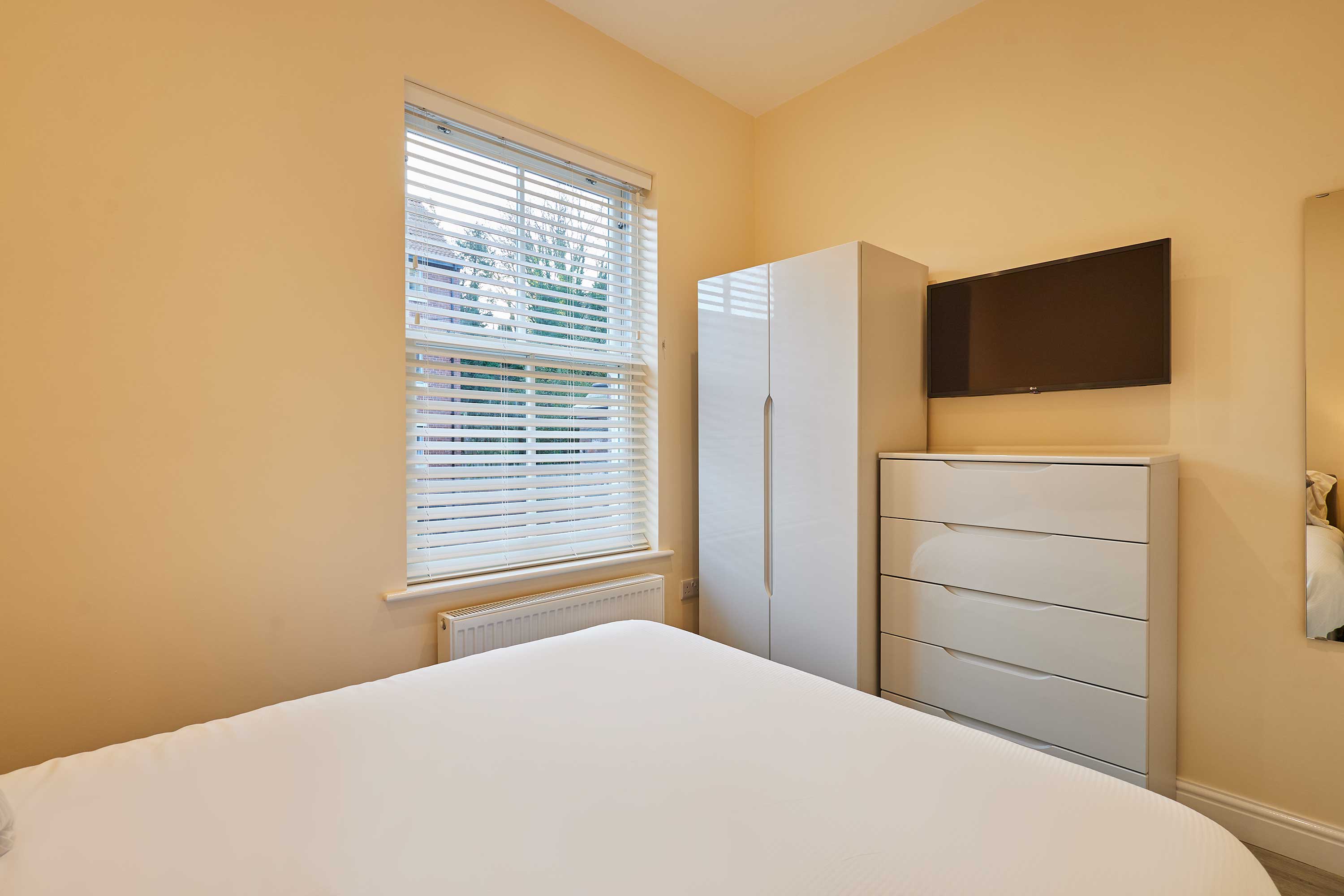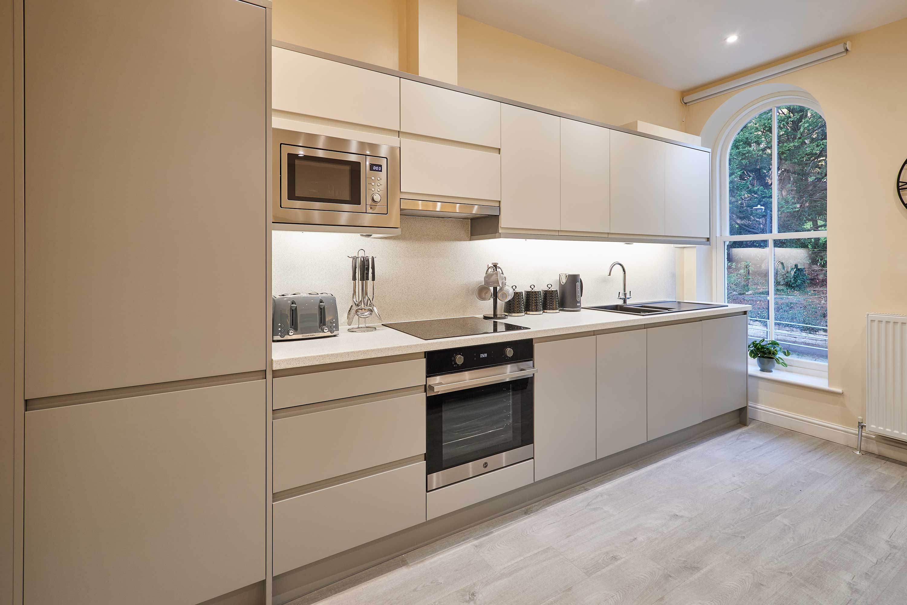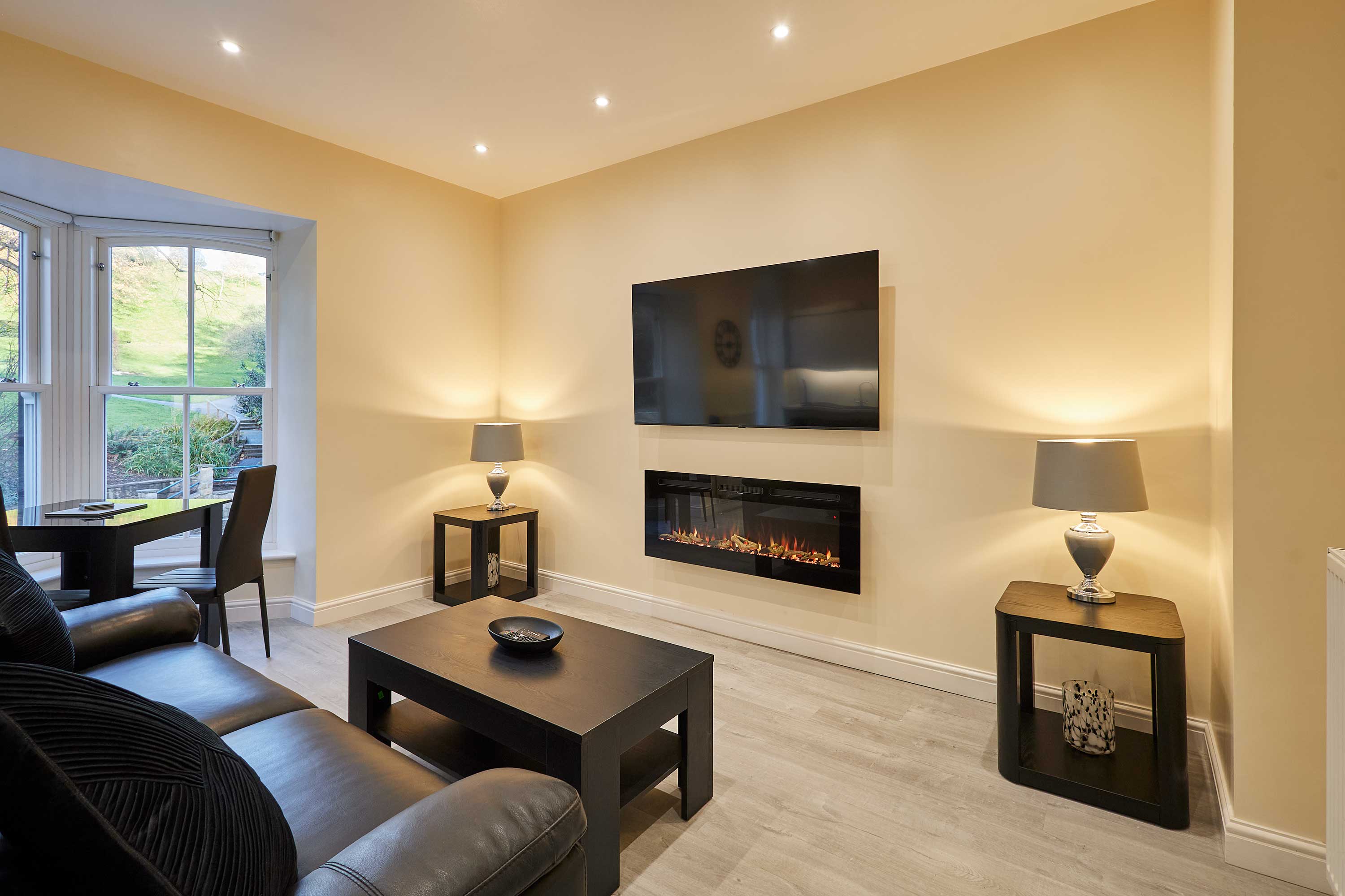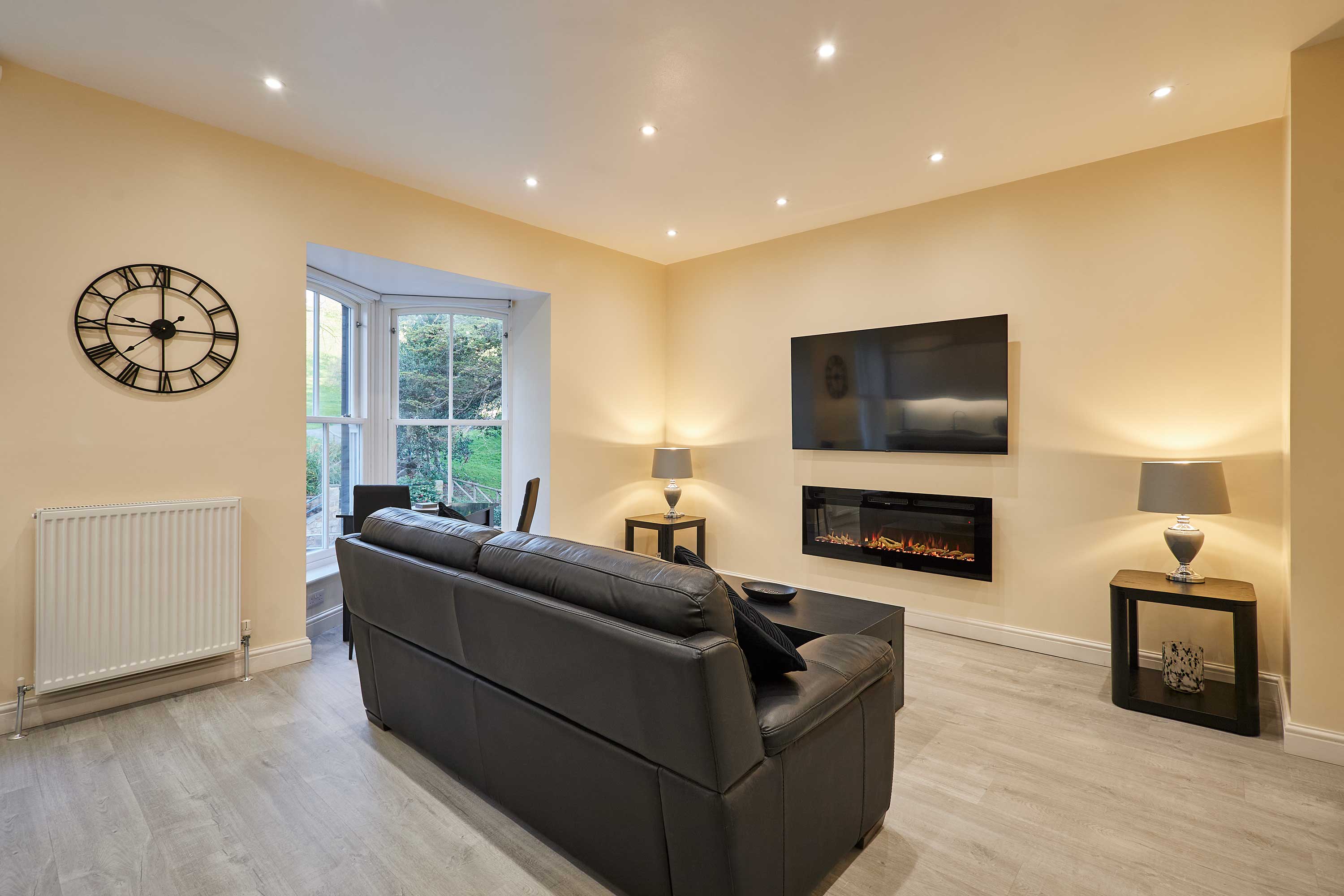 Where contemporary style meets coastal charm, this beautifully designed apartment offers a refined and relaxing base for your getaway. Step inside and be greeted by a bright and spacious open-plan living, dining, and kitchen area. High ceilings and an abundance of natural light create an airy atmosphere, while serene views of Pannett Park just across the road add an extra touch of calm. Sink into the plush leather sofa with a favourite book or enjoy a cosy evening in front of the flat-screen TV. The modern light grey kitchen is perfectly paired with soft cream walls, creating a warm, inviting space for cooking and gathering. Fully equipped with high-quality appliances and all the essentials, it’s ideal for whipping up anything from a leisurely breakfast to a romantic dinner. Enjoy your meals around the wooden dining table, where the open sliding window invites in a gentle summer breeze. The tranquil bedroom offers a peaceful haven after a day exploring Whitby. With a comfortable double bed dressed in crisp linens, chic grey accents, and soft spotlights, this calm contemporary space promises restful nights. A wall-mounted TV and tall wardrobe add both convenience and understated elegance. The bathroom continues the theme of modern luxury, featuring marble-effect tiles, sleek silver fixtures, and a spacious walk-in shower. A glossy grey vanity cabinet provides stylish storage and completes the polished look. Whether you’re seeking a serene weekend escape or a longer coastal break, Ross’ View, First Floor, Apartment 3 combines modern comfort with timeless sophistication - the perfect home away from home in beautiful Whitby.