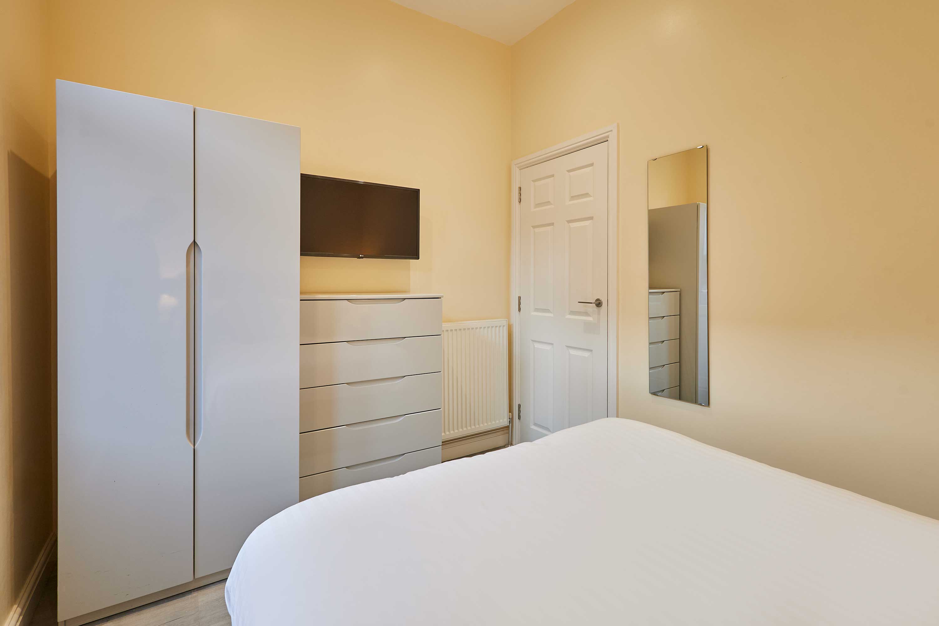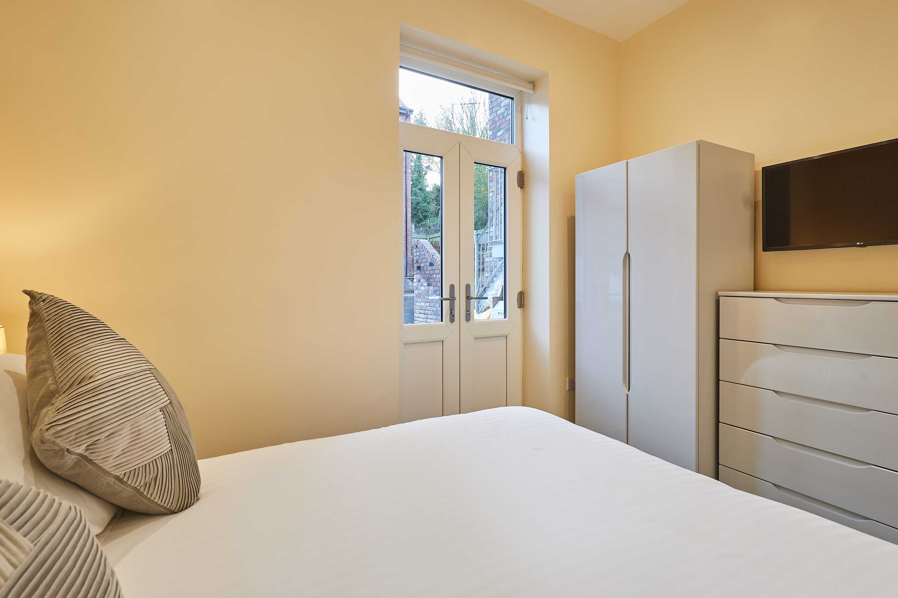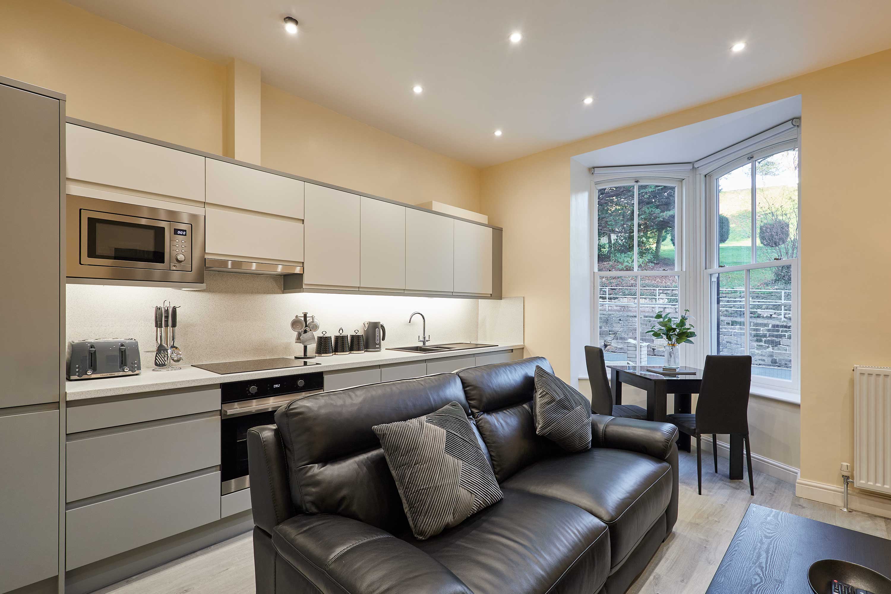 Blending contemporary elegance with coastal charm, this thoughtfully designed apartment offers a luxurious place to unwind during your stay. As you step inside, the spacious open-plan living, dining, and kitchen area sets the tone with its high ceilings, soft natural light, and calming views of Pannett Park just opposite. Relax on the comfortable leather sofa with a book, or settle in for a cosy evening watching the flat-screen TV. The sleek light grey kitchen pairs beautifully with the warm cream walls, creating an inviting space perfect for both simple breakfasts and intimate dinners. Well-equipped with quality appliances and everything you might need, it’s a pleasure to cook in. Gather around the wooden dining table, where the sliding window can be opened to welcome in a gentle summer breeze. The bedroom provides a peaceful retreat, featuring a plush double bed dressed in crisp linens and complemented by chic grey furnishings. Soft spotlights, modern white bedside tables, a wall-mounted TV, and a tall wardrobe all contribute to a space that is both calming and practical. The bathroom adds an extra touch of indulgence, showcasing marble-effect tiles, stylish silver fixtures, and a generous walk-in shower. A glossy grey vanity unit enhances both the look and functionality of the room. Whether you’re planning a short break or a longer coastal escape, Ross’ View, Second Floor, Apartment 4 offers a perfect blend of comfort, style, and relaxation - a true Whitby sanctuary to call your own.