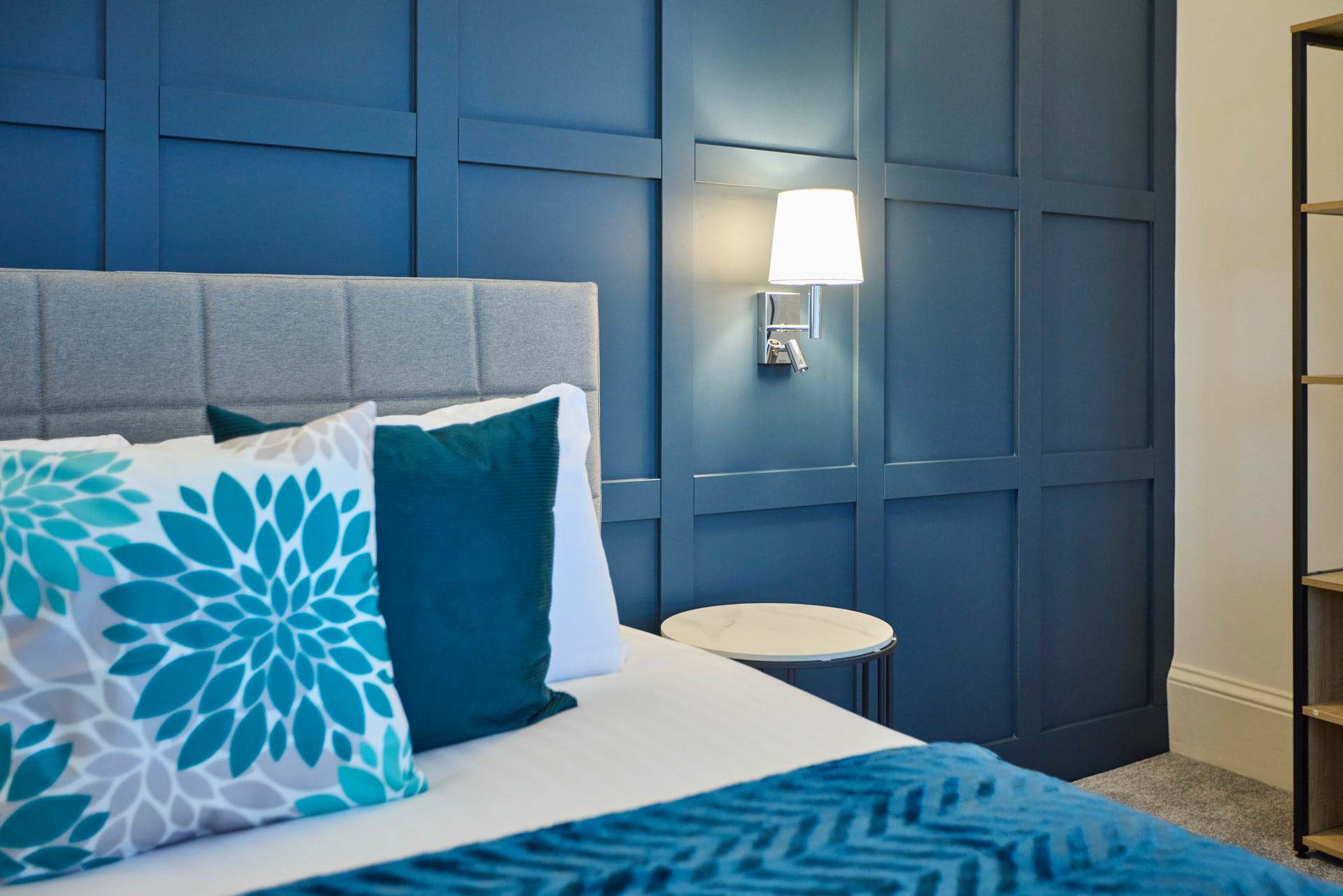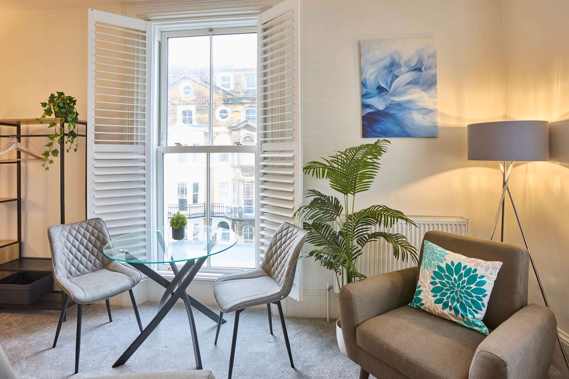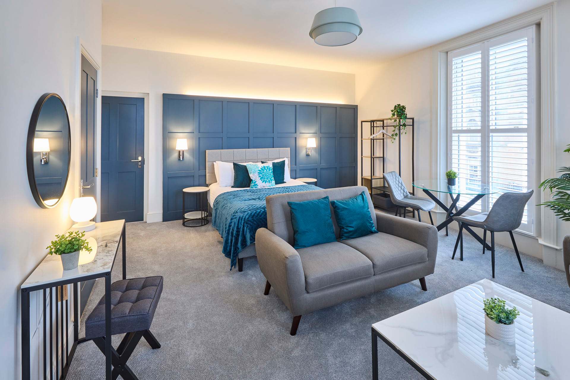 Apartment 5 at The Langley Apartments is a large, bright studio that has been newly refurbished to an exceptional standard. Surrounded by windows, the apartment is flooded with natural light, creating a fresh and airy atmosphere. Neutrally decorated throughout, it is enhanced by subtle coastal touches that bring a sense of calm and relaxation. A feature panel wall behind the bed adds character, while a wall-mounted flat-screen TV provides modern entertainment. The open-plan layout maximises space, making it perfect for unwinding after a day exploring Whitby and the local area. High-quality finishes and contemporary fixtures are evident throughout, from the sleek kitchenette equipped with modern appliances to the stylish bathroom, complete with a practical walk-in shower. Thoughtfully selected décor, inspired by the nearby coastline, adds warmth and charm without compromising the clean, modern aesthetic. Apartment 12 offers a serene and spacious retreat, combining high-standard refurbishment with timeless coastal appeal.