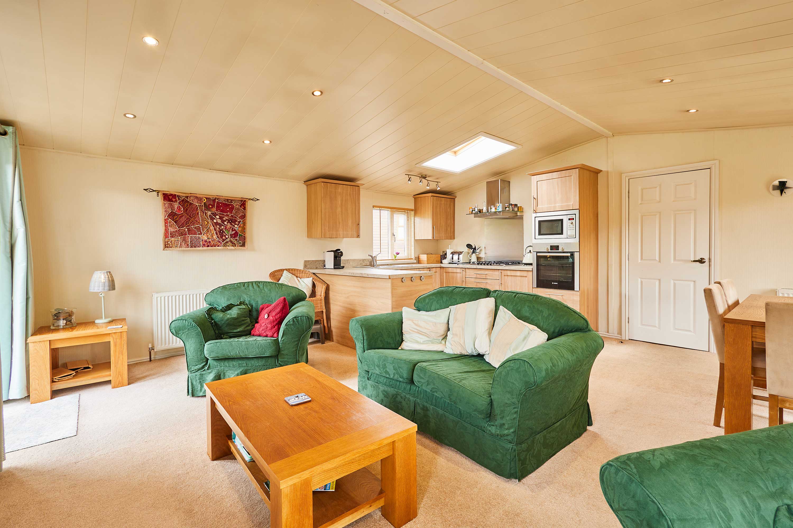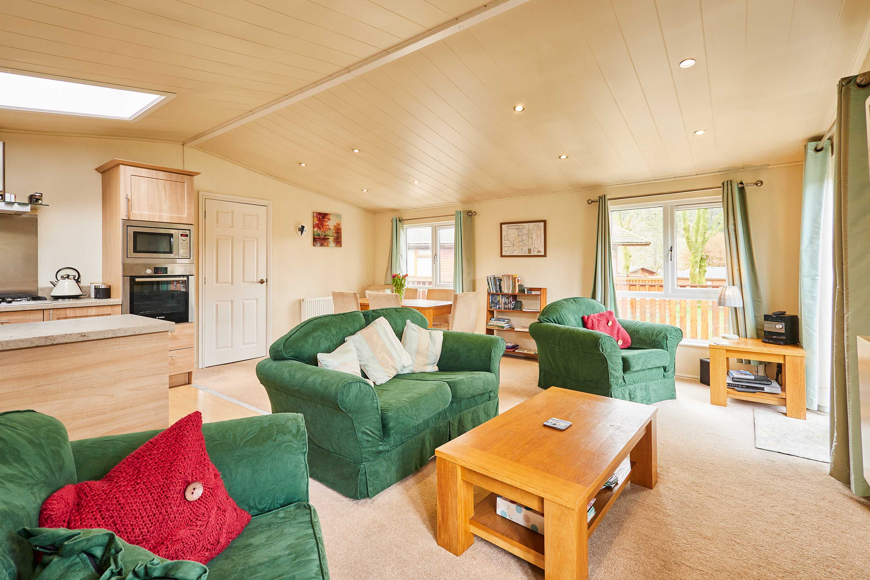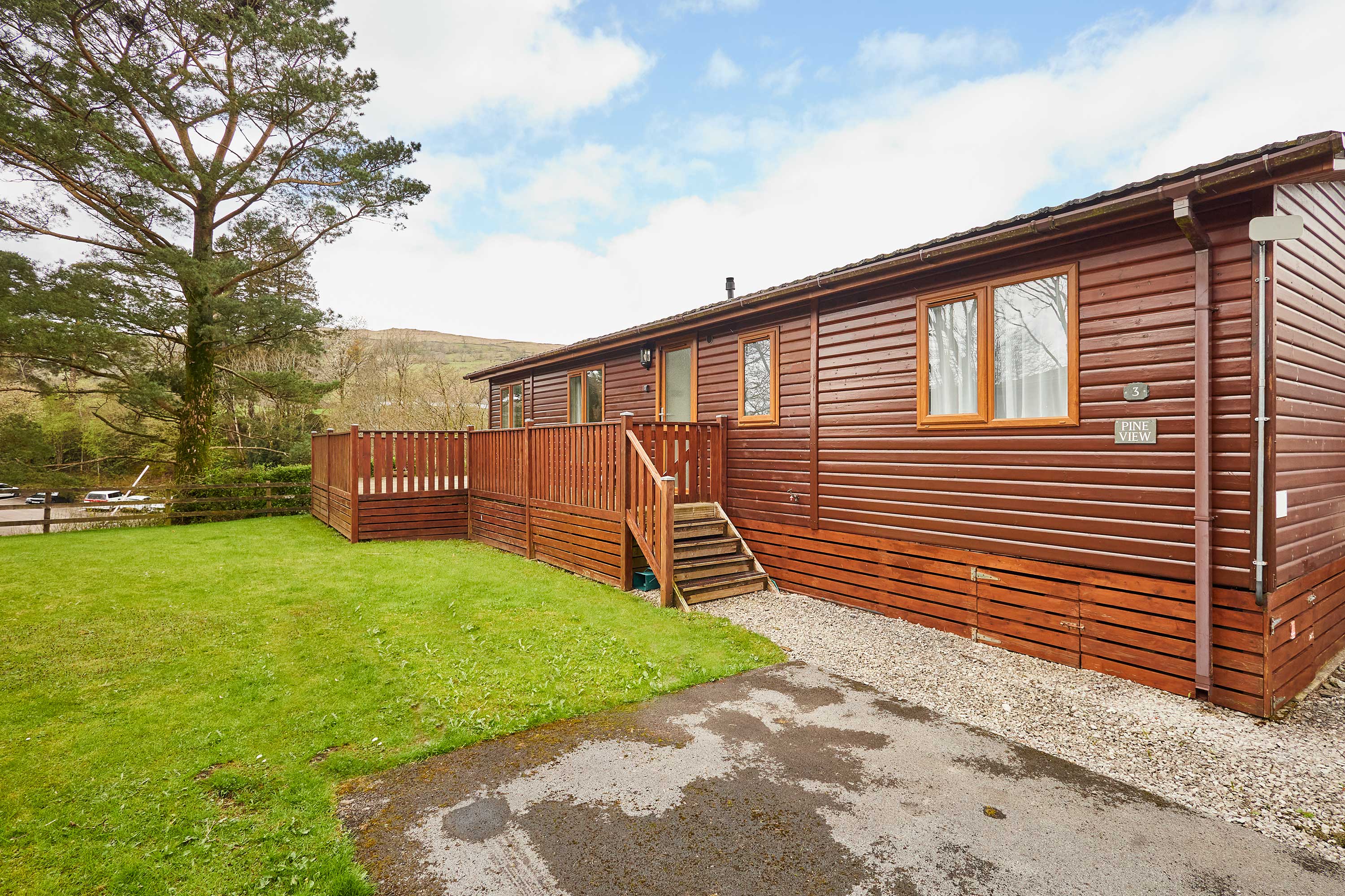The heart of this home is the open plan living and dining space - ideal for families and friends to gather and create memories during their stay. The living area features comfortable sofas and a television, making it easy for guests to relax and unwind during a chilled day or after a day spent exploring the local area. The fully equipped kitchen is perfect for guests to grab a quick snack or prepare a home cooked meal. This is ideal for guests staying for a short break or a longer getaway. These meals can then be enjoyed by guests in the adjacent dining area. Pine View also features three bedrooms, each providing comfortable beds and ample storage space. They are thoughtfully designed to create a relaxing environment for guests to unwind and relax. There are an ensuite and main bathroom at Pine View, offering comfort and convenience for guests wanting to refresh themselves throughout their stay. A patio outside the property features a seating area that is ideal for guests to enjoy the local picturesque countryside views.