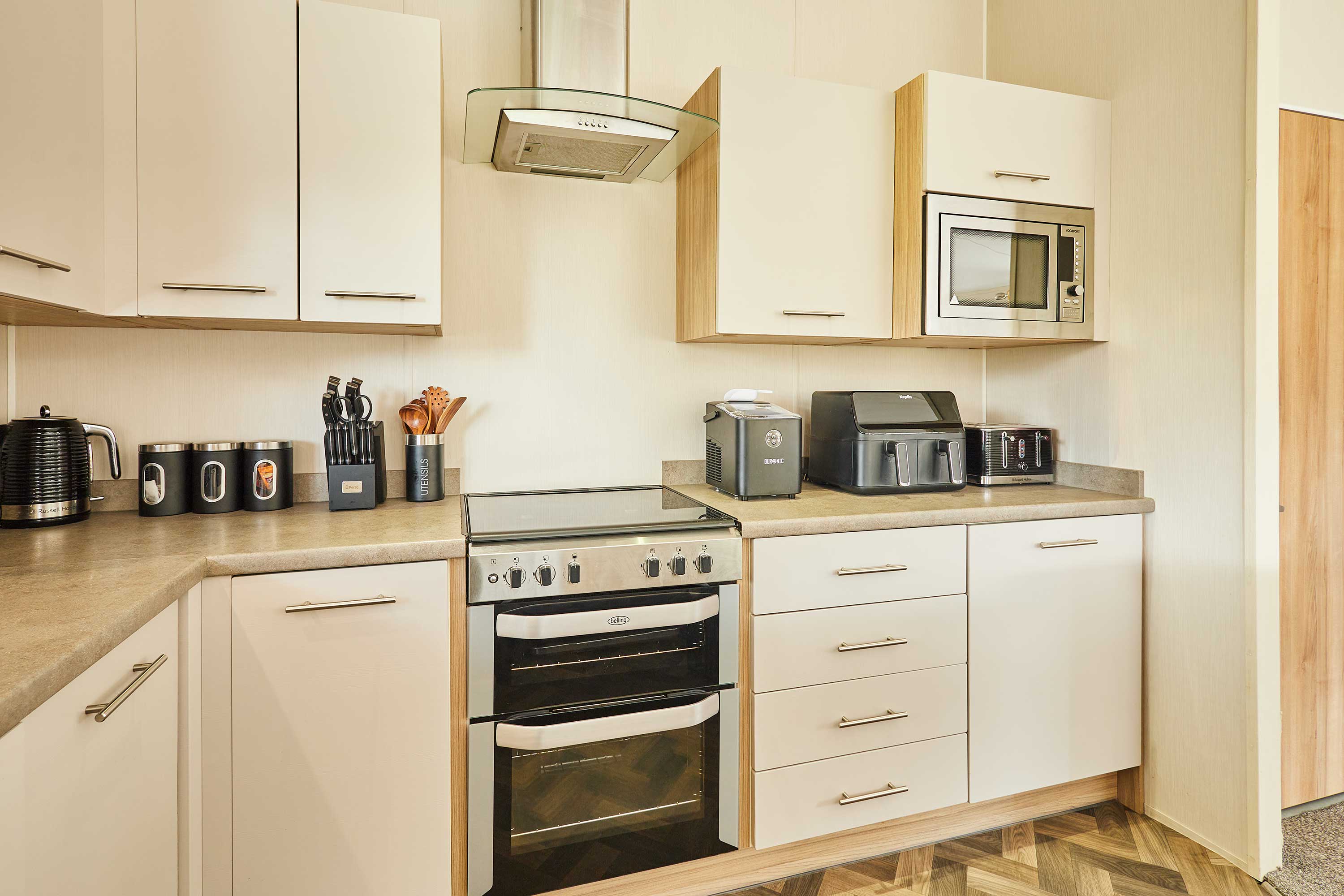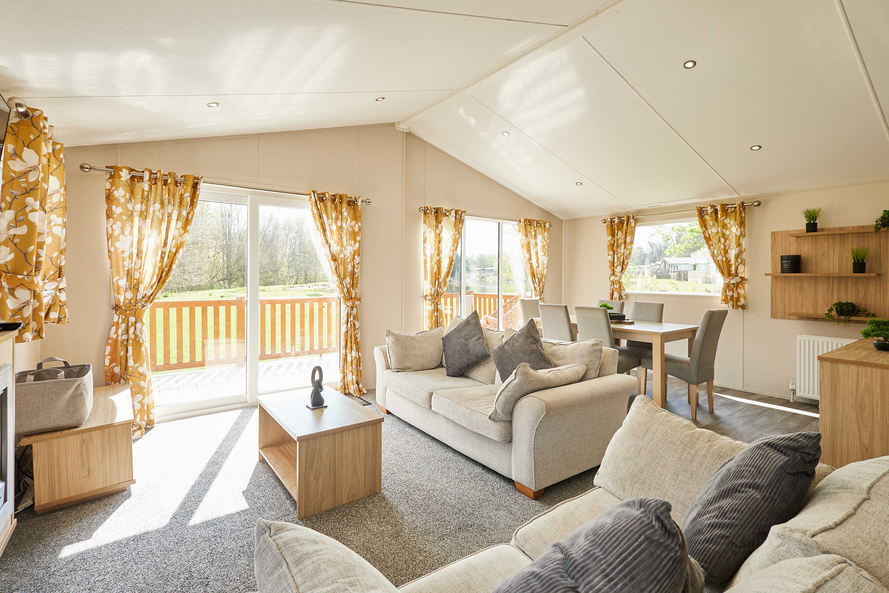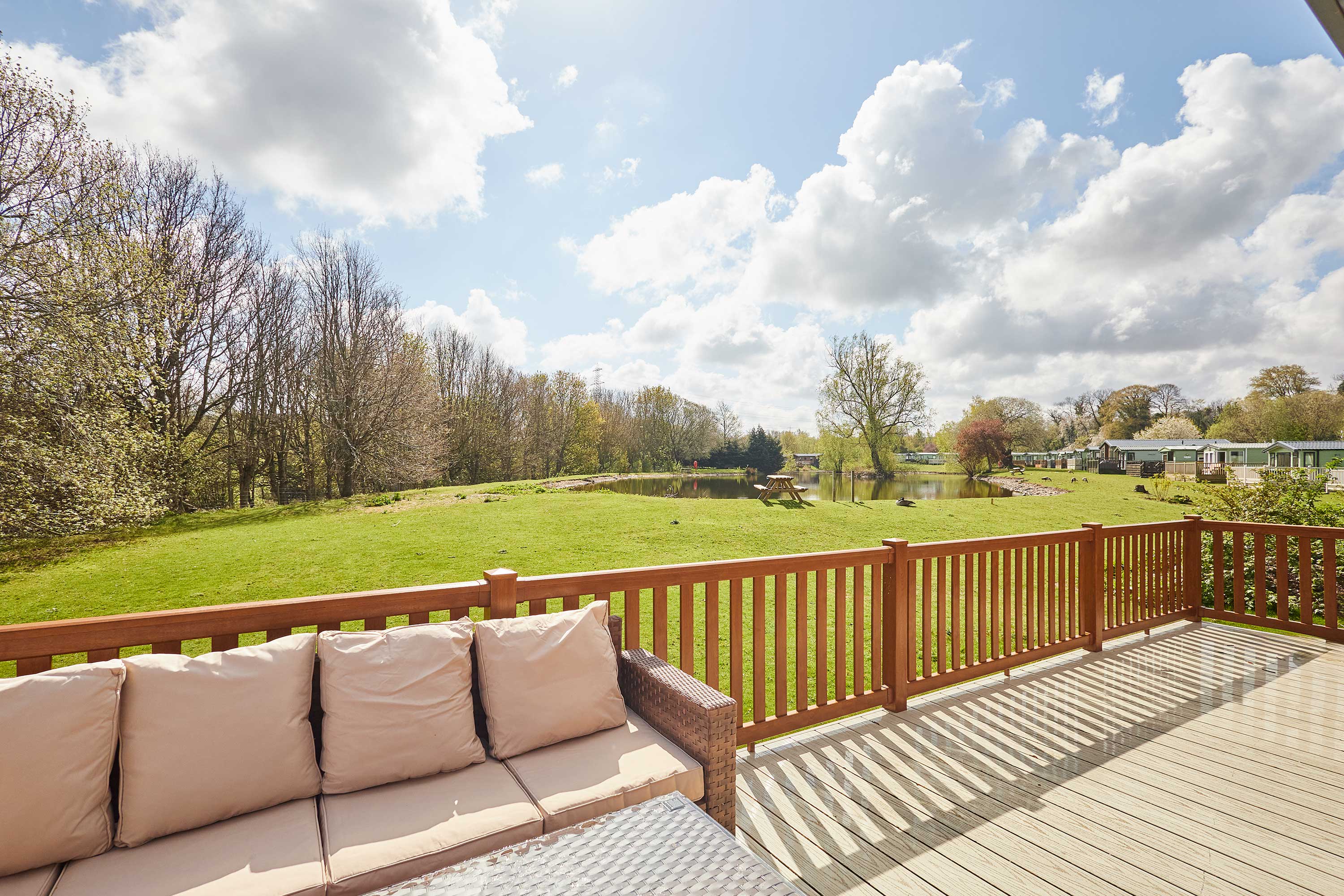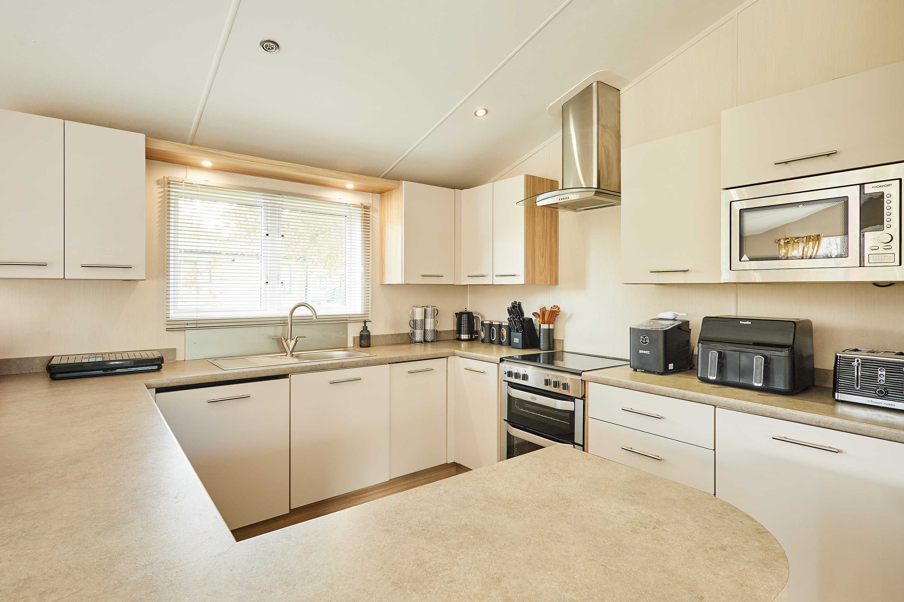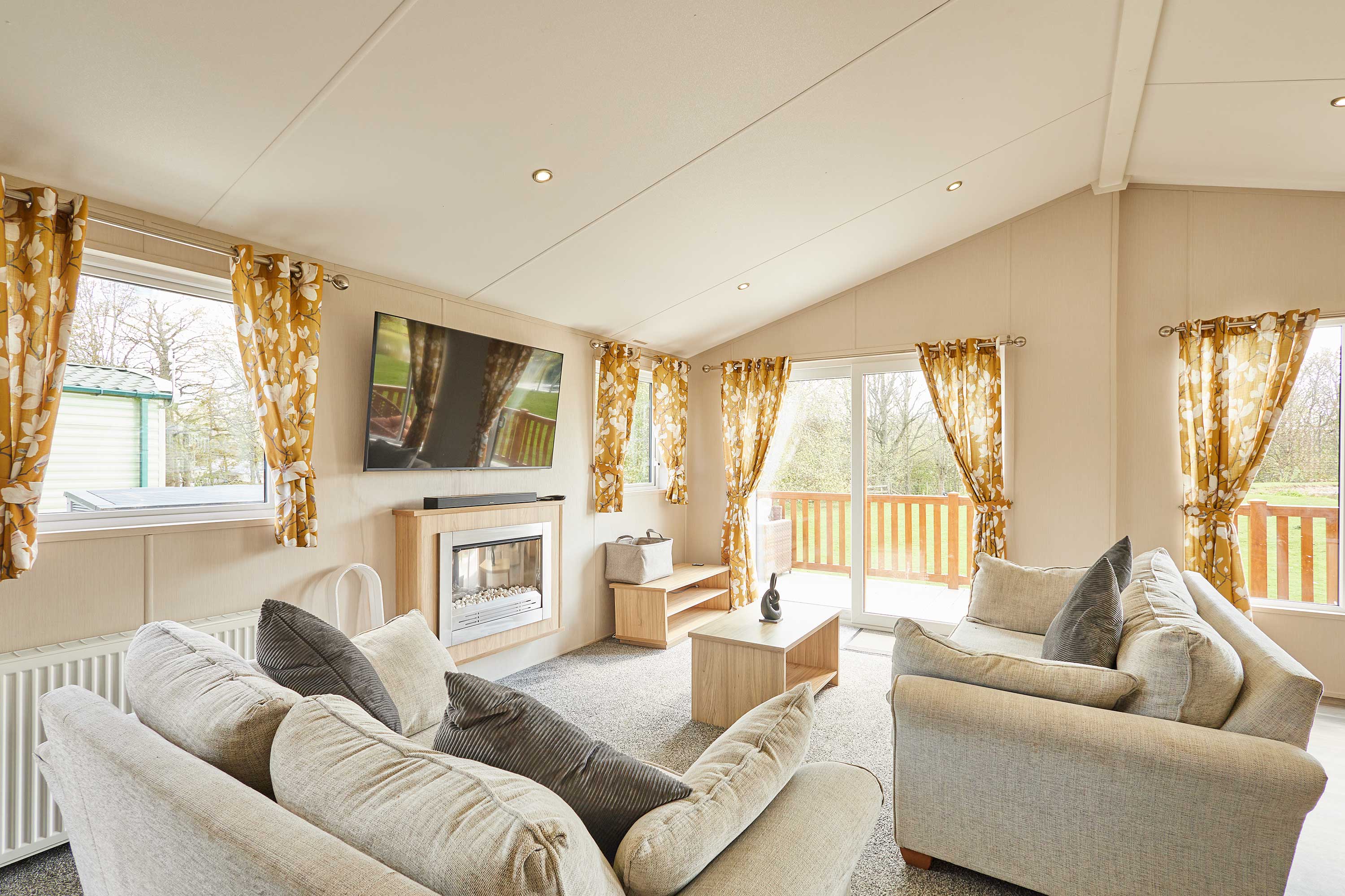 The heart of this home is the cosy open-plan living area that features comfortable seating and is ideal for guests looking to relax and create memories together. The television and fireplace in the room create a warm and inviting space for guests to unwind with ease. The fully equipped kitchen provides everything guests need for quick snacks or home cooked meals during their stay. This creates convenience for guests, whether they're enjoying a short break or a longer getaway. There is a dining area adjacent to the kitchen that allows guests the opportunity to enjoy delicious meals together. The three bedrooms feature comfortable beds, ample storage space and are thoughtfully designed to provide a welcoming space for guests to relax during their stay. Both sleek bathrooms offer convenience for guests as they look to refresh themselves during their stay. The outside seating area means that guests can soak up the sun and enjoy fresh air in the privacy of this home away from home. There is also a play-park on site that is ideal for children needing to burn energy and have fun.