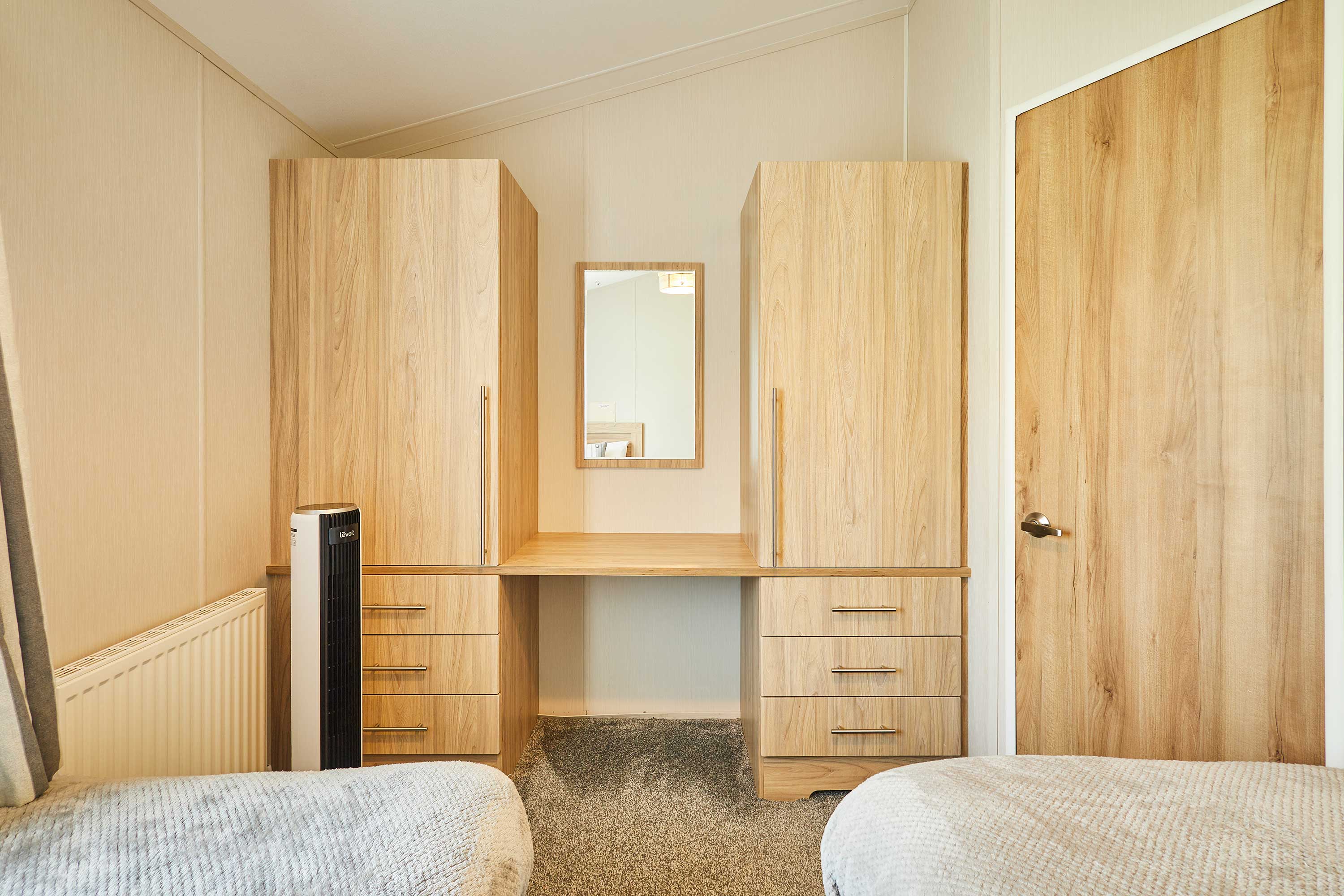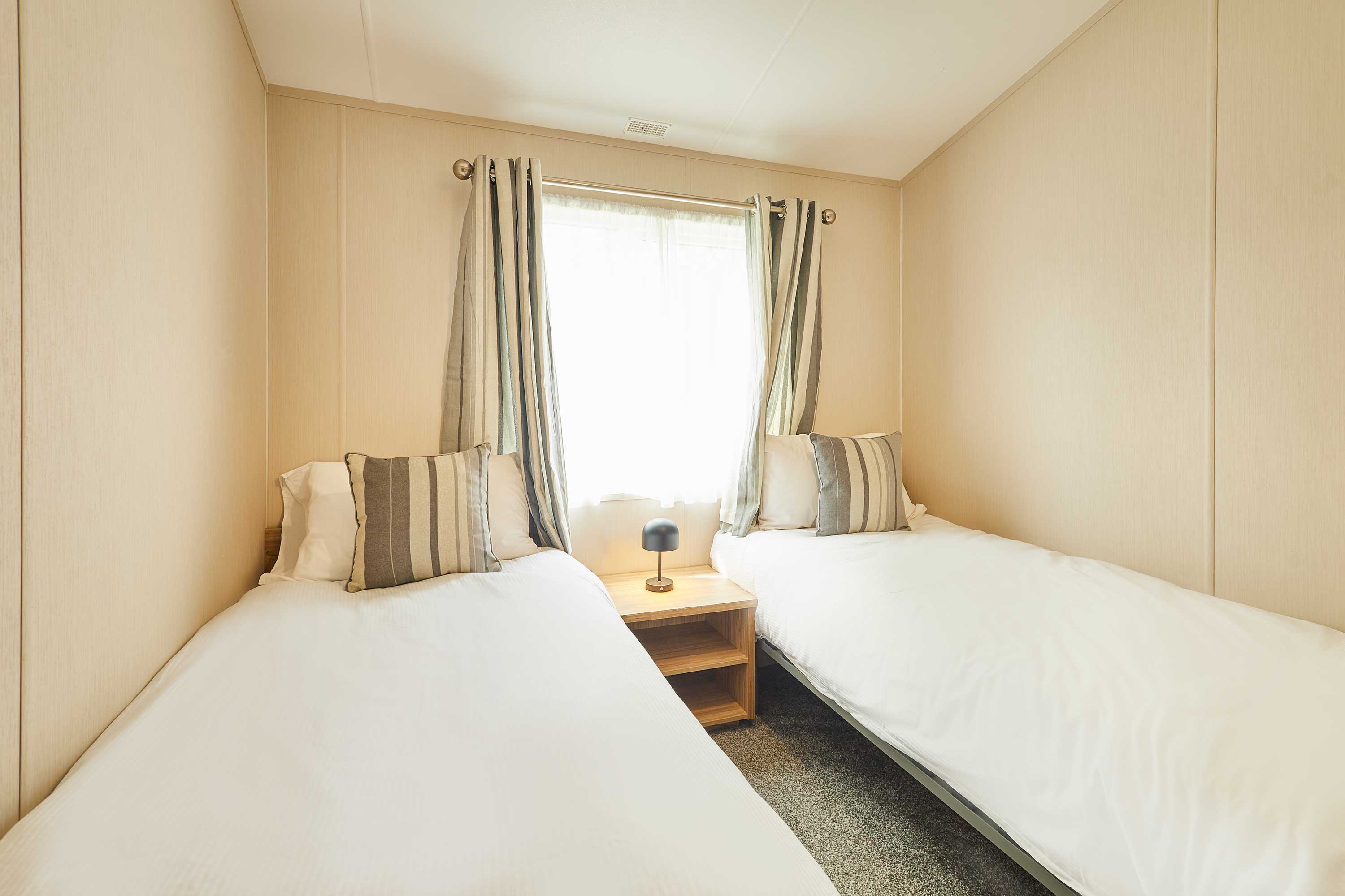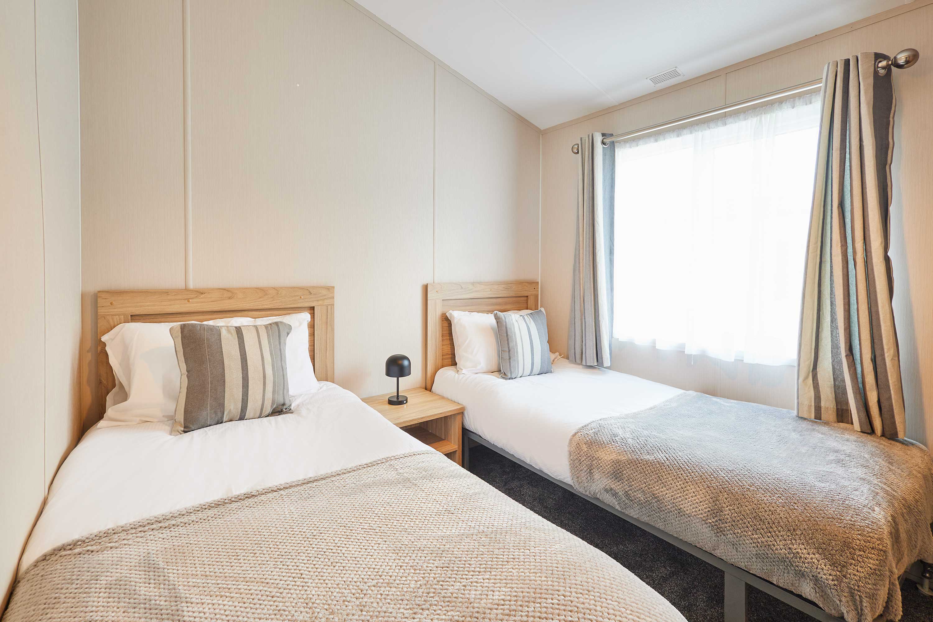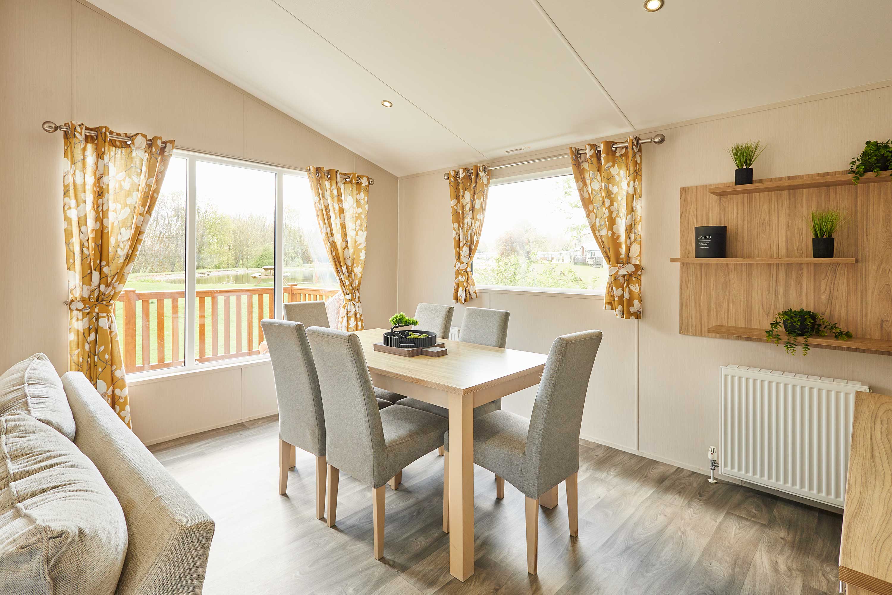 The heart of this home is the cosy open-plan living area that features comfortable seating and is ideal for guests looking to relax and create memories together. The television and fireplace in the room create a warm and inviting space for guests to unwind with ease. The fully equipped kitchen provides everything guests need for quick snacks or home cooked meals during their stay. This creates convenience for guests, whether they're enjoying a short break or a longer getaway. There is a dining area adjacent to the kitchen that allows guests the opportunity to enjoy delicious meals together. The three bedrooms feature comfortable beds, ample storage space and are thoughtfully designed to provide a welcoming space for guests to relax during their stay. Both sleek bathrooms offer convenience for guests as they look to refresh themselves during their stay. The outside seating area means that guests can soak up the sun and enjoy fresh air in the privacy of this home away from home. There is also a play-park on site that is ideal for children needing to burn energy and have fun.