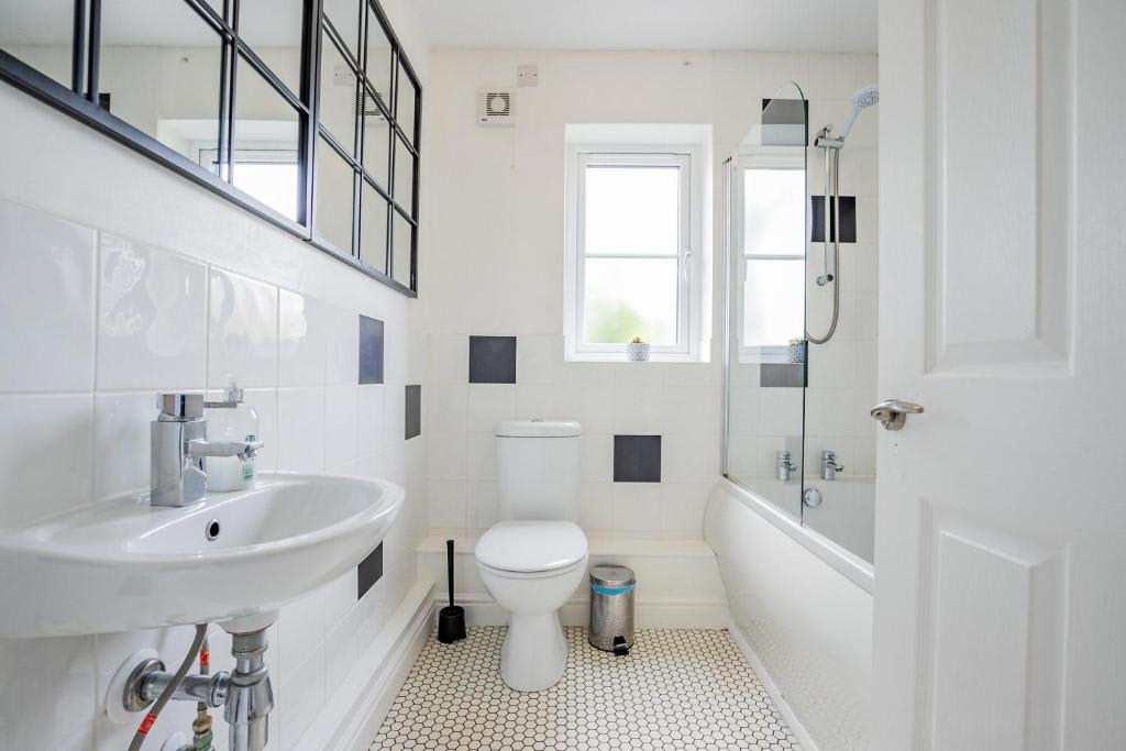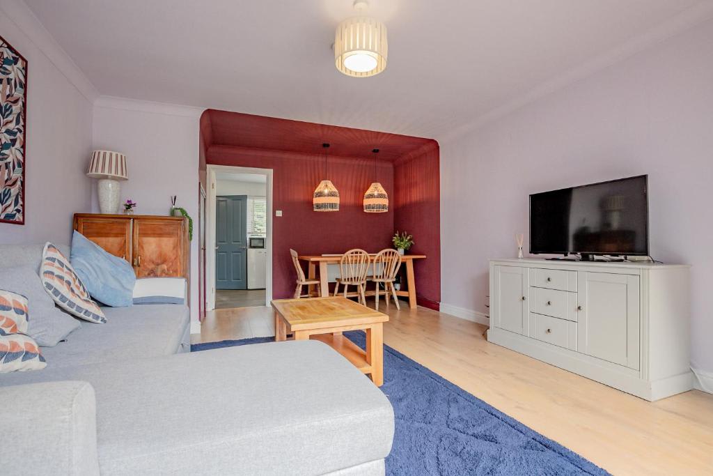 This property offers a private entrance and a designated parking space for one car, located on a quiet cul-de-sac just outside the house. The well-equipped kitchen includes an oven with hob, microwave, kettle, toaster, fridge, freezer, cutlery, cooking utensils, pots and pans, along with tea towels, sponges, washing up liquid, tea, coffee, and sugar. The living area features a sofa bed, available with bedding upon request, making it perfect for extra guests. For a cosy night in, enjoy the smart TV with Netflix access. Both bedrooms are furnished with large, sumptuous beds and ample hanging space. The property also provides all necessary bedding, towels, and even a hairdryer for your convenience. The bathroom comes with fresh towels, hand soap, and toilet roll for a comfortable stay.
