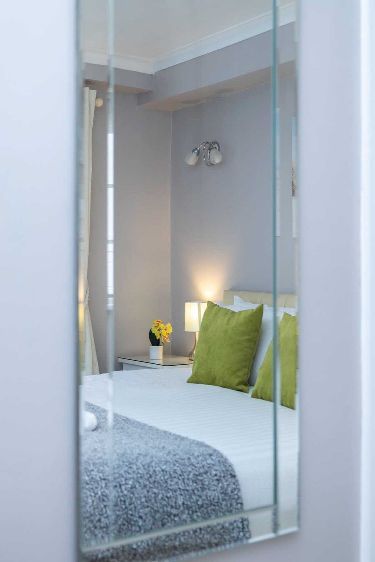 Comfortable bed and clean linen. Heating and hot water efficient. Was mouldy on window frames from condensation. Fridge door jam had mildew. Carpets badly worn out. Grout in bathrooms mouldy.