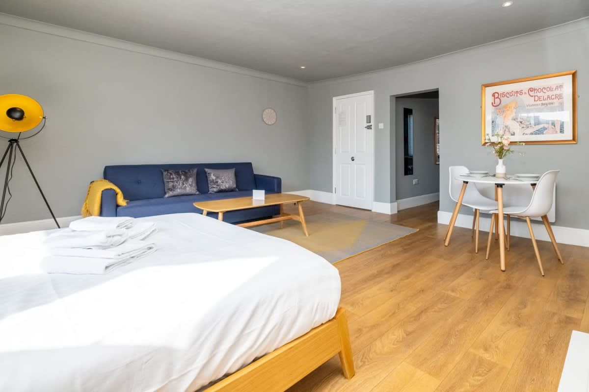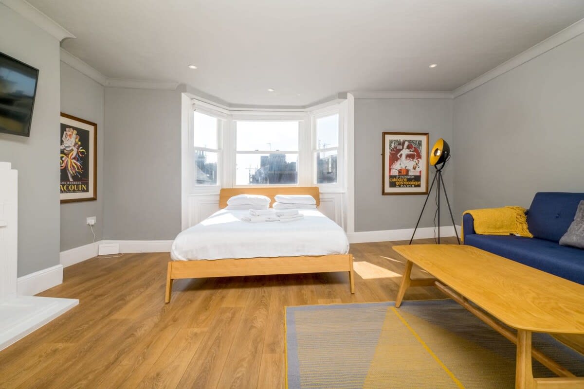 This newly refurbished apartment is minutes from Brighton's iconic landmarks. Bask in the breathtaking sea views from the comfort of your own private space, or take a leisurely stroll to explore the bustling Kemptown area of Brighton, it's close to cafes, pubs and restaurants and just a short walk from Brighton train station. Wind down in style in this spacious unit, featuring a plush king-size bed, a cozy sofa bed (perfect for 1!), and all the amenities you need for a hassle-free stay.