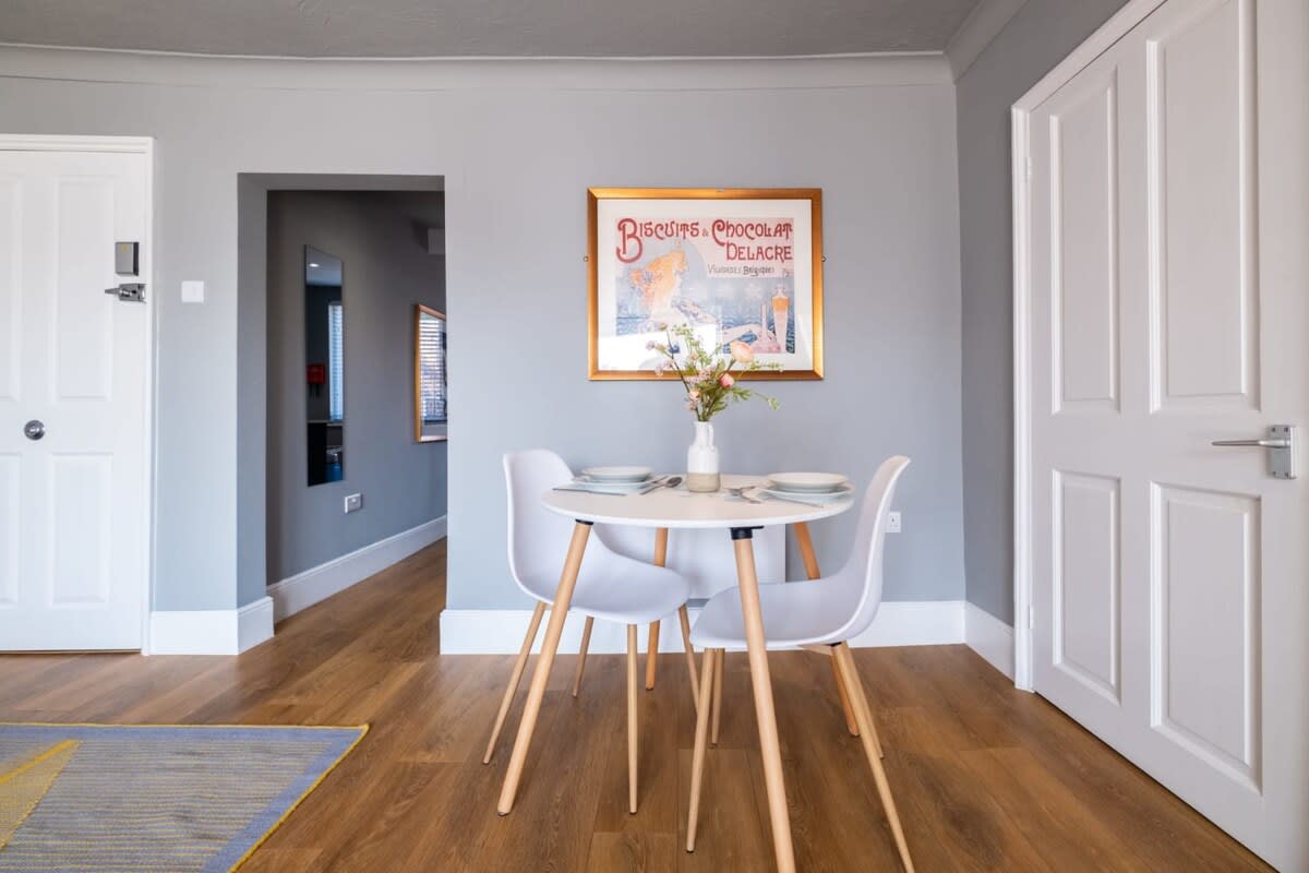 Welcome to St James' Sea View, a modern, spacious second-floor apartment with stunning sea views. Centrally located in Brighton, it’s perfect for exploring the city by foot—just a short stroll from the beach, Pier, shops, cafes, and restaurants. Or, if you prefer a quiet day in, the apartment offers a bright and inviting space to unwind. The apartment is filled with natural light, thanks to its large bay window overlooking the sea, creating a warm and relaxing atmosphere. The bedroom has a comfortable king-size bed made up with fresh linens and a sofa bed suitable for an additional guest. Enjoy a cozy night in with the wall-mounted Smart TV, ideal for movie nights. The bathroom is modern and fully tiled, featuring a great shower and stocked with plenty of guest towels and toiletries. In the fully equipped kitchen, you’ll find everything you need to cook, including a pod coffee machine, microwave, and a selection of cookware, crockery, cutlery, and glassware. Essentials like tea, coffee, and sugar are provided for a stress-free stay, and there’s a dining table for leisurely brunches. With its charming details like a decorative fireplace (not in use) and wooden floors, the apartment has a welcoming character. Additional conveniences include an iron, ironing board, hairdryer, hanging space, and a Smart TV with Netflix access. Self-check-in makes arrival simple, and the flat is professionally cleaned for your comfort and there’s a nearby launderette for any laundry needs. St James' Sea View is the perfect base to explore all that Brighton has to offer while enjoying the comforts of home.