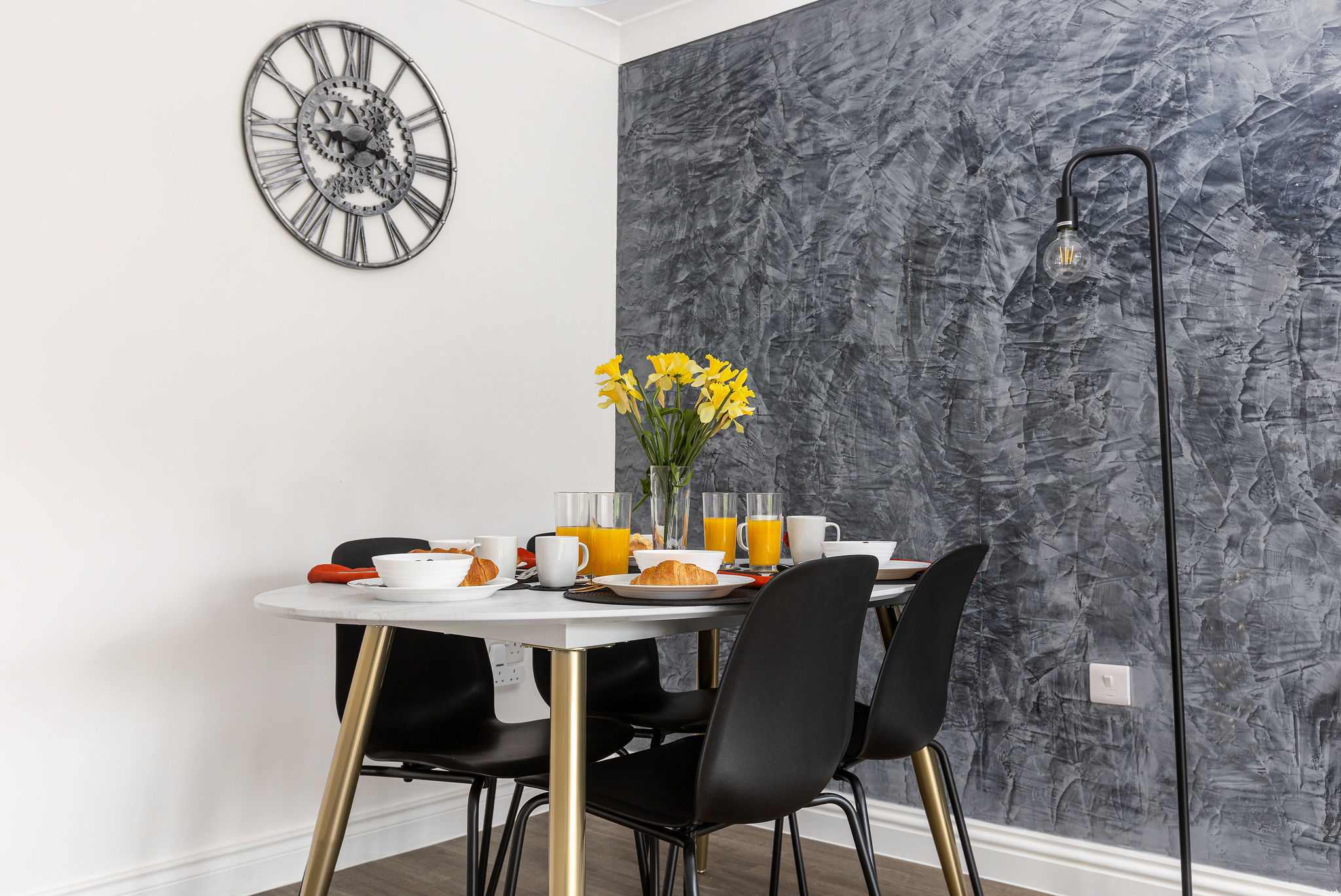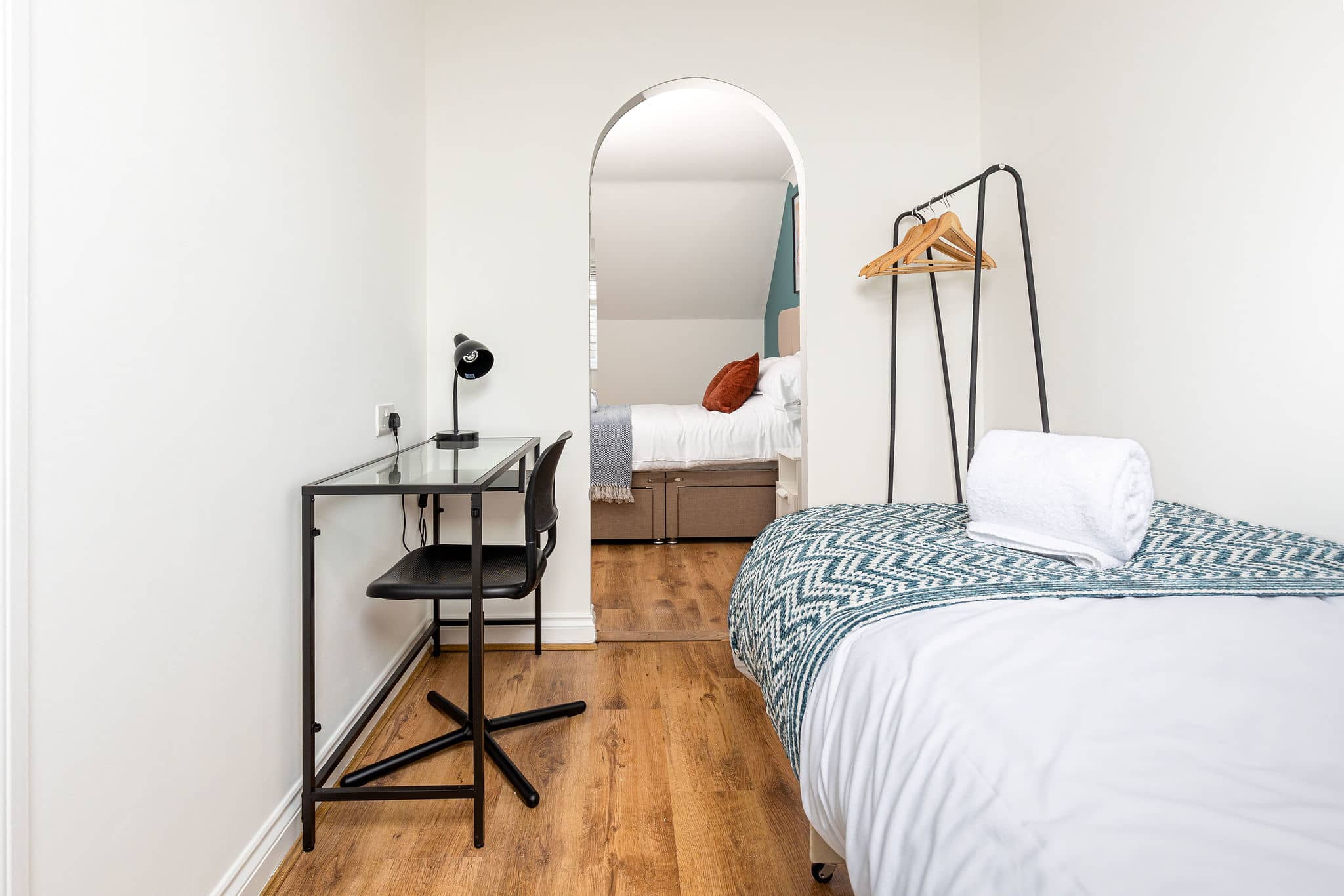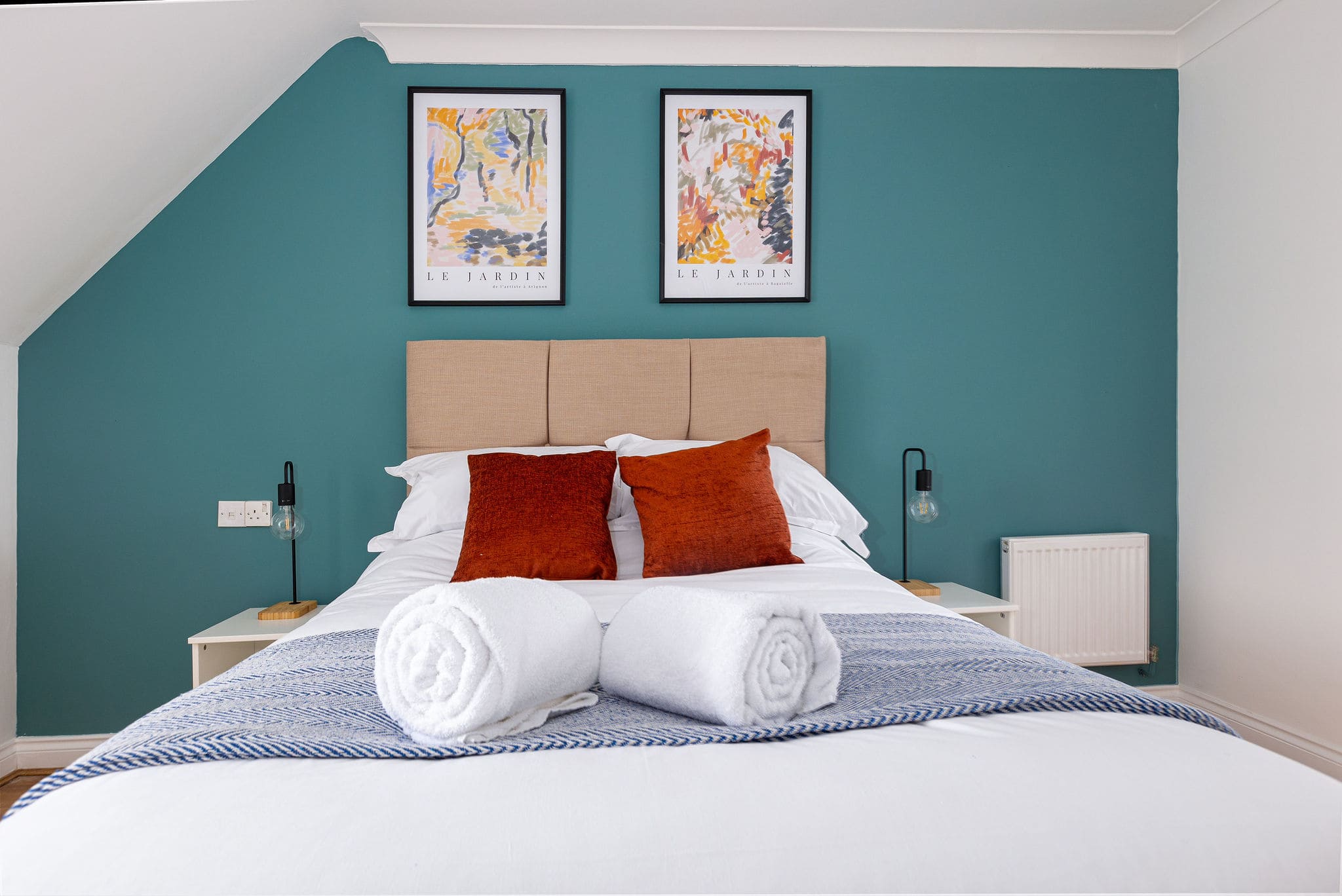 Relax in the comfortable living room, which features a four-seater sofa and a separate chair, perfect for unwinding after a day out. Adjacent to the living area is a dining space equipped with a table and four chairs, ideal for enjoying meals together. Entertainment is at your fingertips with a large Smart TV, complete with Netflix provided at no extra cost. The property includes three well-appointed bedrooms: Bedroom 1 offers both a double bed and a single bed, complemented by a chest of drawers, two clothes rails, and an en-suite bathroom; Bedroom 2 features a double bed, chest of drawers, and a clothes rail; and Bedroom 3 provides two single beds, a chest of drawers, and a clothes rail. Each room is thoughtfully furnished to ensure a comfortable and enjoyable stay. Enjoy a range of convenient amenities during your stay, including free private parking for up to two vehicles and 24/7 self check-in service for a seamless experience. Stay connected with free WiFi and relax with all bed linen and towels provided, along with a hairdryer and toiletries for your comfort. The dining area features a table and chairs, perfect for meals together. The fully equipped kitchen includes a fridge freezer, washing machine, toaster, microwave, kettle, cutlery, cookware, and cooking utensils. Additional amenities include an iron and ironing board, and a Smart TV with Netflix provided for your entertainment. The property also boasts a spacious garden, situated in a quiet neighbourhood close to all main amenities.