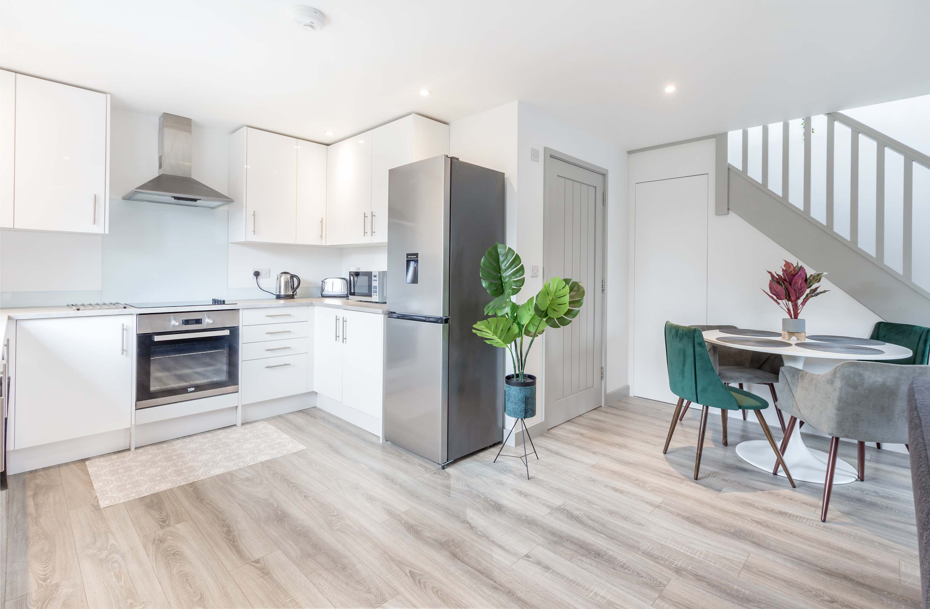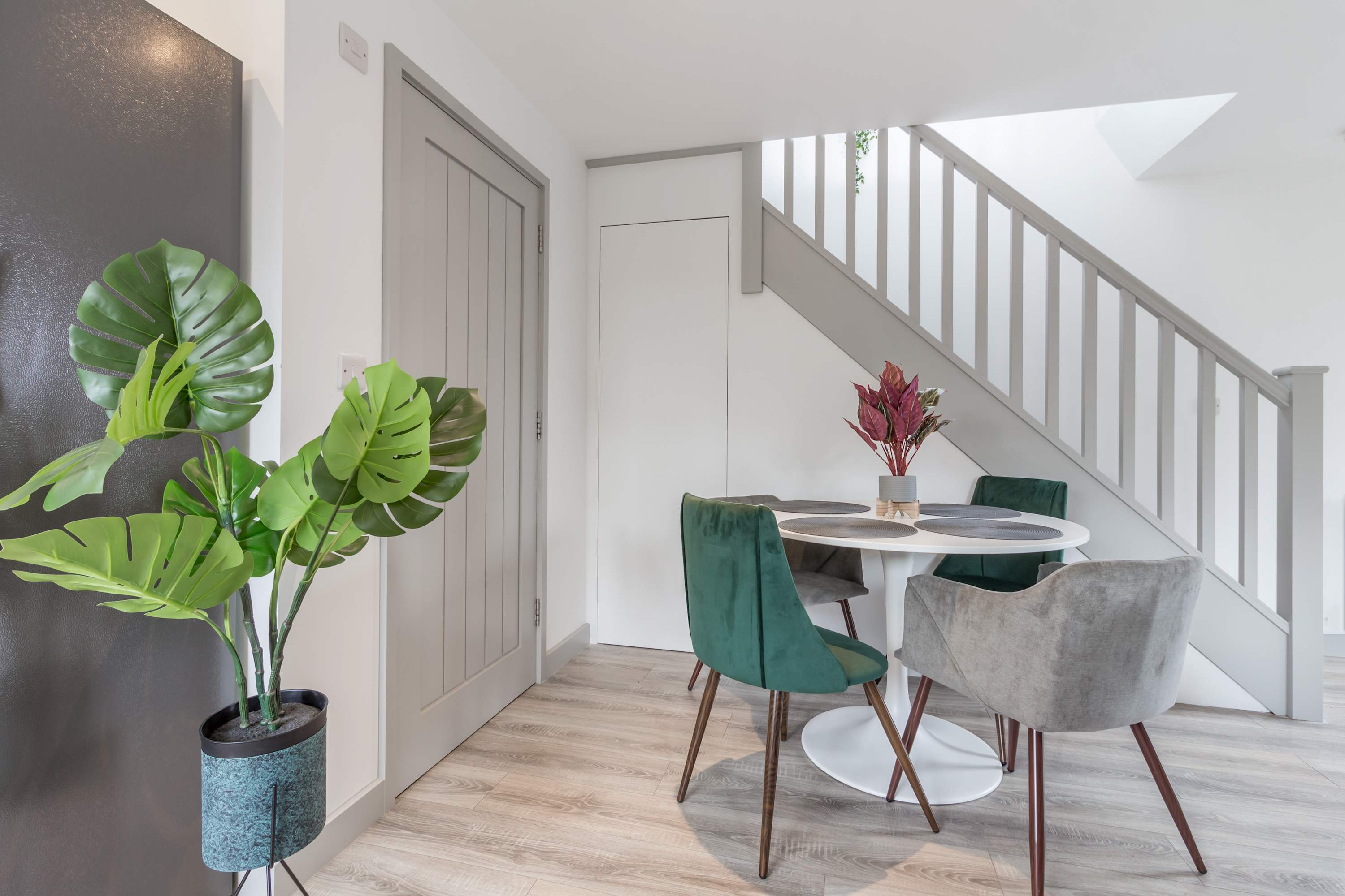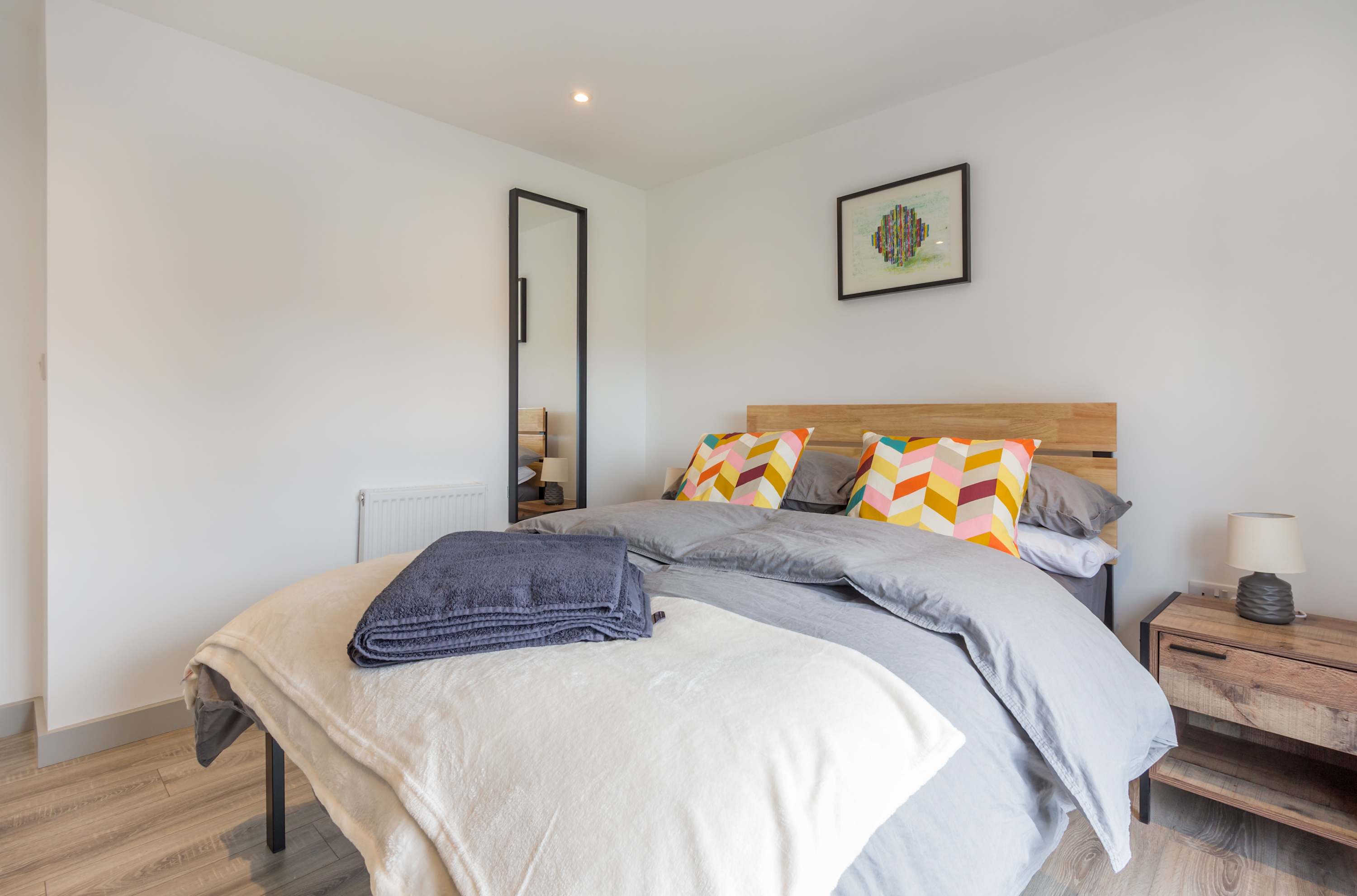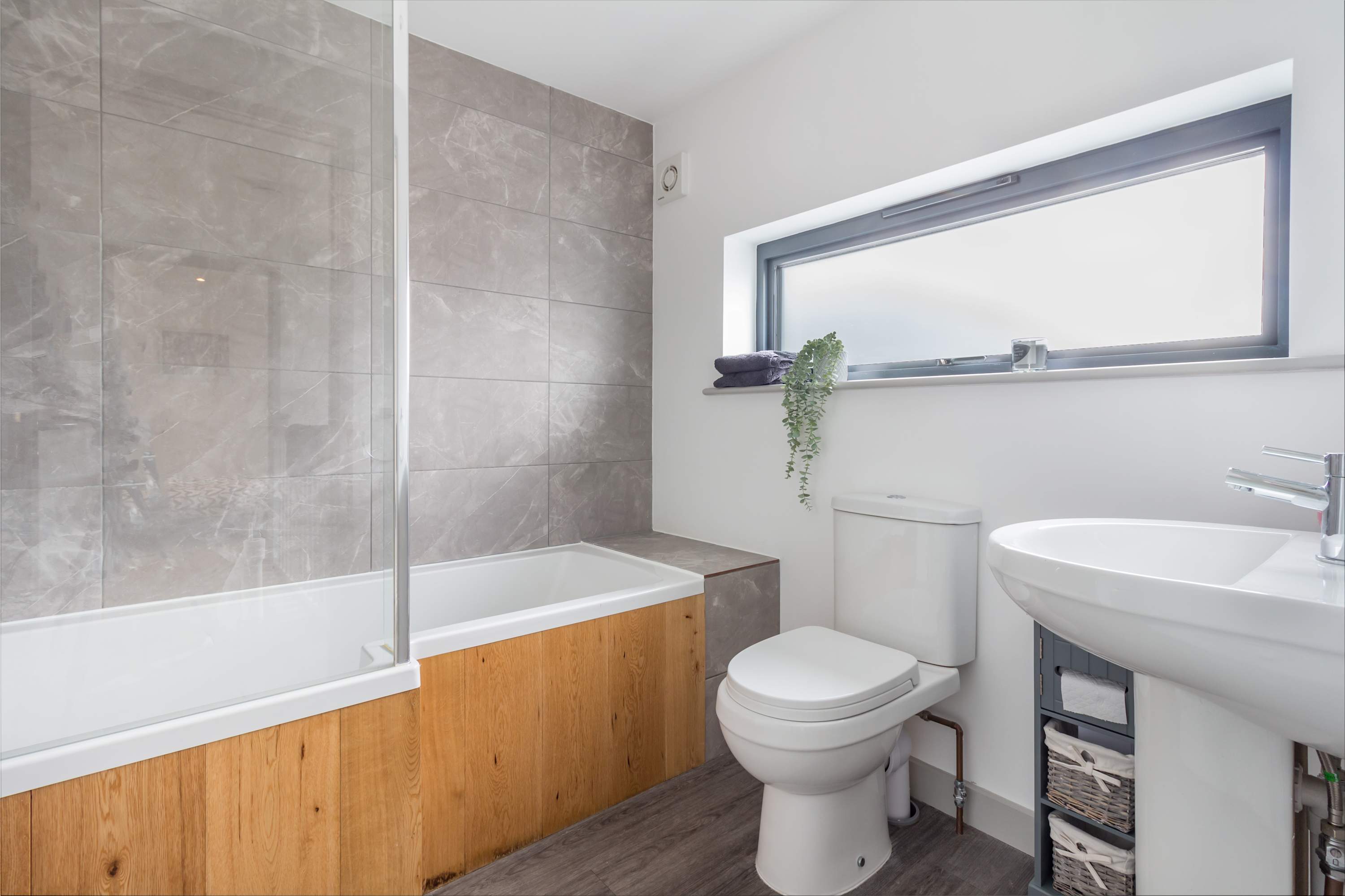 As you enter Bridge Street 87b, you’re welcomed by an open-plan living area that seamlessly blends a cosy sofa with a modern kitchen. The kitchen is fully equipped with everything you need, including an induction hob, electric oven, microwave, washing machine, and an extractor fan with LED lighting. A dining table sits within the open space, perfect for family meals or casual dining. To the right of the living room is the downstairs bathroom, which features a sink and toilet, offering added convenience for guests. Upstairs, you'll find Bedroom 1 on the far left-hand side, which offers a comfortable single bed, a chest of drawers, a bedside table, and plenty of natural light that makes the room bright and airy. Next to Bedroom 1 is Bedroom 2, which features a double bed, bedside tables, drawers, and a full-length mirror. This room is perfect for a restful night’s sleep. Finally, Bedroom 3 is located next to Bedroom 2 and the bathroom. It also includes a double bed, bedside tables, drawers, and a full-length mirror, providing a comfortable and private space for guests.