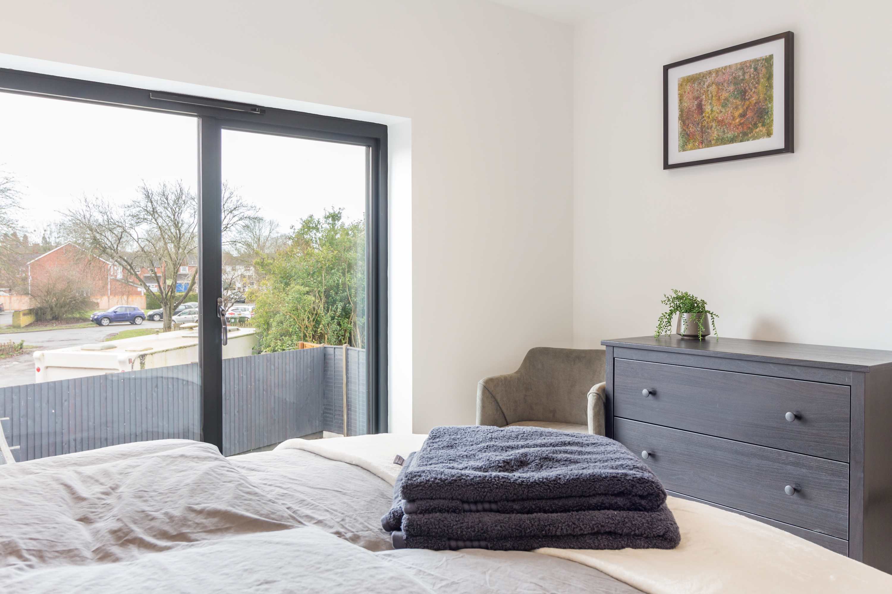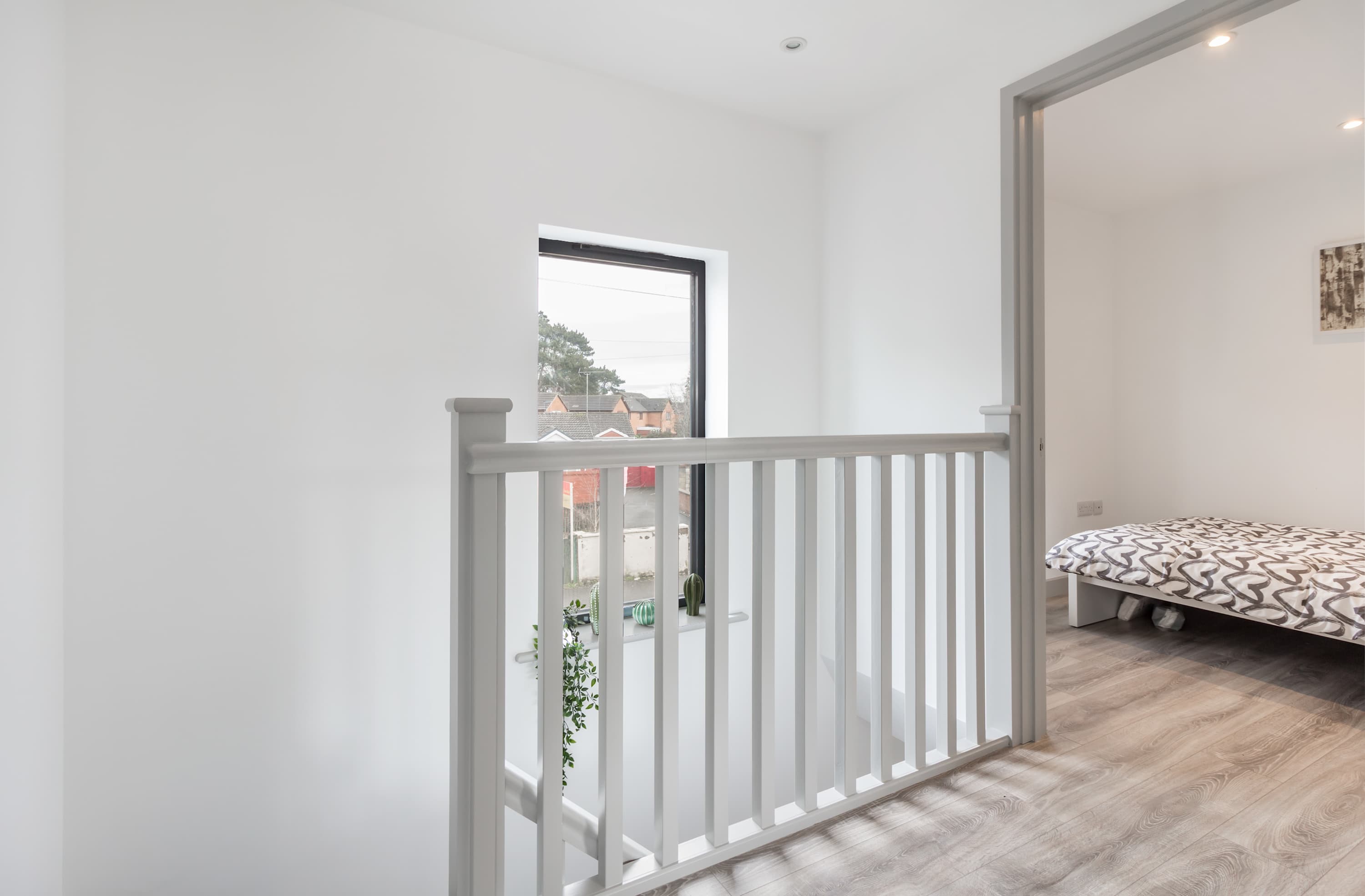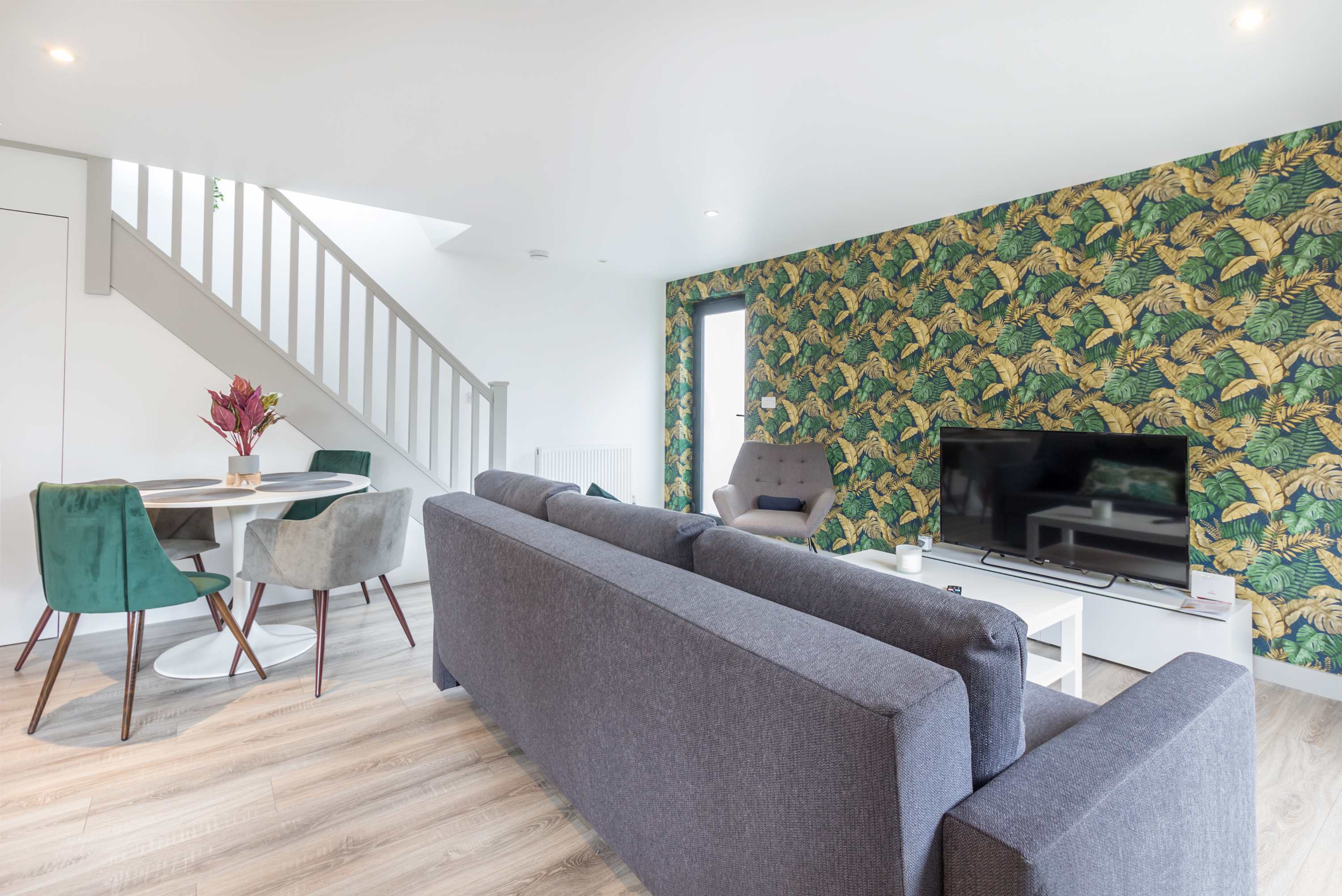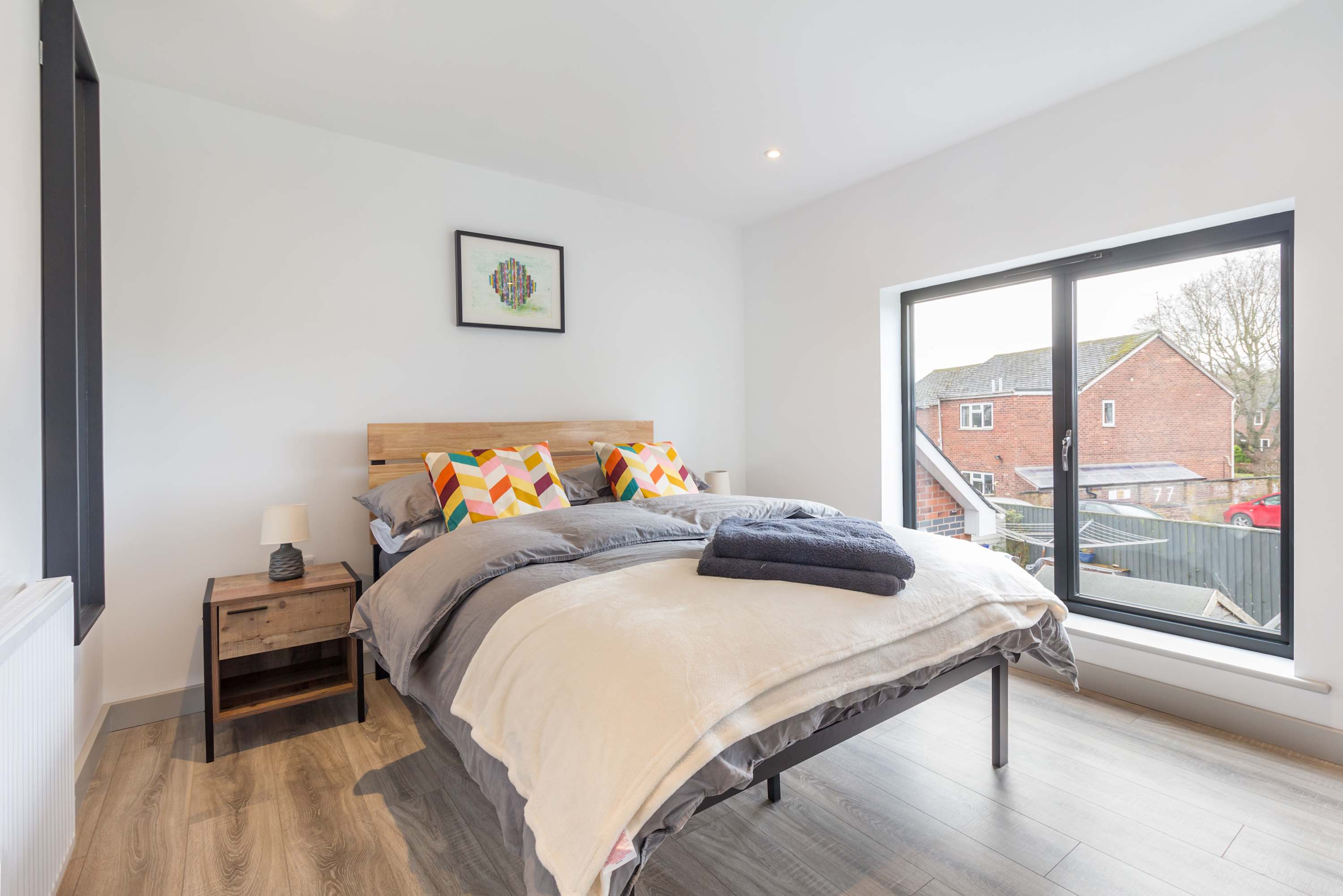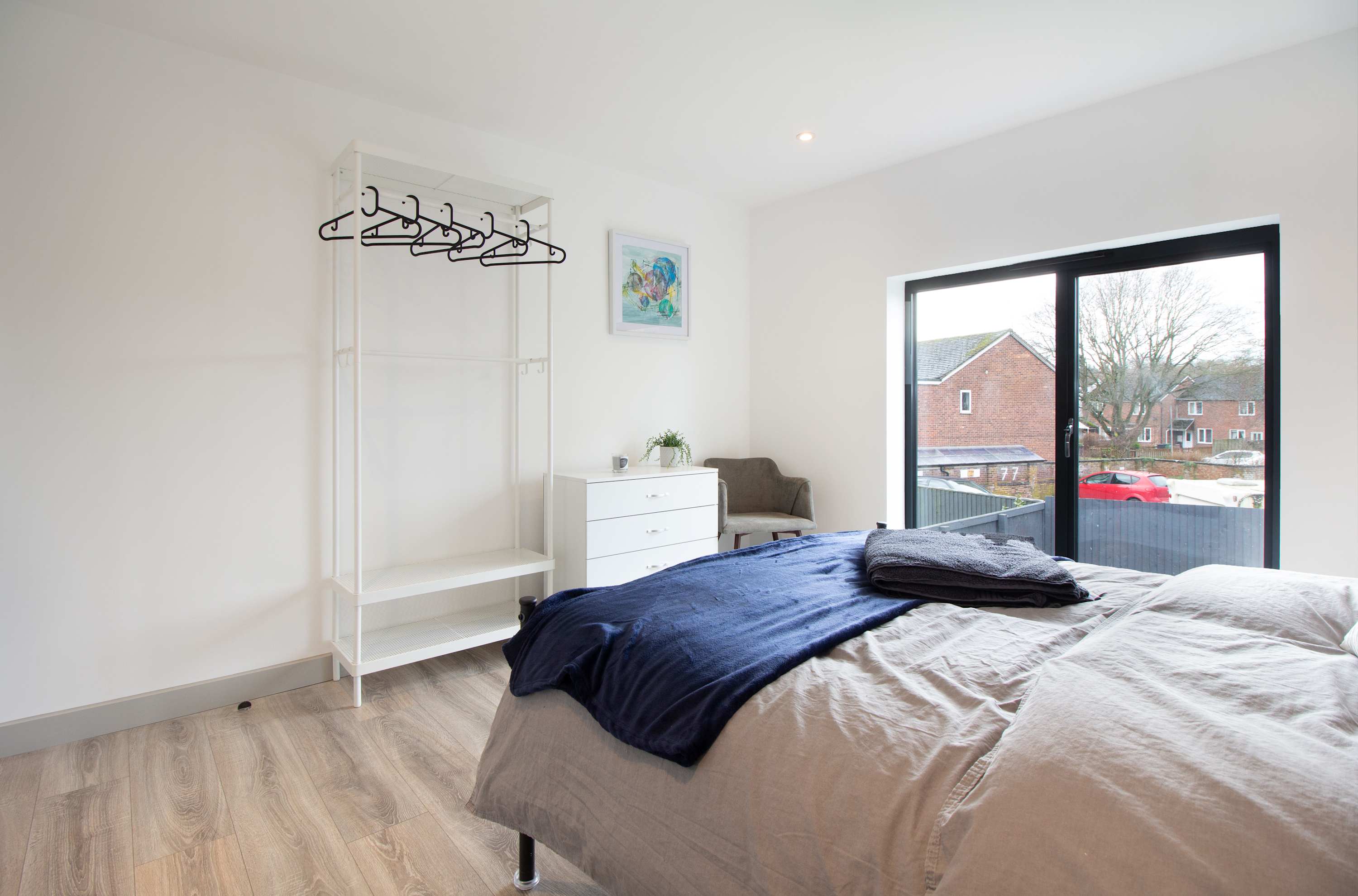 As you enter Bridge Street 87b, you’re welcomed by an open-plan living area that seamlessly blends a cosy sofa with a modern kitchen. The kitchen is fully equipped with everything you need, including an induction hob, electric oven, microwave, washing machine, and an extractor fan with LED lighting. A dining table sits within the open space, perfect for family meals or casual dining. To the right of the living room is the downstairs bathroom, which features a sink and toilet, offering added convenience for guests. Upstairs, you'll find Bedroom 1 on the far left-hand side, which offers a comfortable single bed, a chest of drawers, a bedside table, and plenty of natural light that makes the room bright and airy. Next to Bedroom 1 is Bedroom 2, which features a double bed, bedside tables, drawers, and a full-length mirror. This room is perfect for a restful night’s sleep. Finally, Bedroom 3 is located next to Bedroom 2 and the bathroom. It also includes a double bed, bedside tables, drawers, and a full-length mirror, providing a comfortable and private space for guests.
