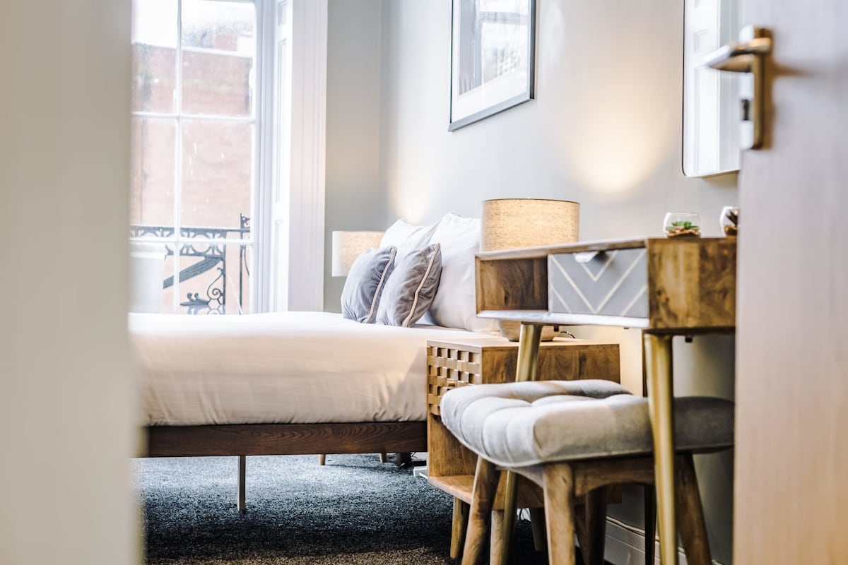 This stunning apartment is located in Liverpool’s renowned Georgian Quarter, a quaint neighbourhood celebrated for its remarkable architecture, scenic buildings, and historic cobbled streets. Located near St Luke's Church, known locally as 'The Bombed Out Church, this site of interest plays host to frequent events, including open-air cinemas, beer festivals, and more. Not to mention, the historic Liverpool Cathedral and The Philharmonic Hall are only steps away from here! The Georgian Quarter area is well known for its top theatres and performance spaces, perfect for those with a creative flair. Step out the front door and you’ll find yourself amidst some of Liverpool’s most stunning architecture, with the neighbourhood showcasing its timeless beauty. Just a short stroll away are Hope Street and the city centre, where you can explore a variety of delightful restaurants, cosy cafes, theatres, and concert venues.